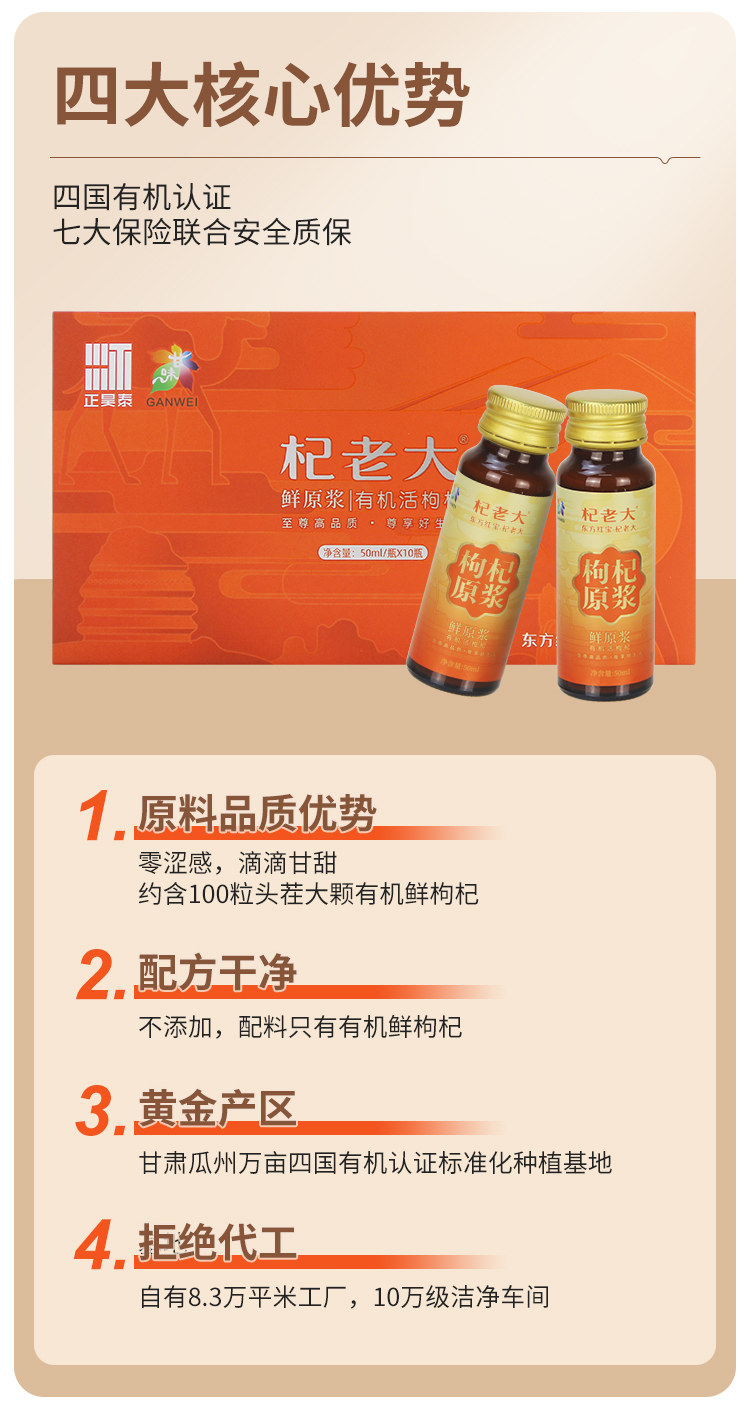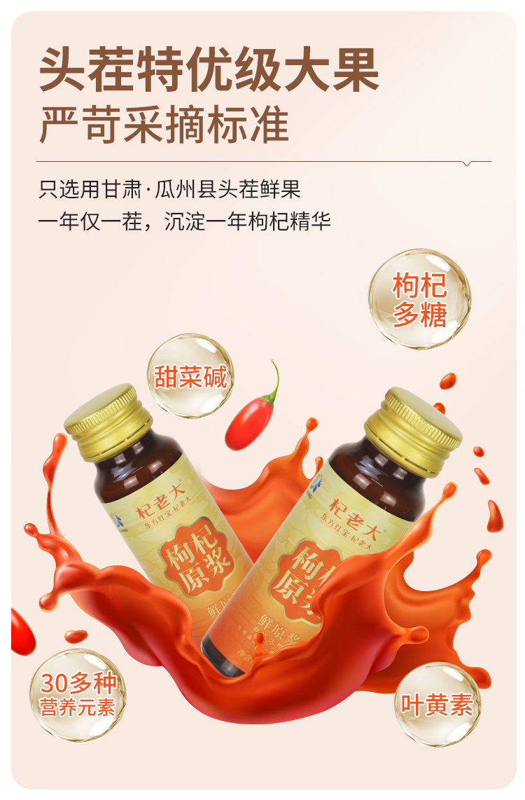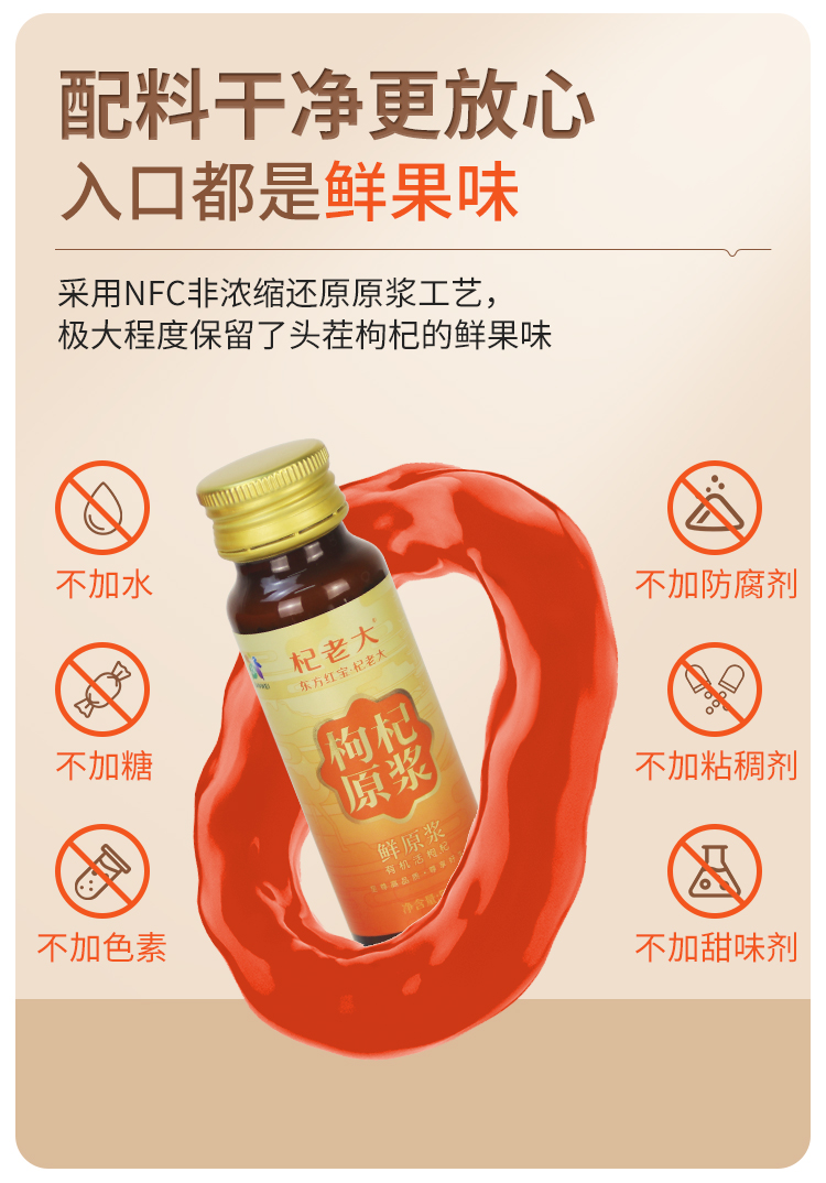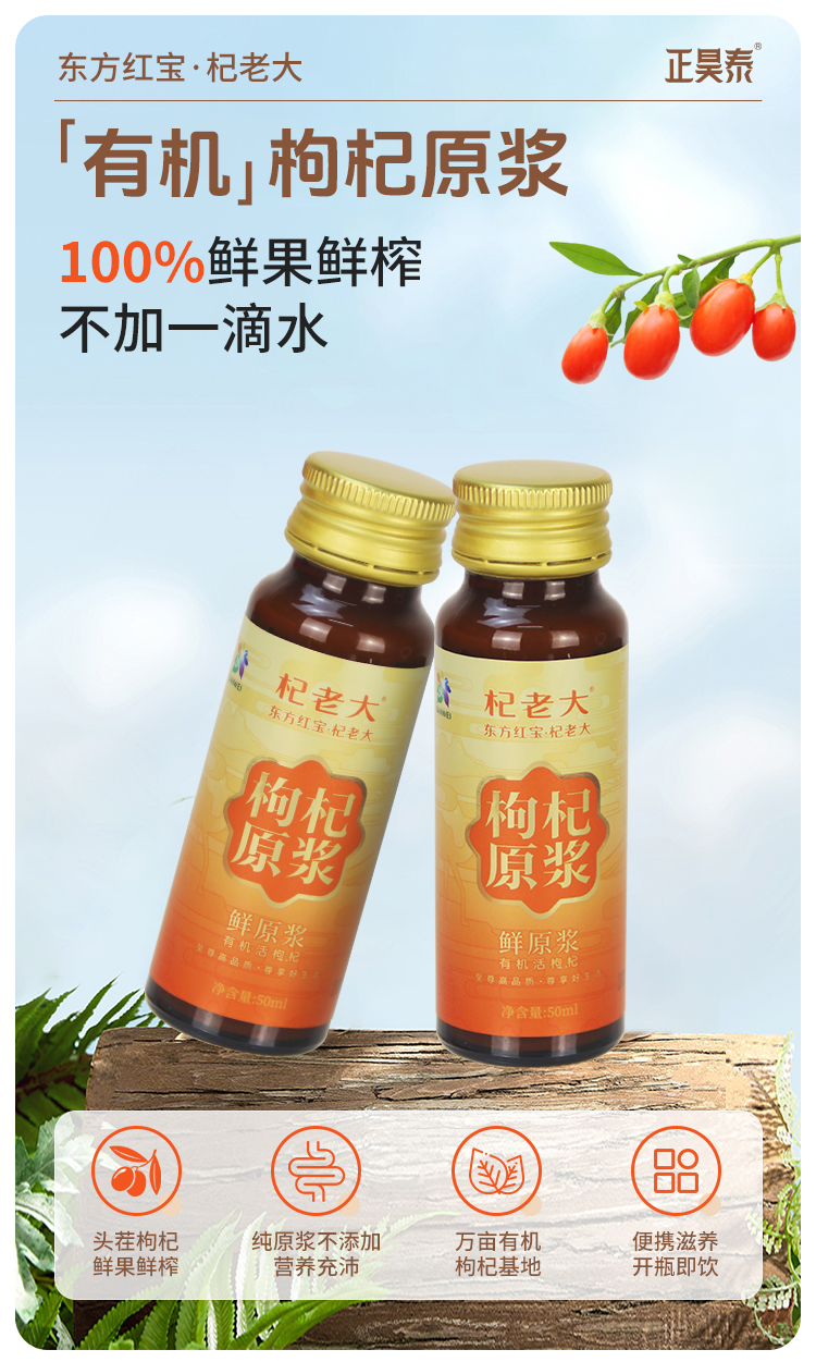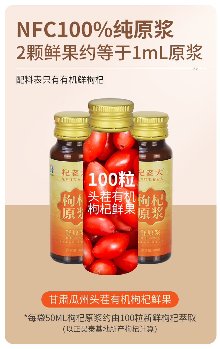【严选】【金新农】【连续7年获四国有机认证 甘肃瓜州县头茬特优级大果有机枸杞原浆】 杞老大有机枸杞原浆50ml*10支 (厂家直发)