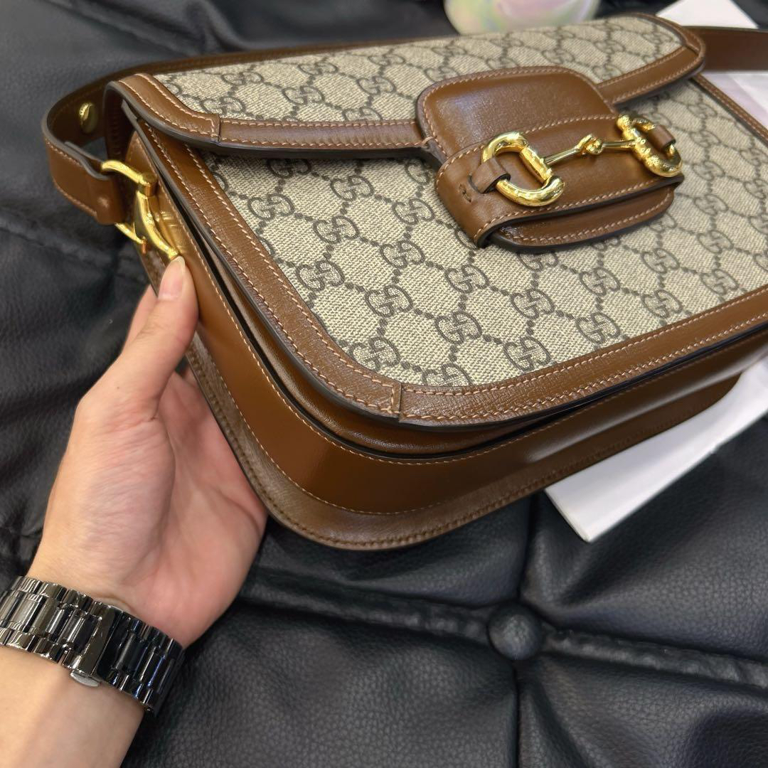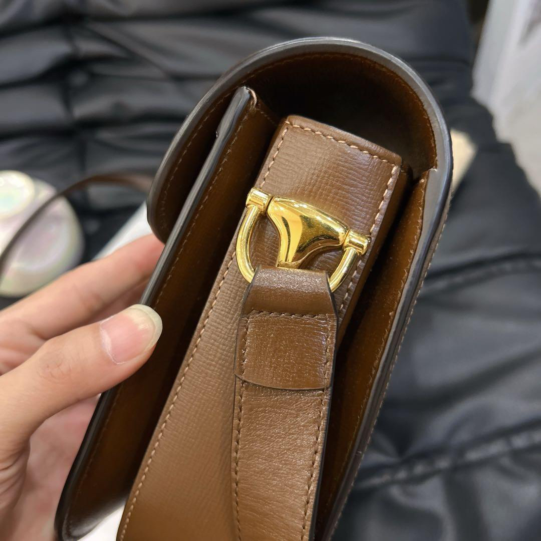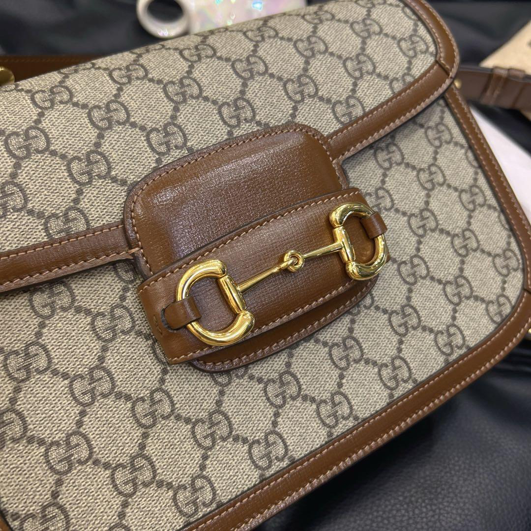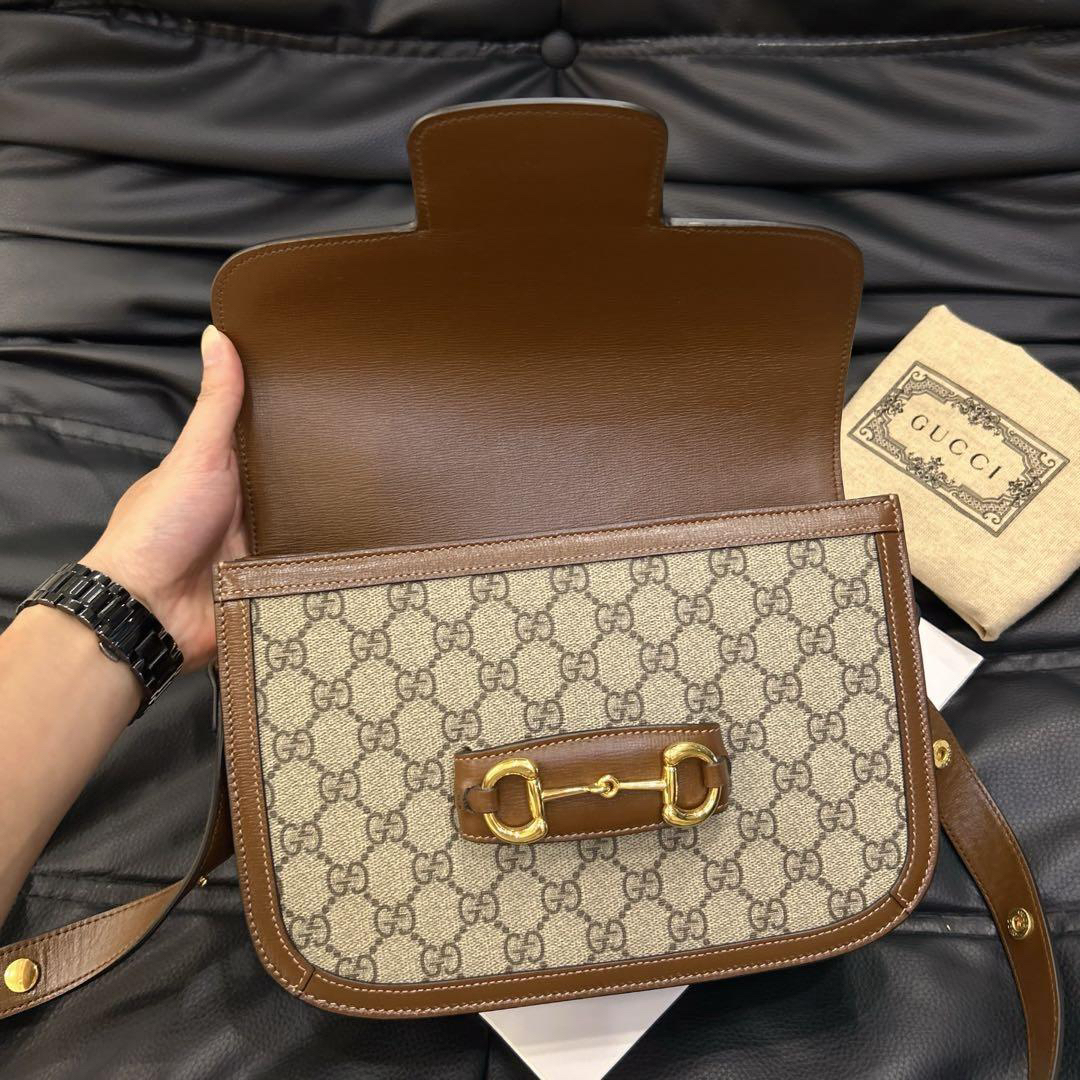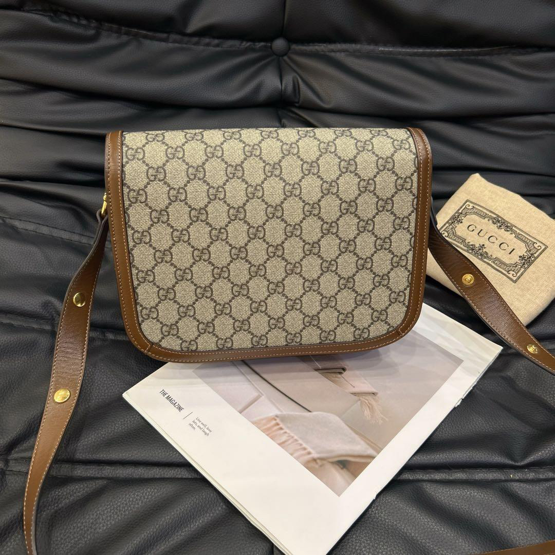 正品二手 GUCCI 1955 乌木色 老花拼皮 中号 马鞍包🎊99新 25x19 配件:防尘袋。肖战同款 男女都可背