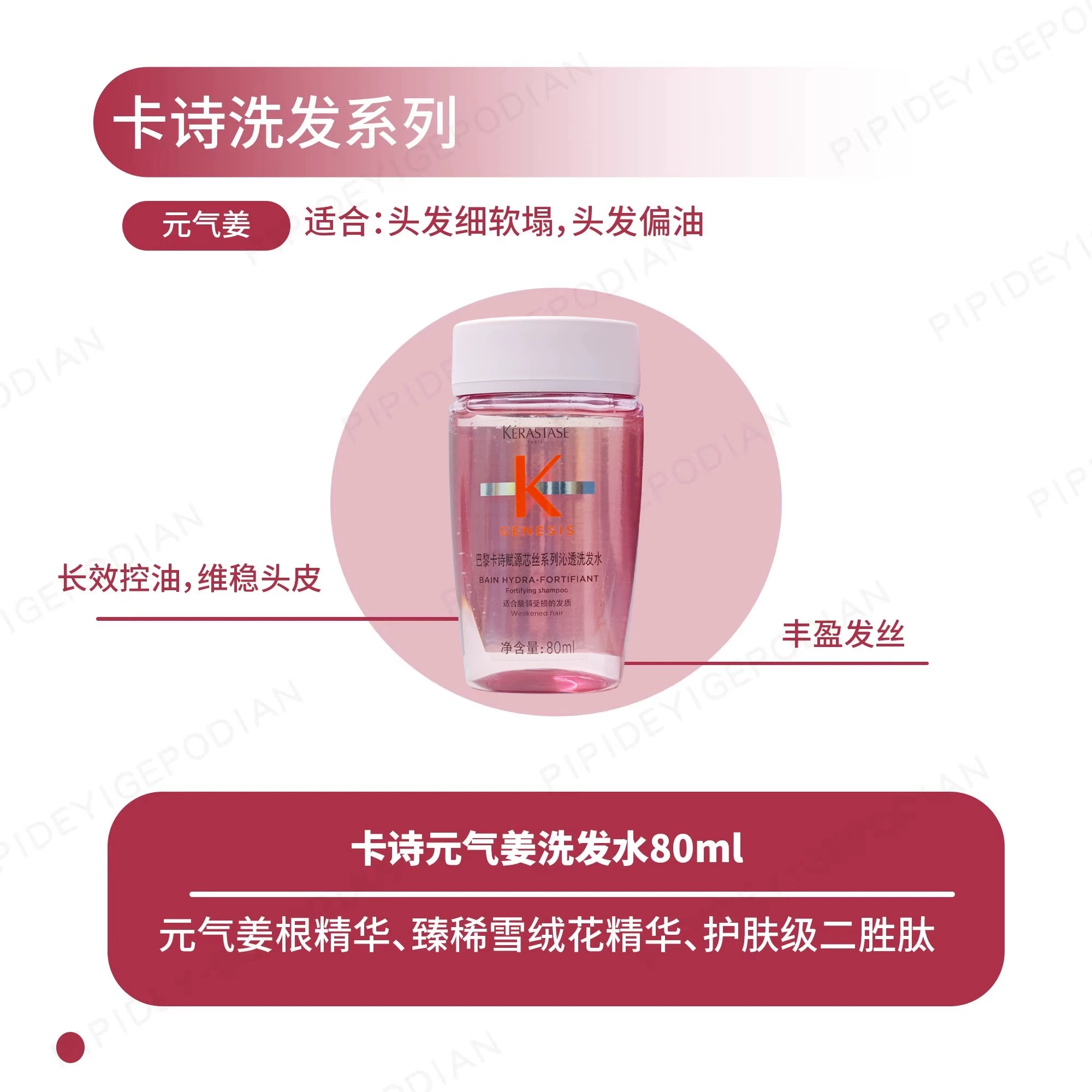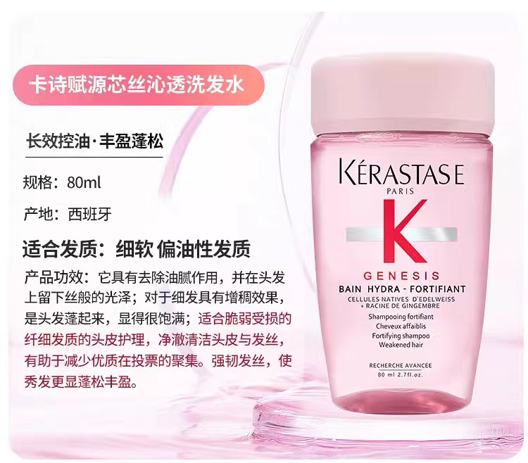 卡诗洗发水80ml /精油15ml滋养黑钻元气姜自在瓶白金头皮蓬松丰盈控油中样