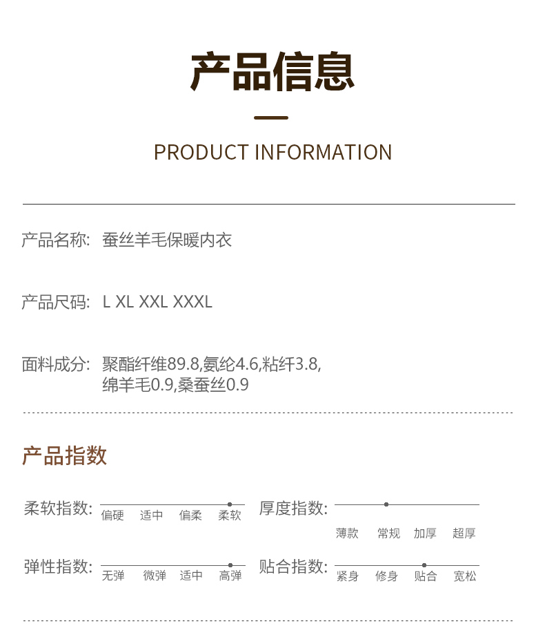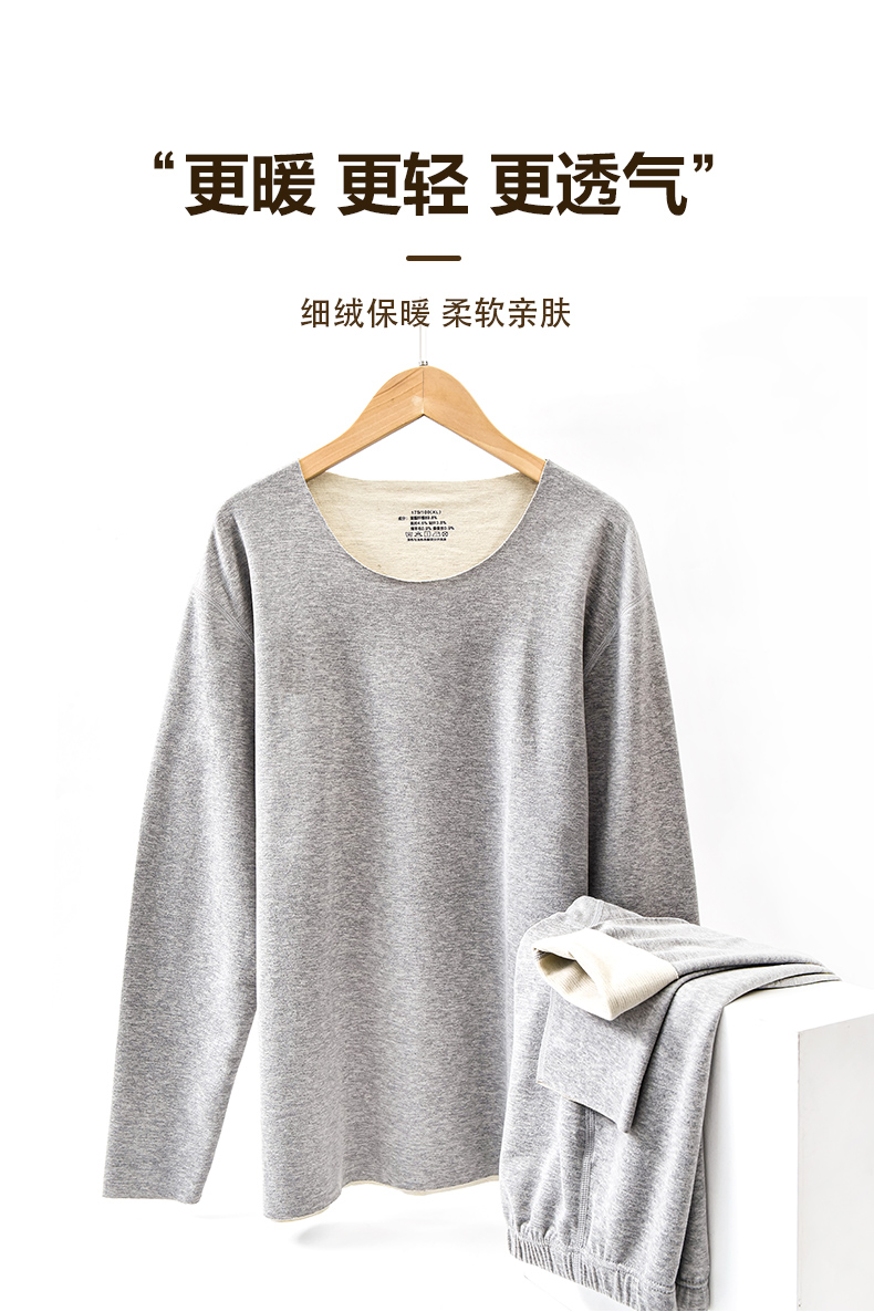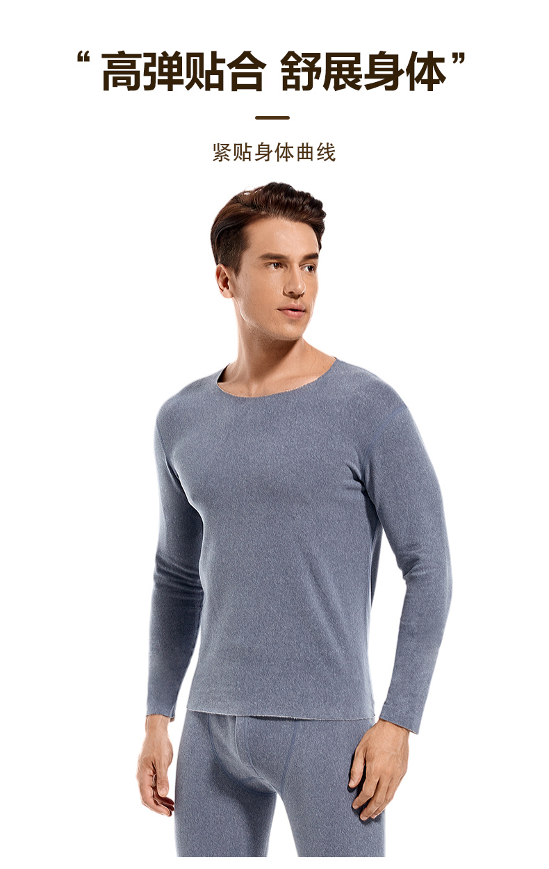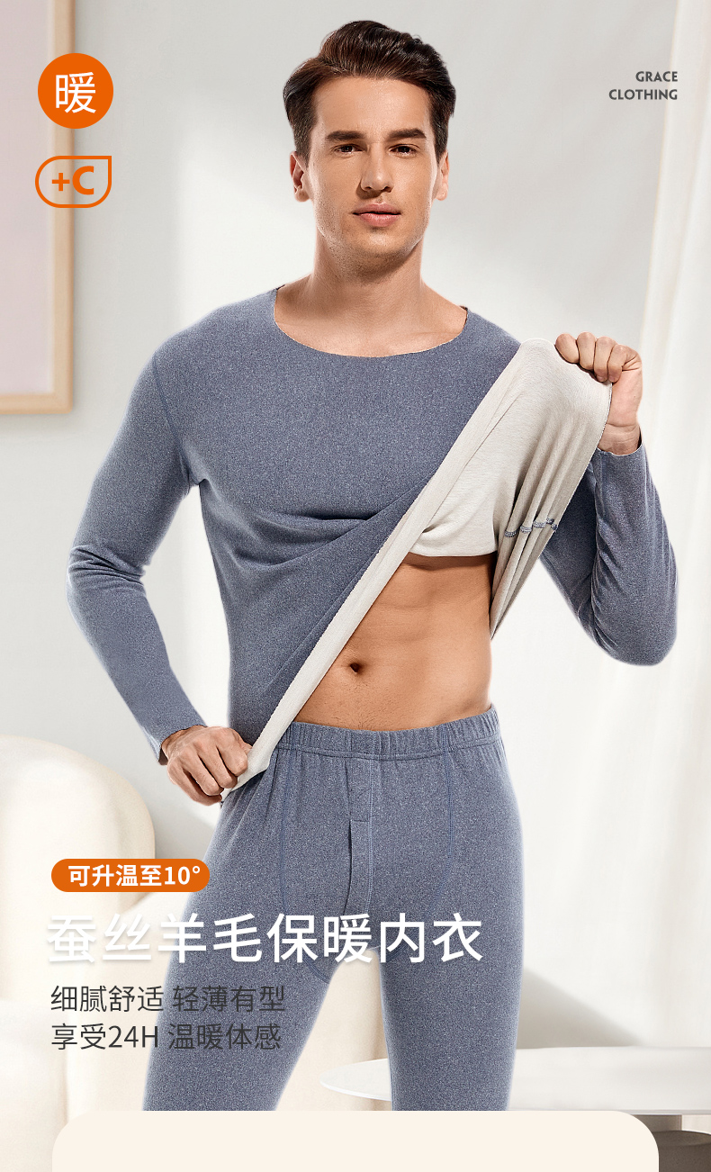 洁丽雅男士保暖套装轻薄保暖圆领蚕丝羊毛保暖内衣男套装