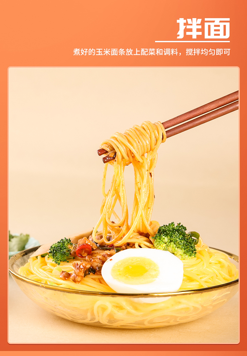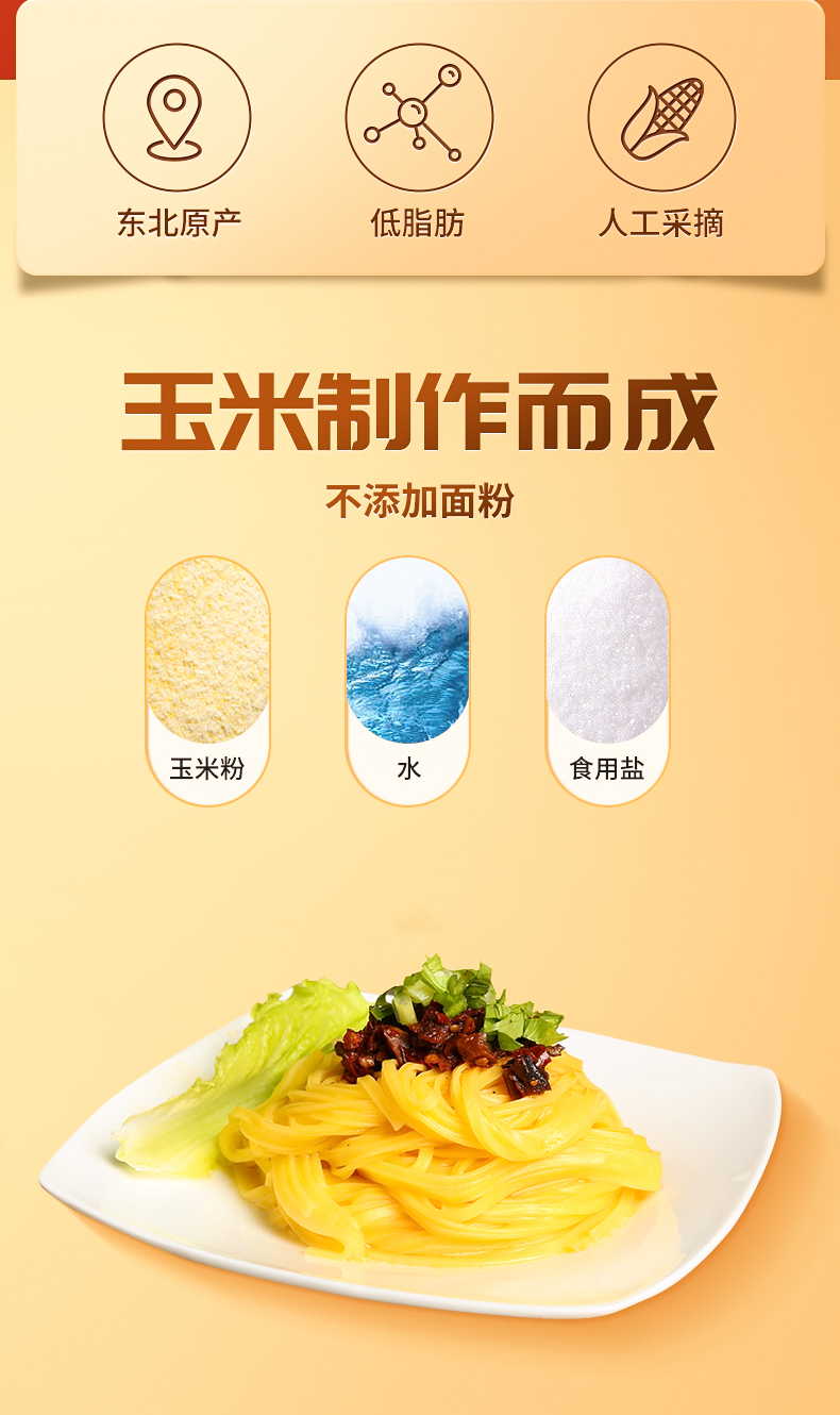 【玉米面条】采用高山寒地胶质玉米!香甜爽滑,热量低,饱腹感强!含大量膳食纤维,营养粗粮,配料干净!0糖0脂0添加,有利于人体吸收!独立包装,安全卫生!150g*10袋!