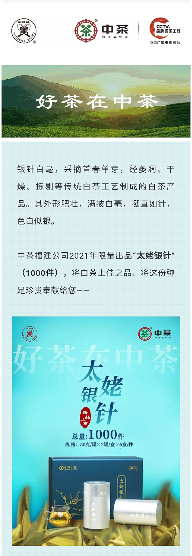 中茶蝴蝶福鼎白茶2021太姥银针5166礼盒50g*2罐/盒