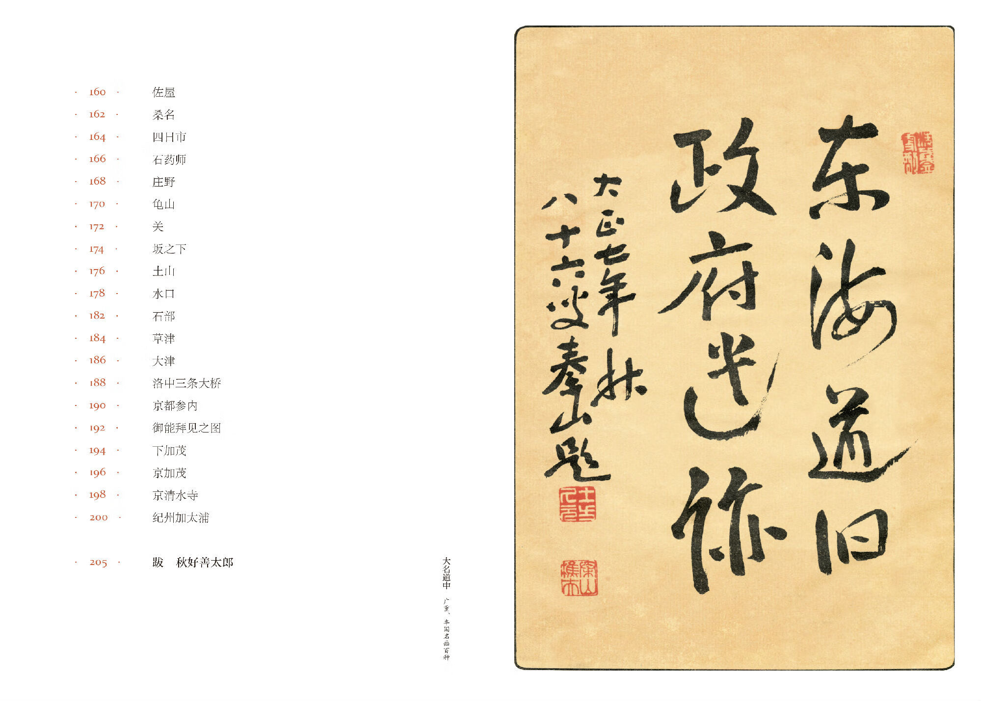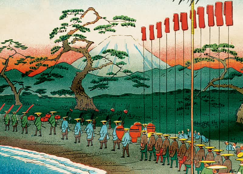书名中的“道”,特指东海道。东海道原为古日本行政区划,也是江户(今东京)至京都间的陆上交通干道。所以《大名道中》的意思,就是大名行进在东海道上。