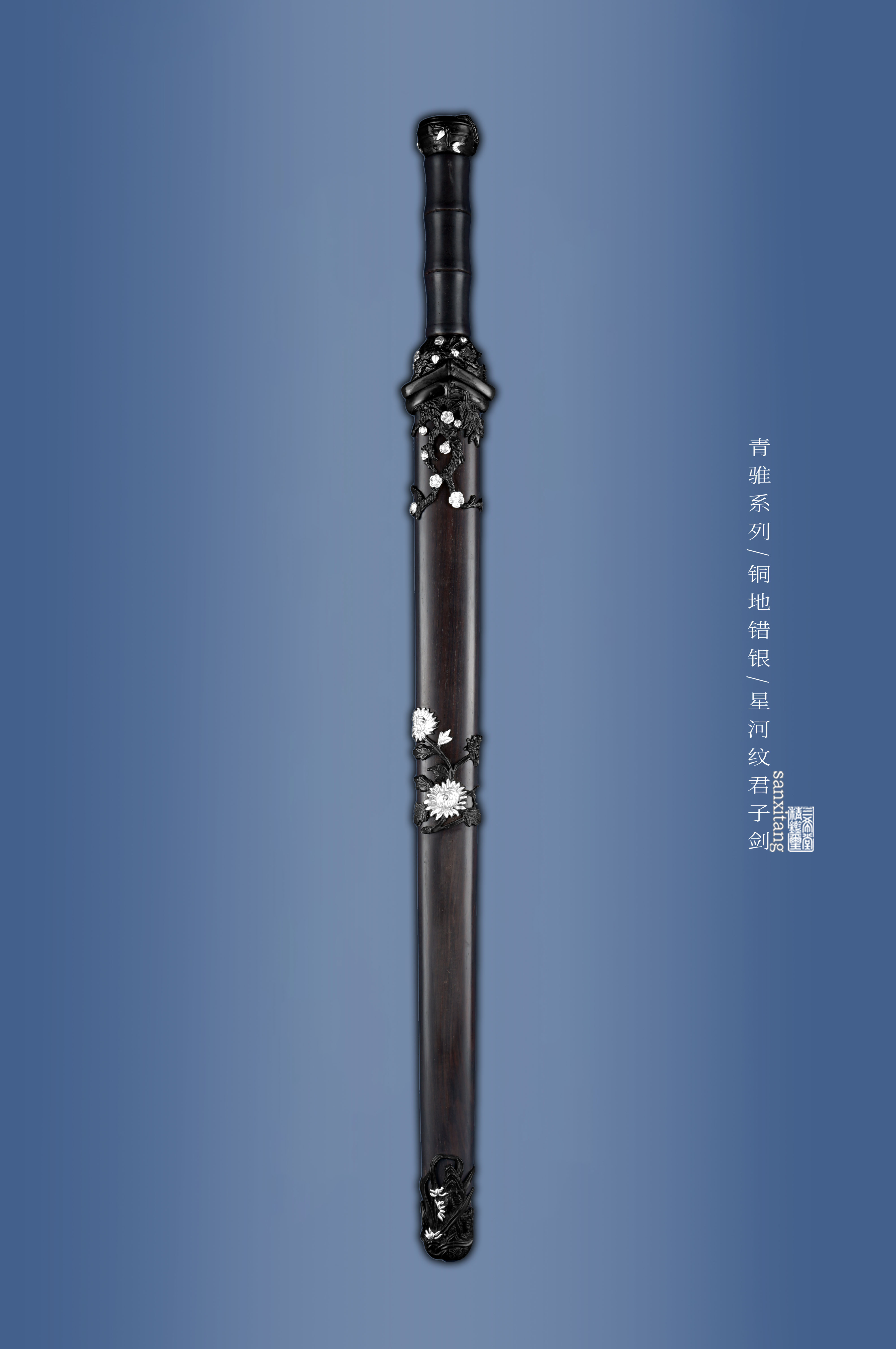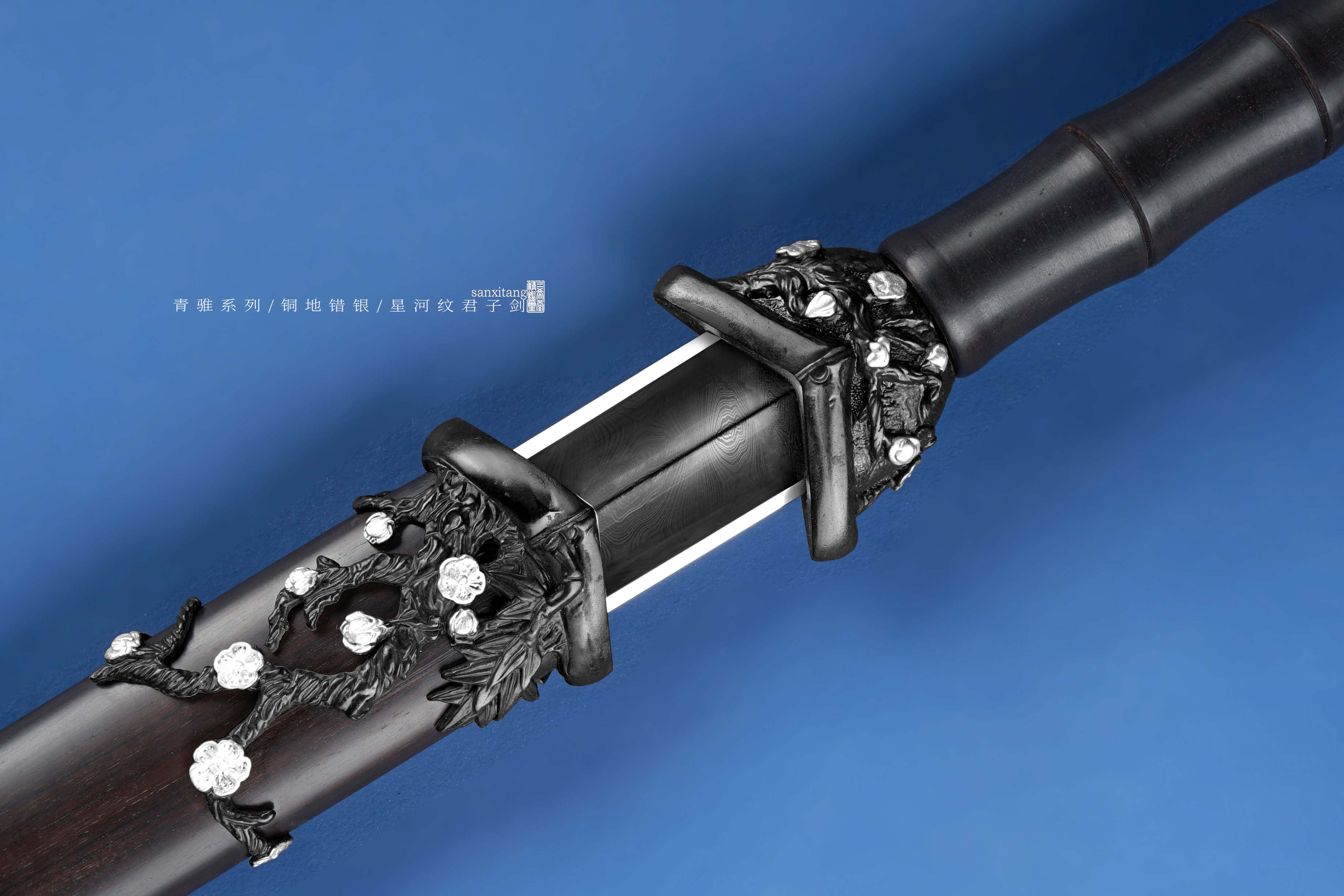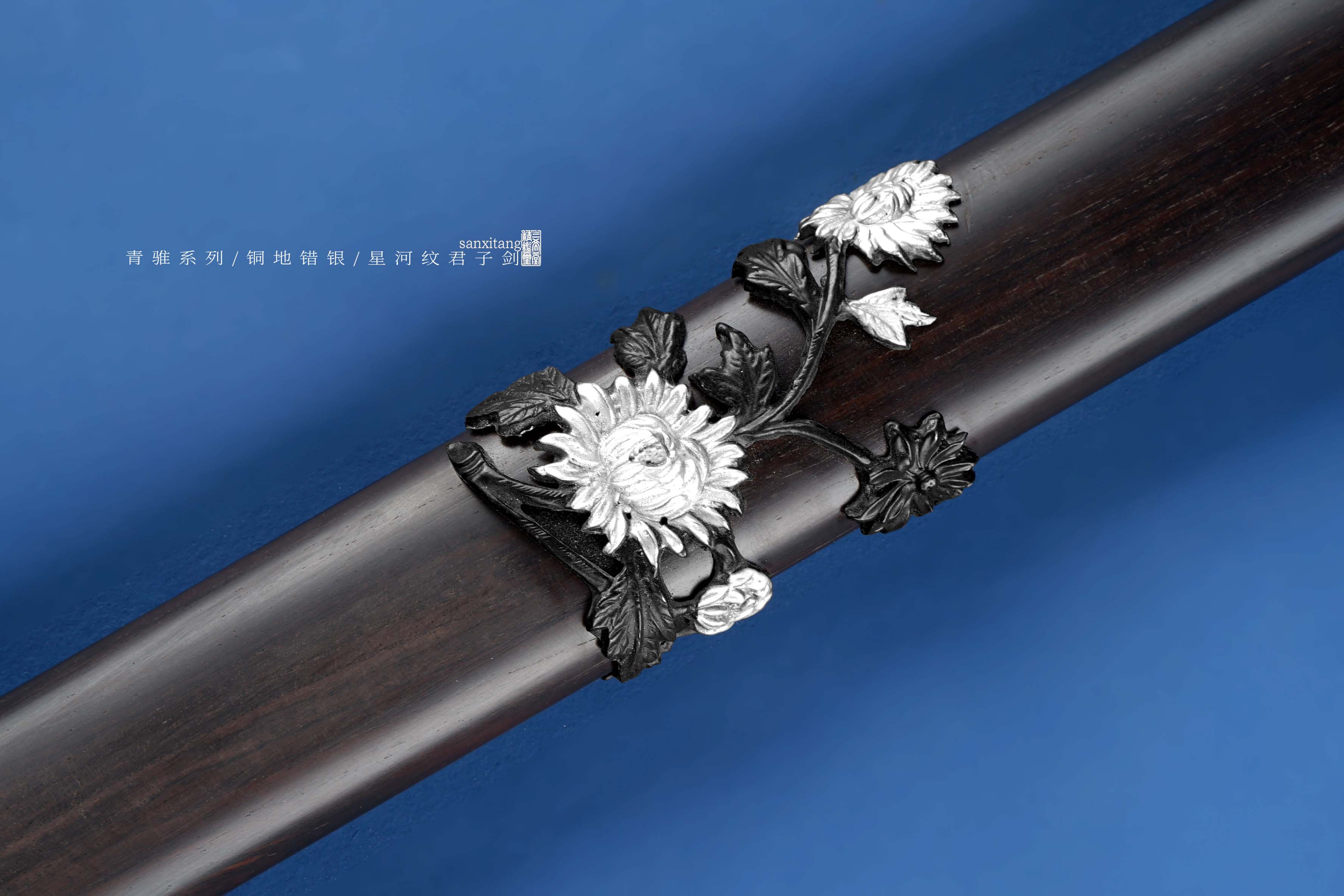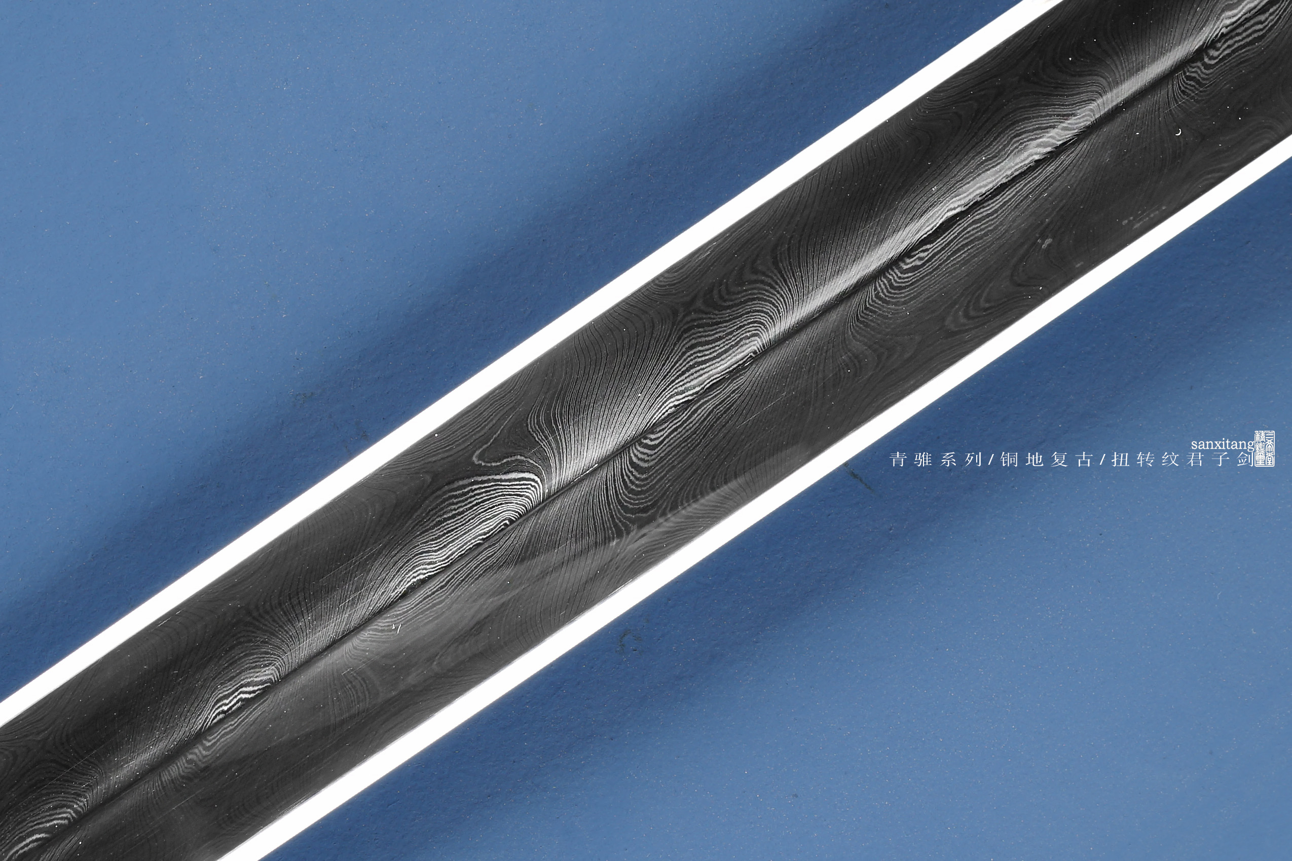 新出的招牌短剑 瓦槽镜面版本 全长78 这款是我们做了13年的款式 样式一直没变过 可以说是非常经典了 铜地四君子金具 复古错银 全黑檀木柄和鞘 手工锻打4000层扭转剑条 开瓦槽 之前的版本是开普通槽 普通打磨 今年升级成了开汉代瓦槽 手工镜面打磨 更好的把纹路展示出来 实物非常漂亮 配置升级了很多 制作工时多了很多 但是价格我们只涨了一点 还是非常划得来的 推荐各位入手 自己收藏或者送人都挺好