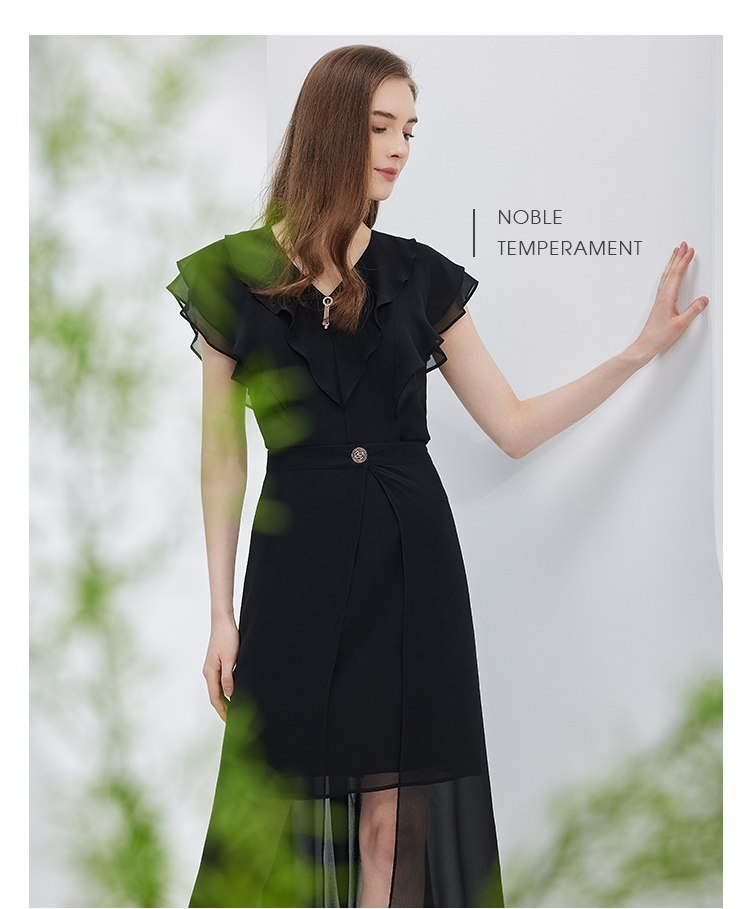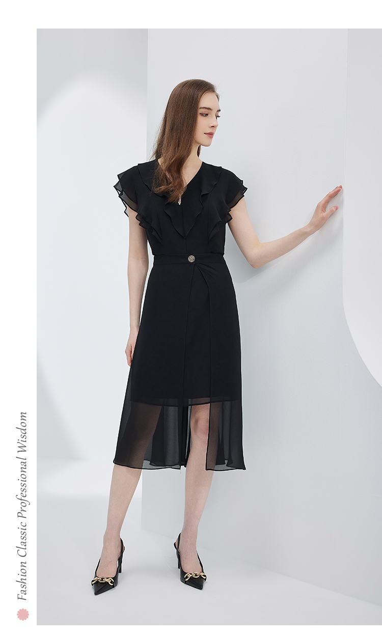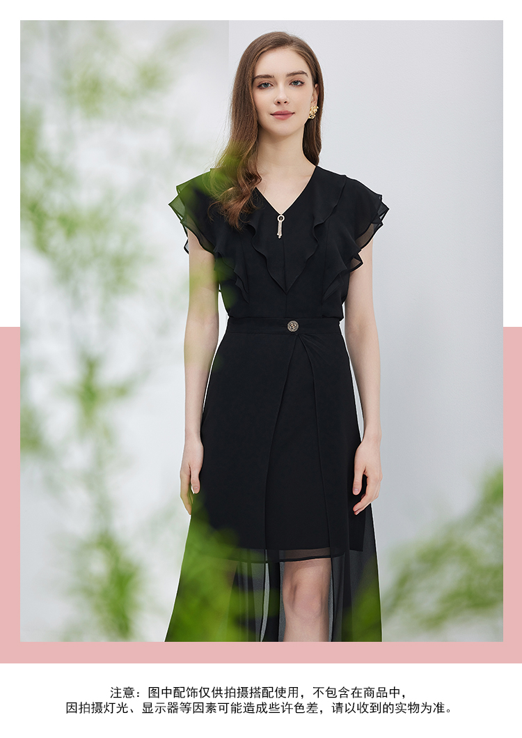 NF8X3斯尔丽瑟俪2023夏季新款荷叶领法式浪漫轻薄柔美连衣裙
