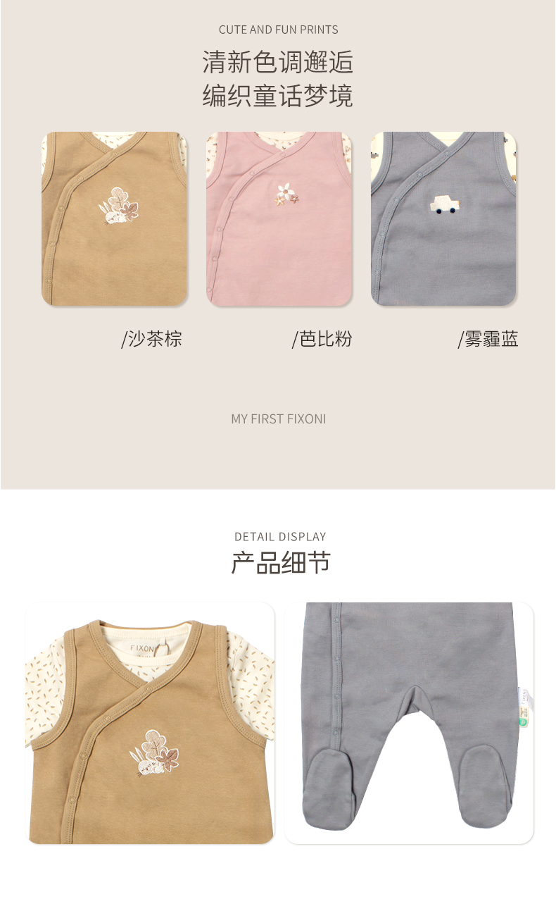 【云优选】FIXONI婴幼儿斜开襟连脚包屁衣套装-限时清仓