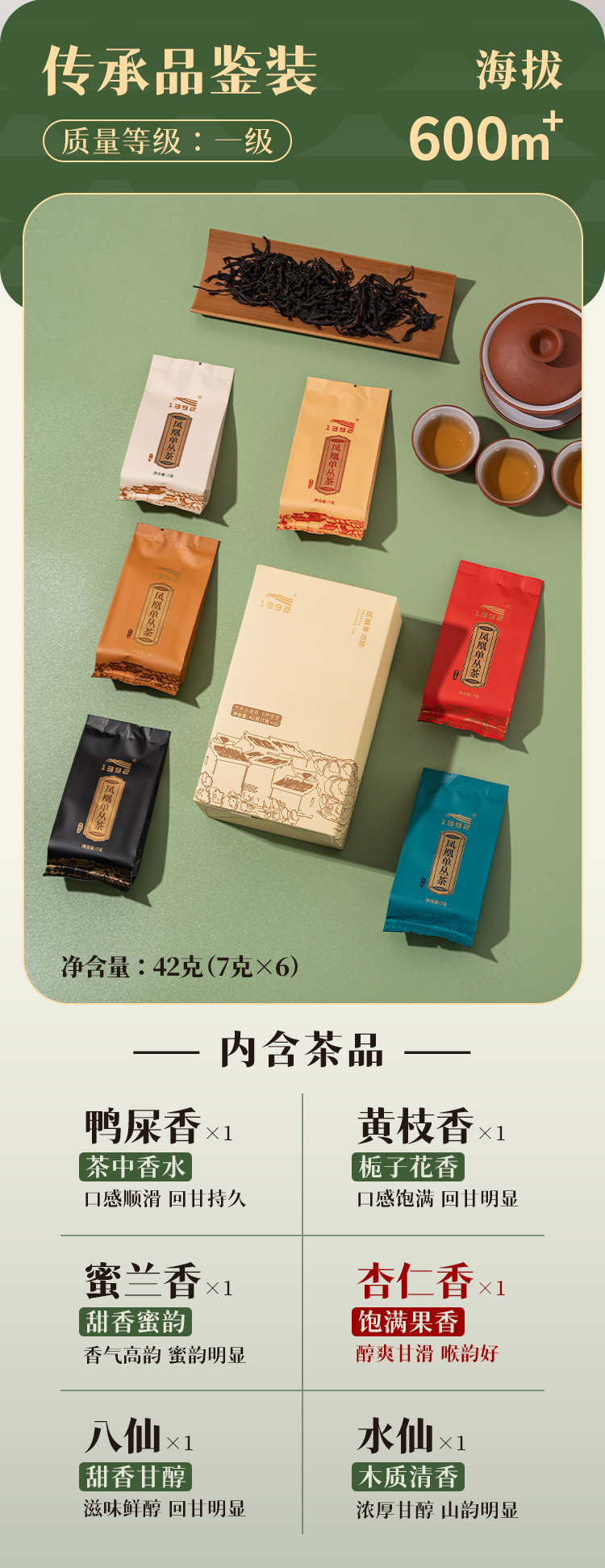 天池·青山传承·品鉴装 (黄枝香、蜜兰香、水仙、八仙、鸭屎香、杏仁香) 42g/盒