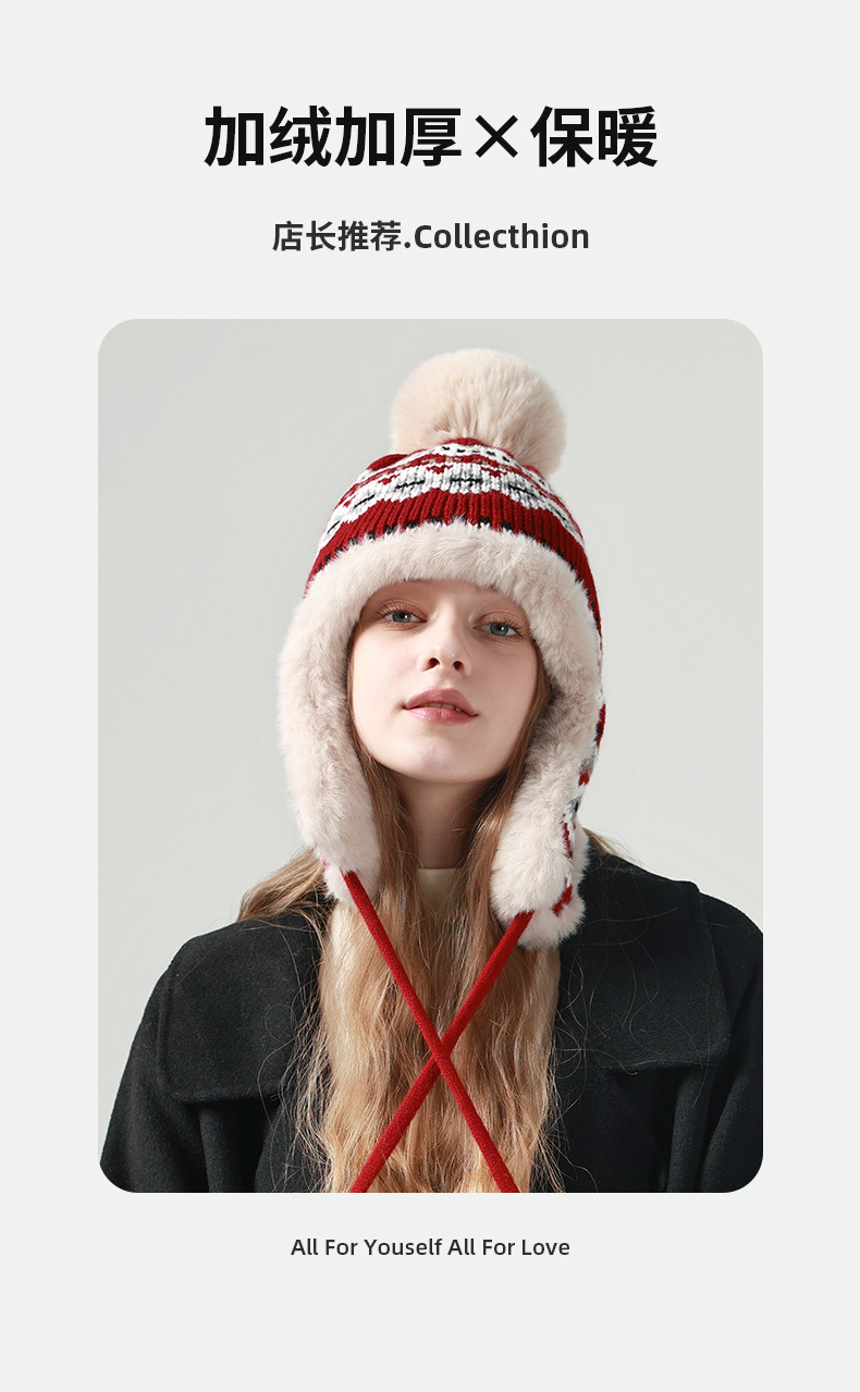 英伦风圣诞节帽子日系仿兔毛加绒加厚雷锋帽秋冬季韩版保暖护耳户外骑行滑雪帽子潮学生潮流百搭新款旅游必备小红书推荐