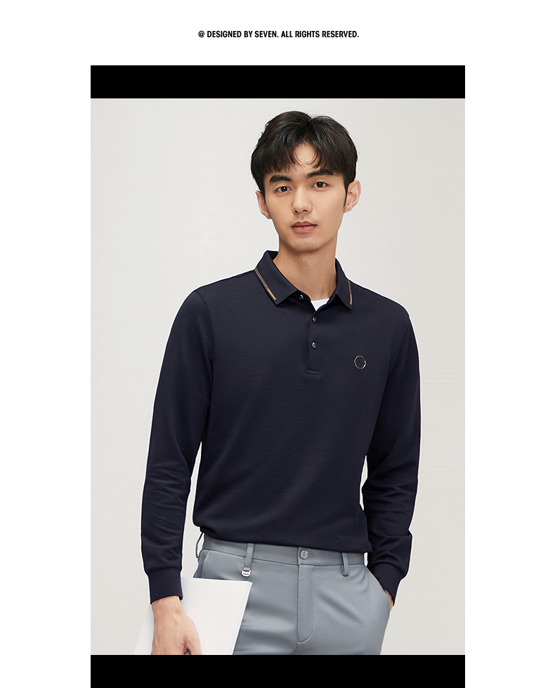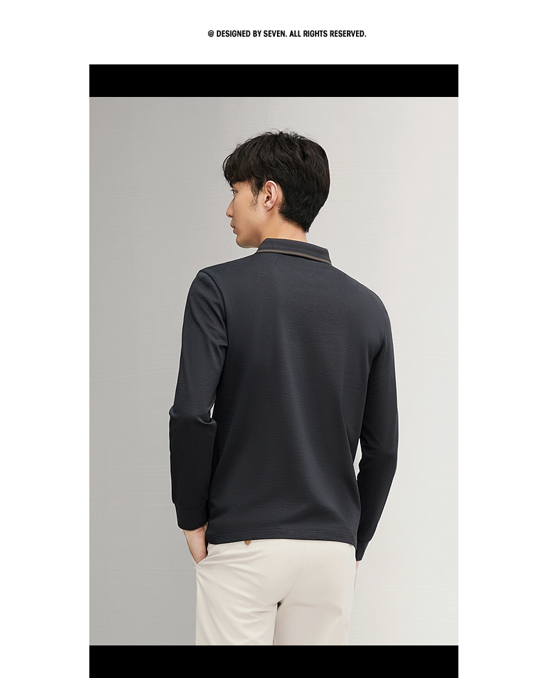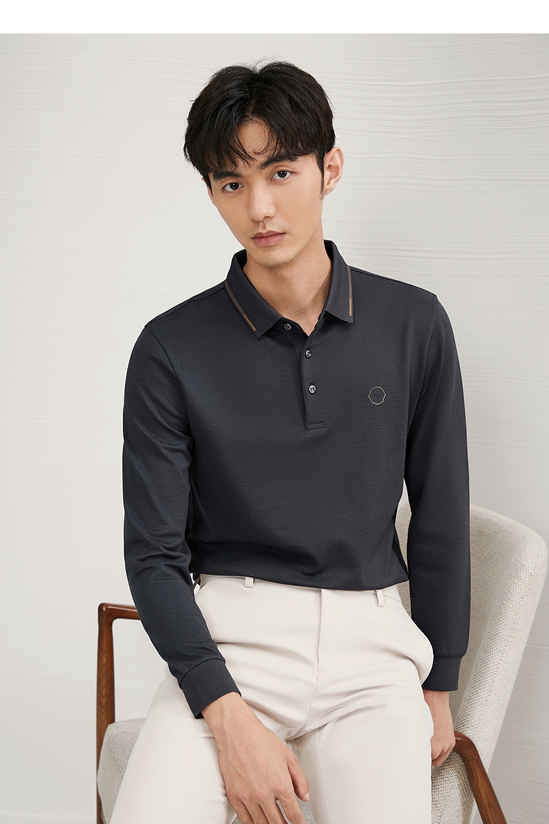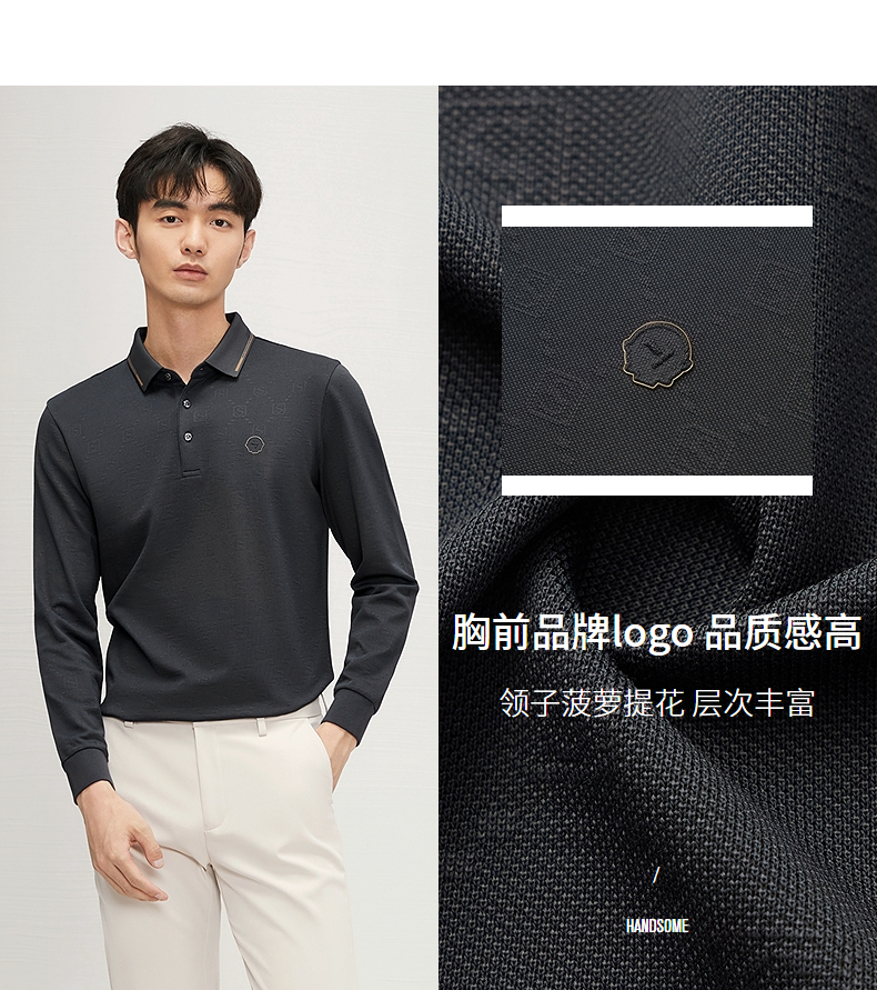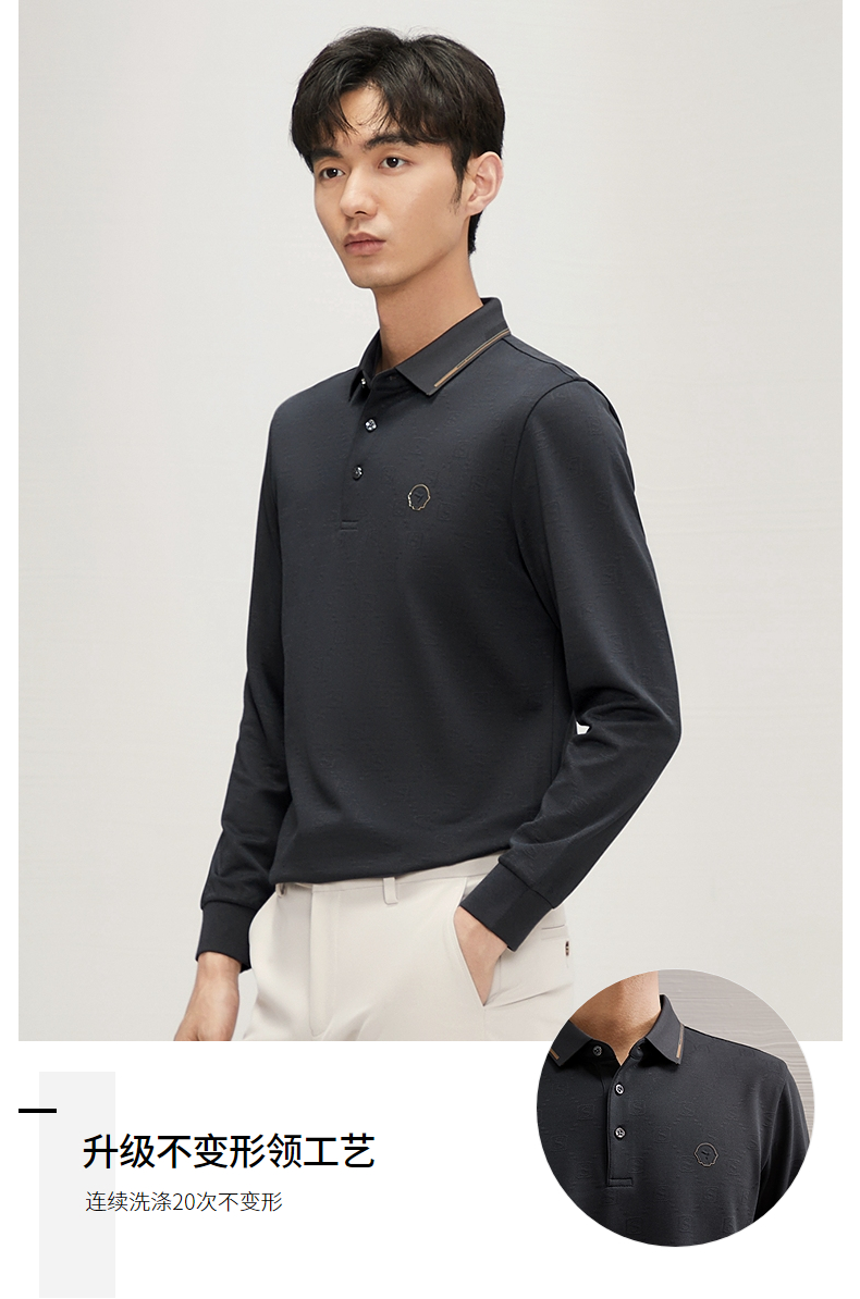 【含羊毛】柒牌男士polo衫长袖秋季新款满身提花时尚潮流翻领上衣 127T70460