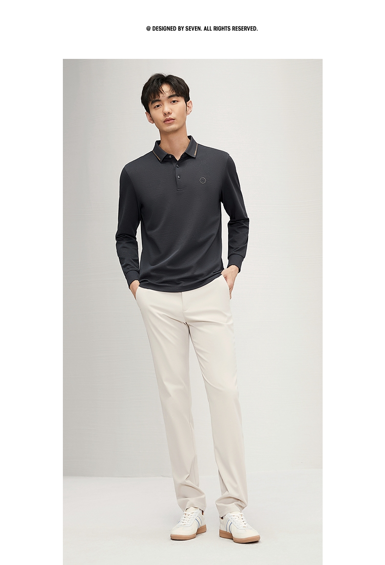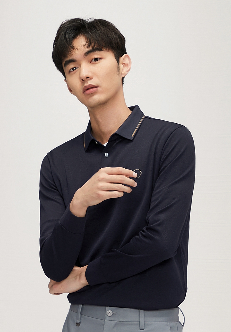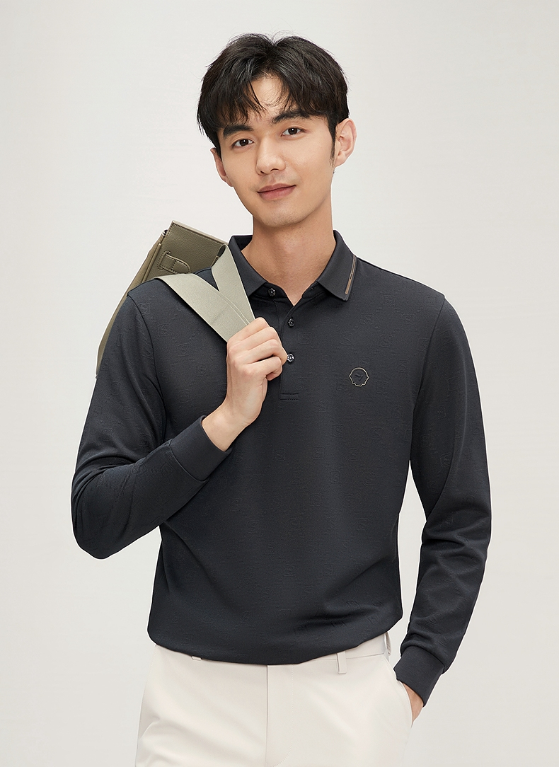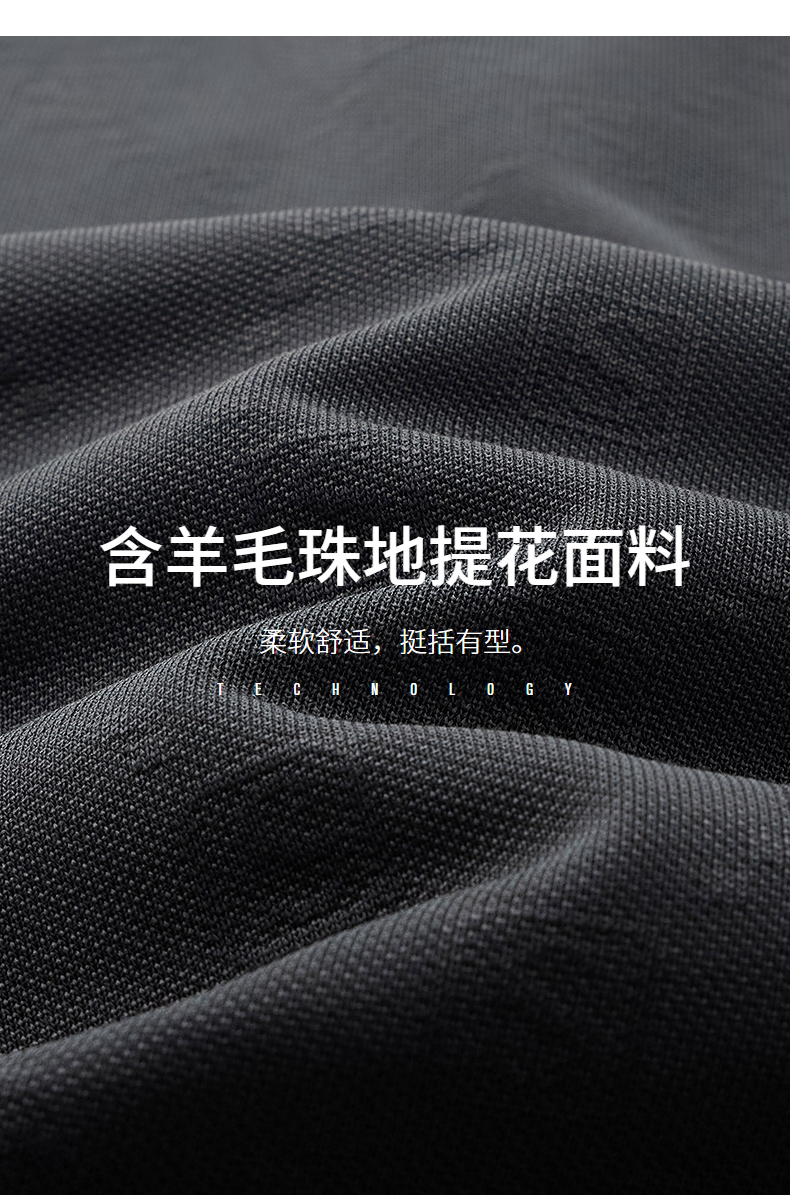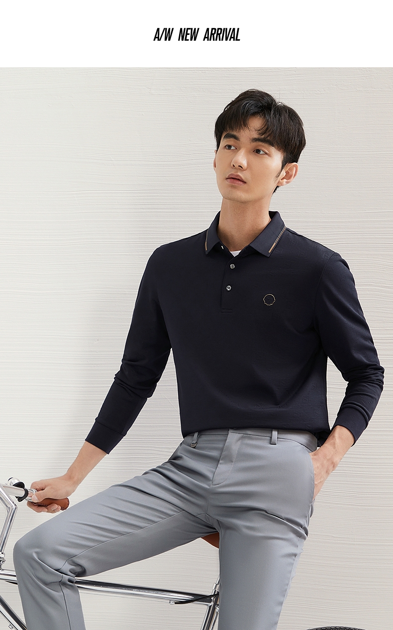 【含羊毛】柒牌男士polo衫长袖秋季新款满身提花时尚潮流翻领上衣 127T70460