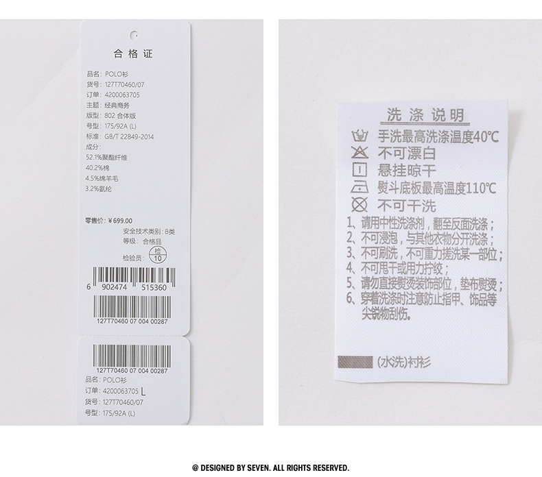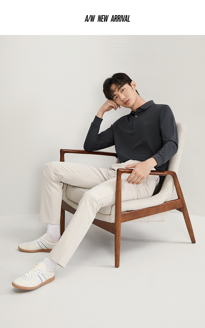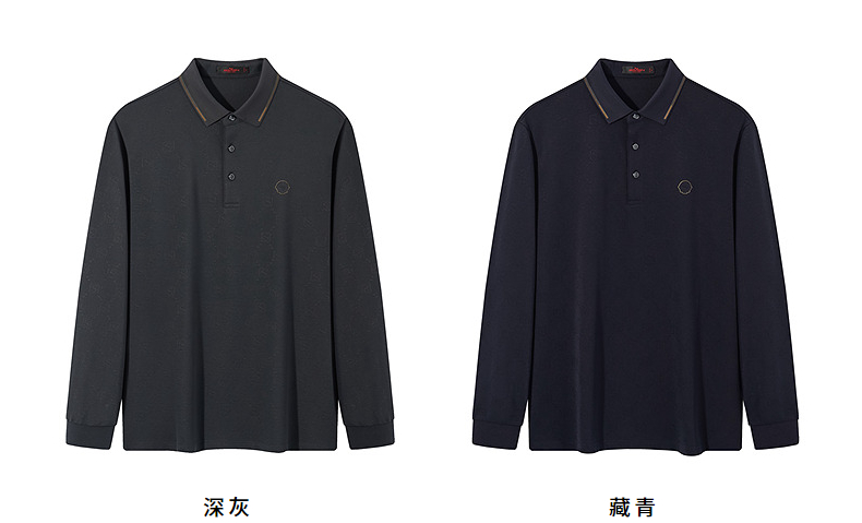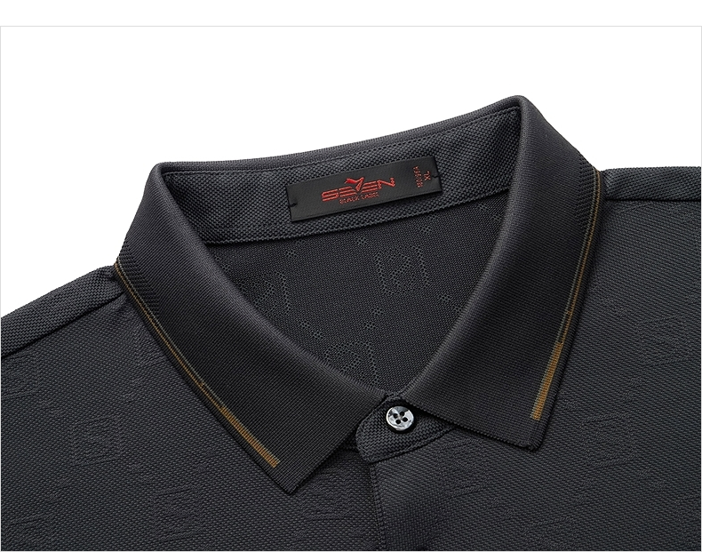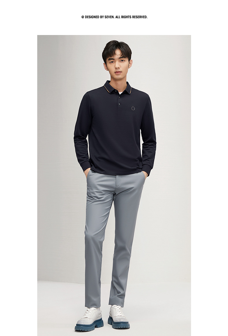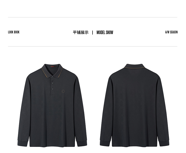 【含羊毛】柒牌男士polo衫长袖秋季新款满身提花时尚潮流翻领上衣 127T70460