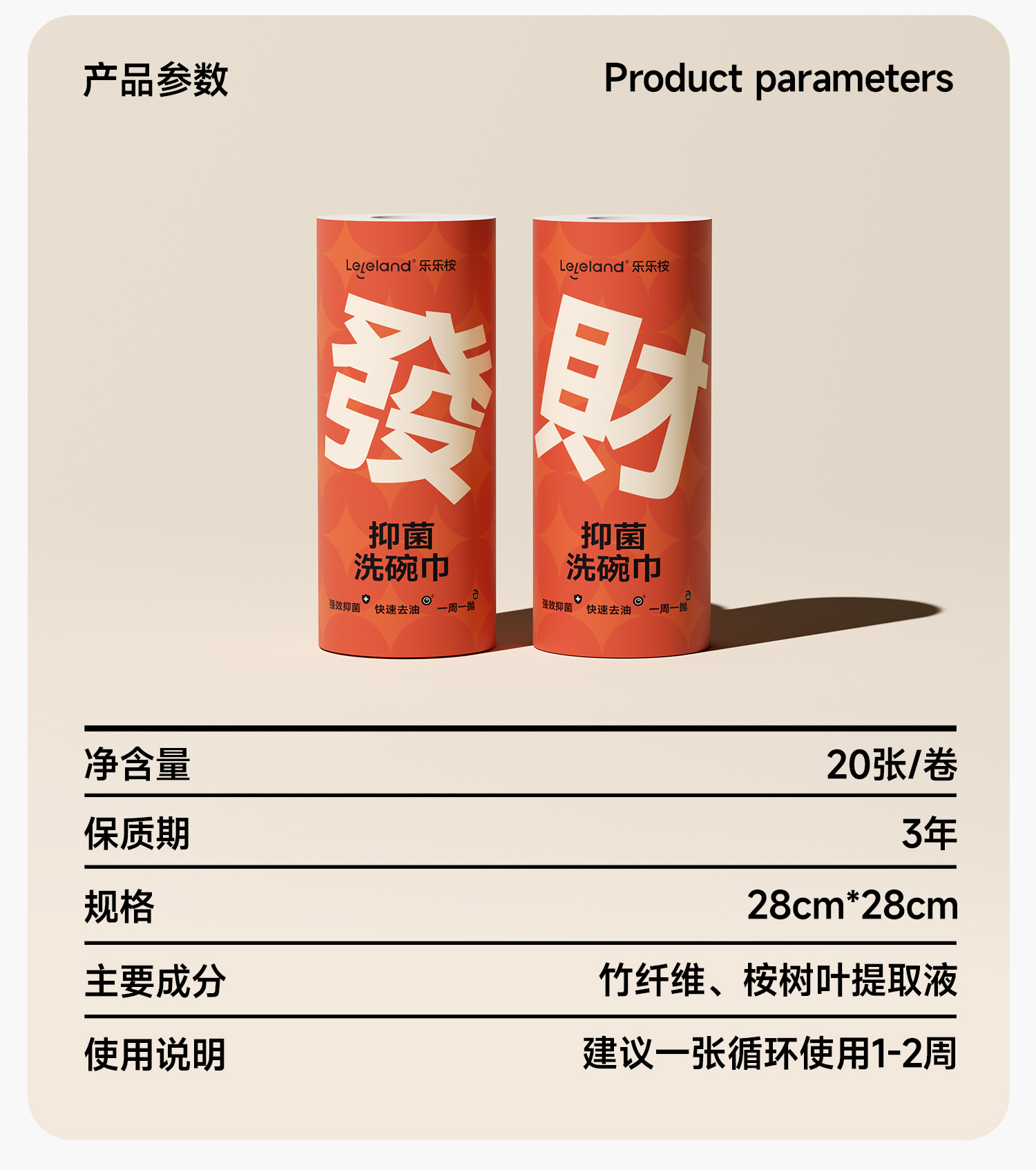 【新年限定】乐乐桉新年限定懒人周抛洗碗巾 专利天竹纤维 环保可降解 不沾油好清洗 0荧光剂0甲醛 干湿两用 不留水渍