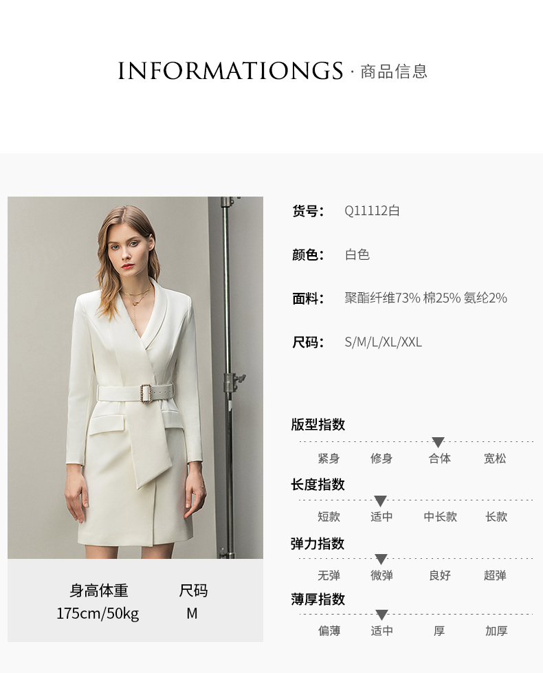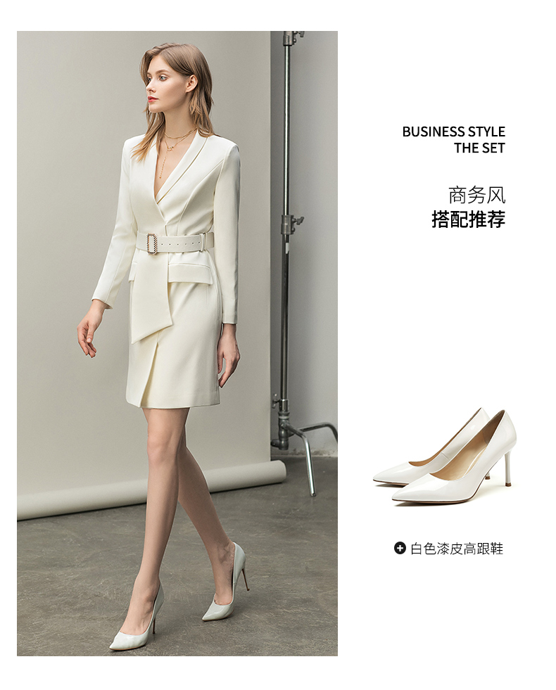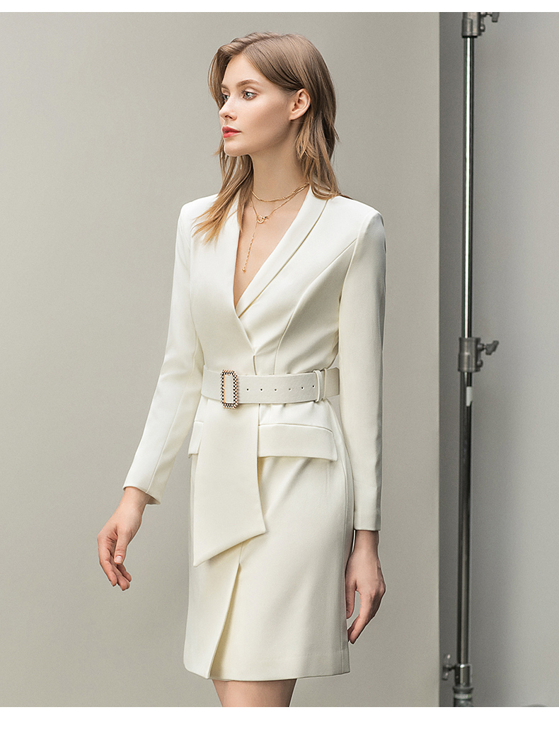 IWY/白色西装正装连衣裙秋冬工作服气质女神范名媛高端主持人职业套裙Q11112白