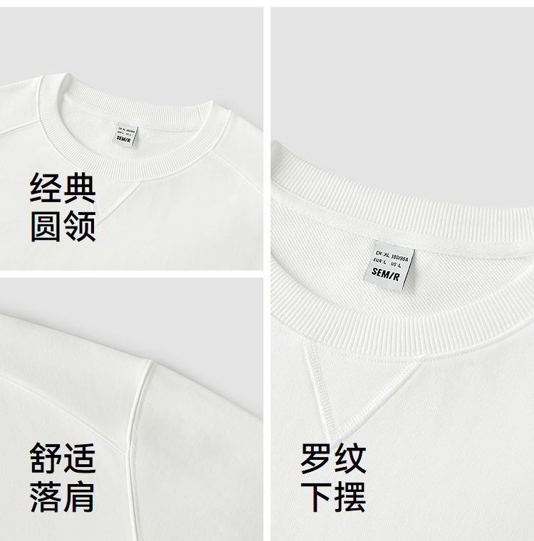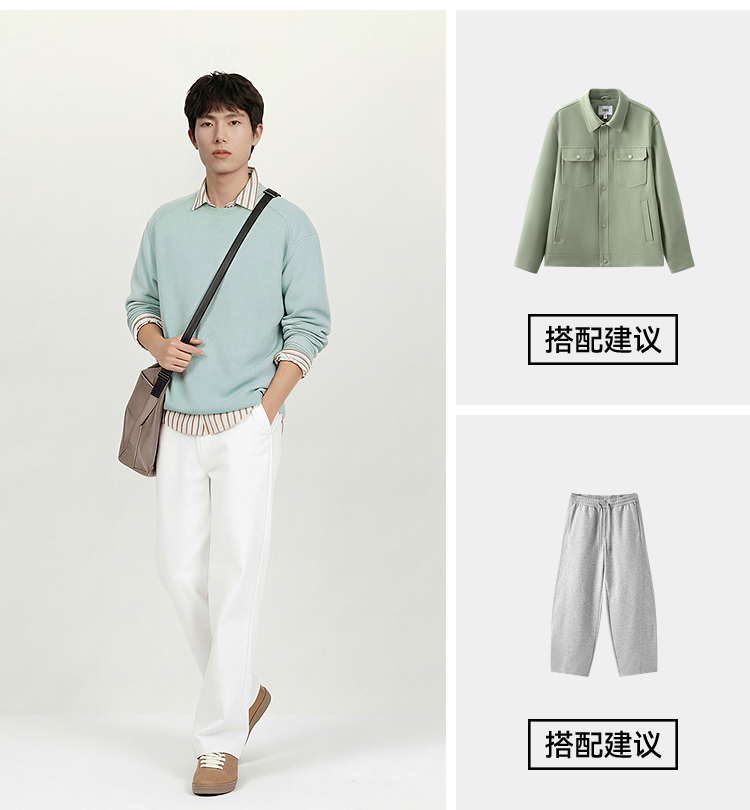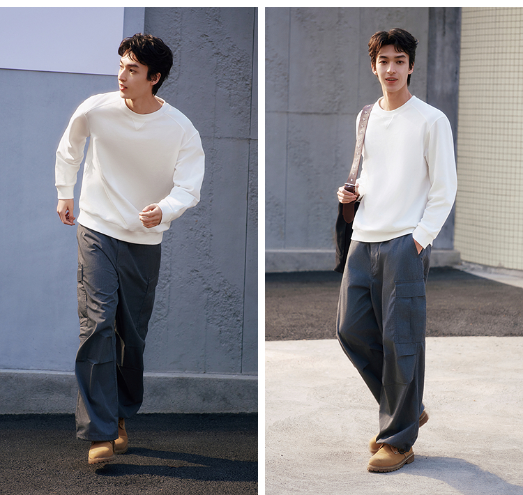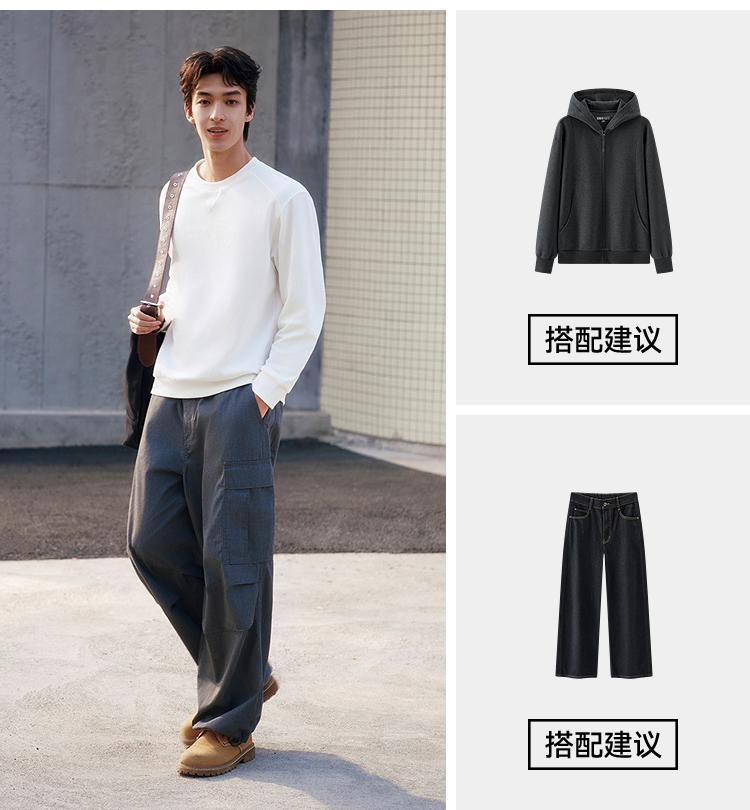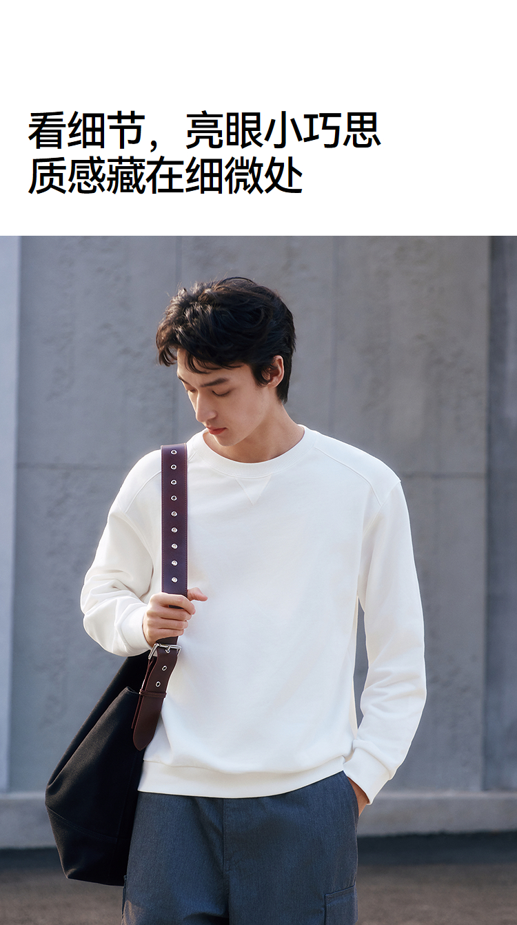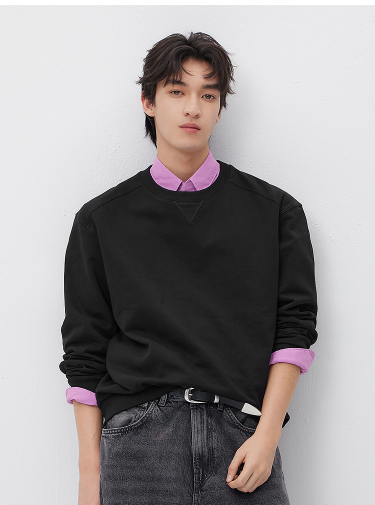 森马卫衣男春季纯色简约百搭长袖上衣休闲套头圆领打底衫柔软舒适