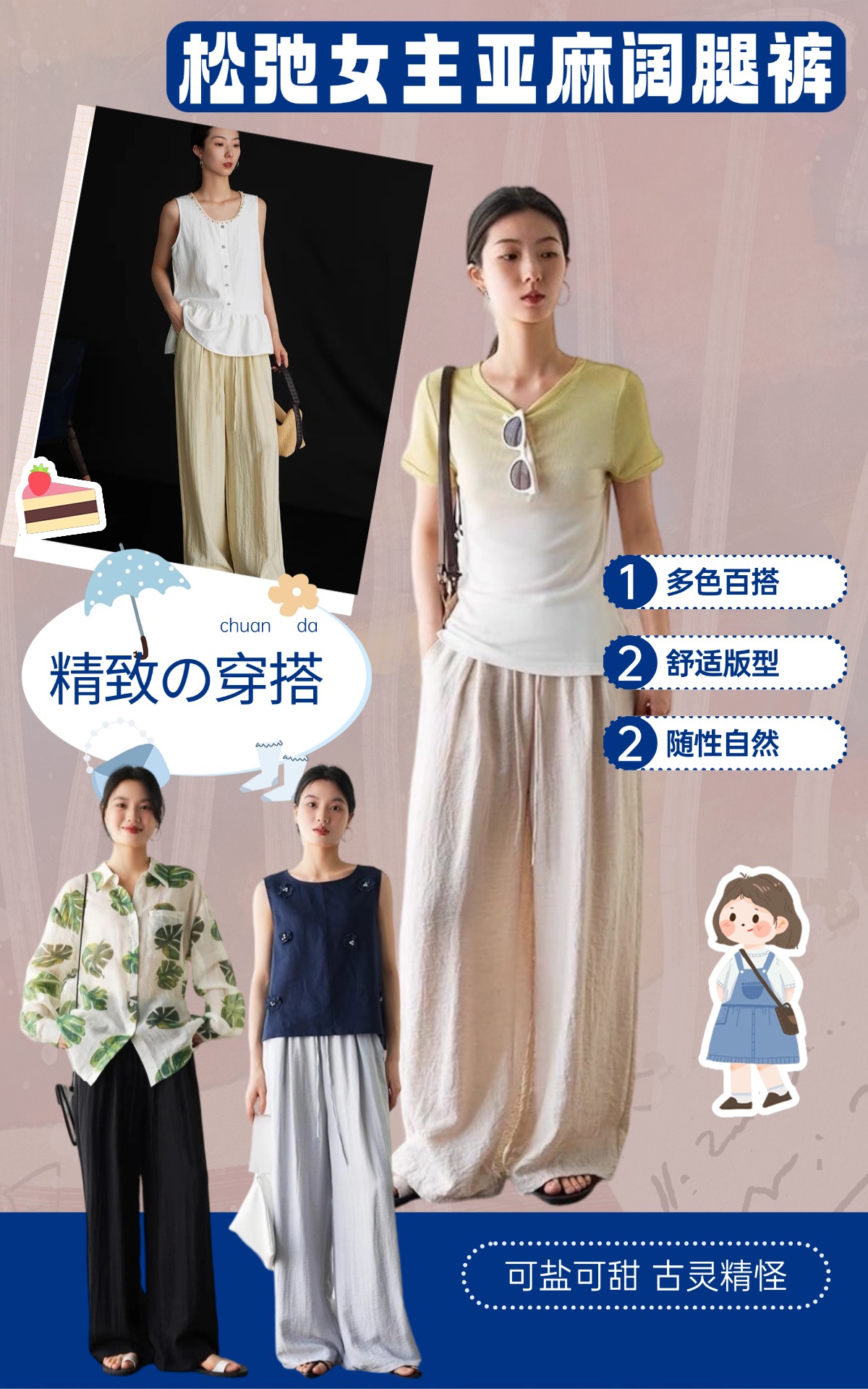 SUTUS/《松弛女主》 亚麻阔腿裤丨BI入~秒变纸片人穿搭 商品图0