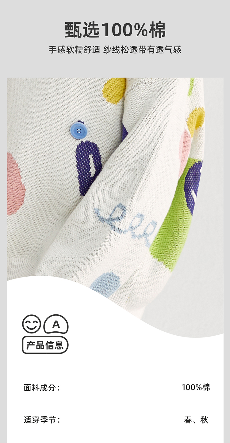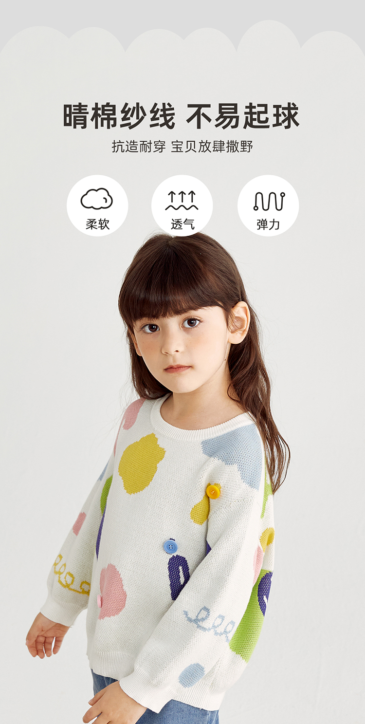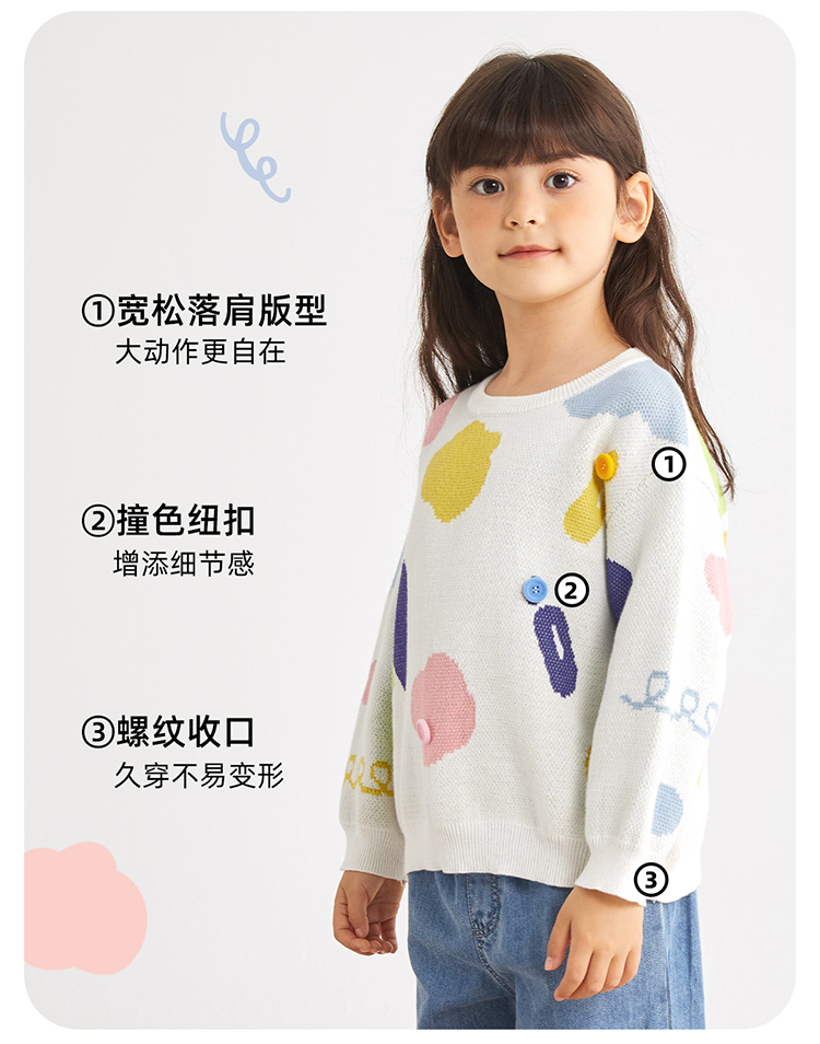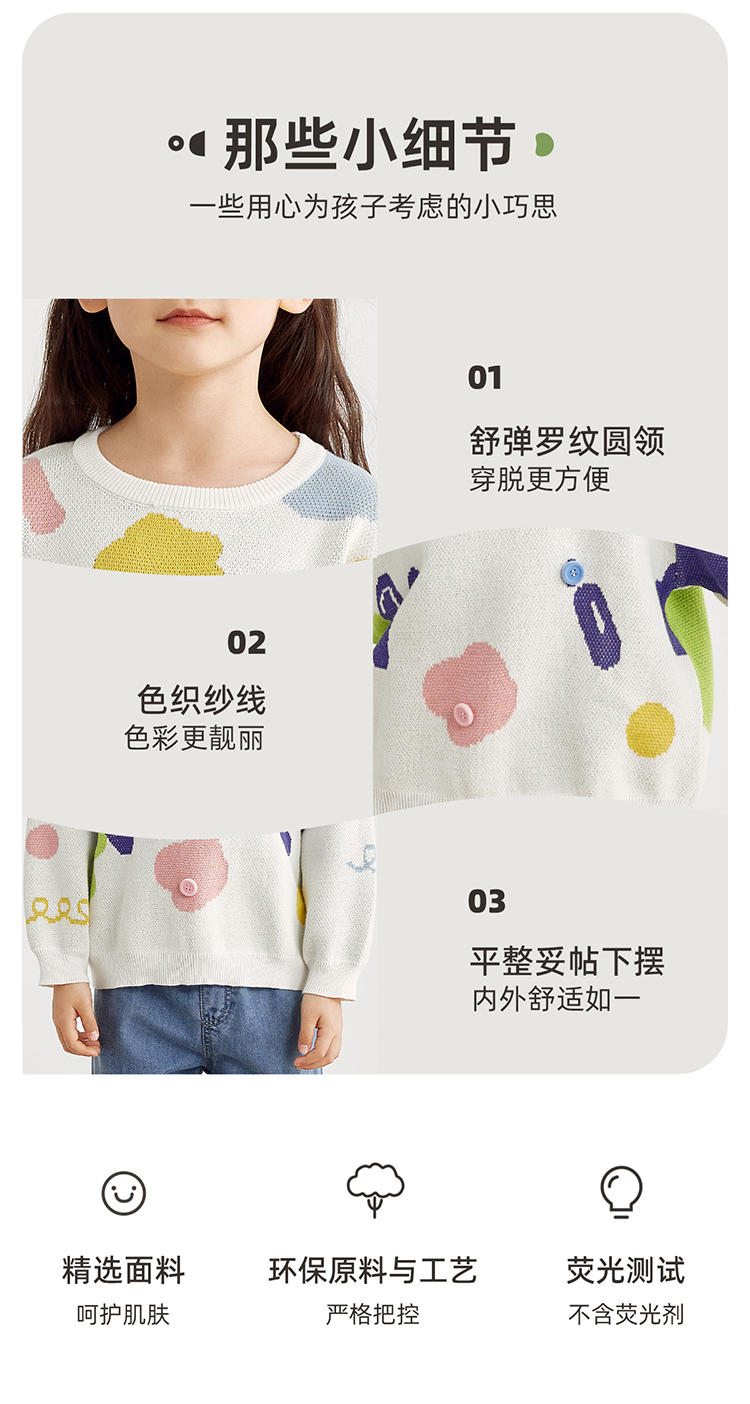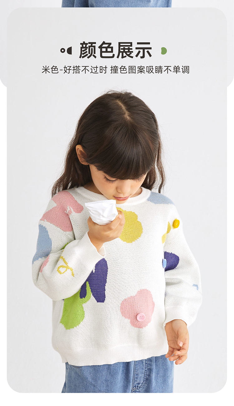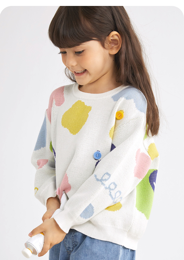 【100%棉 好穿不易起球】多彩提花圆领毛衣PCMY2314