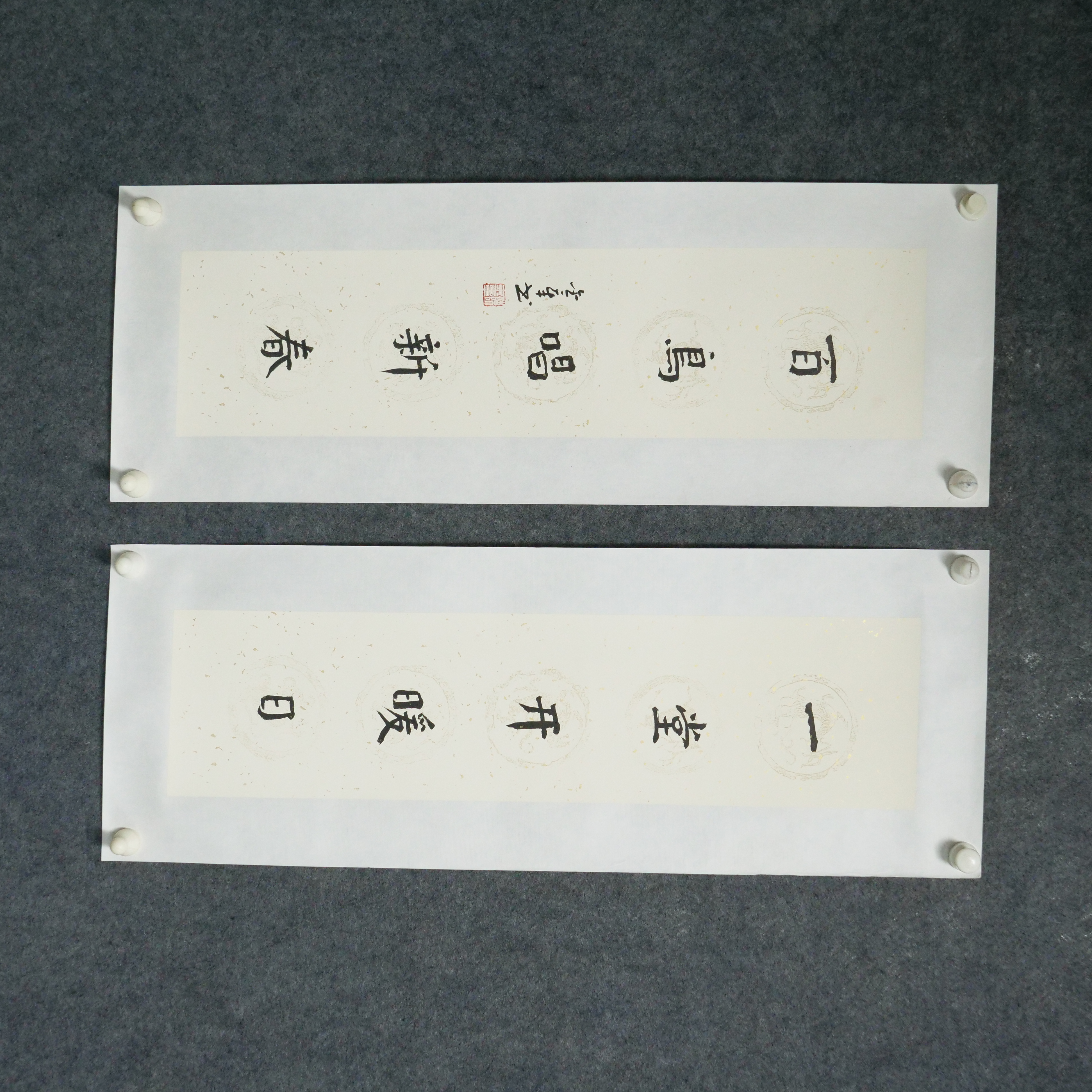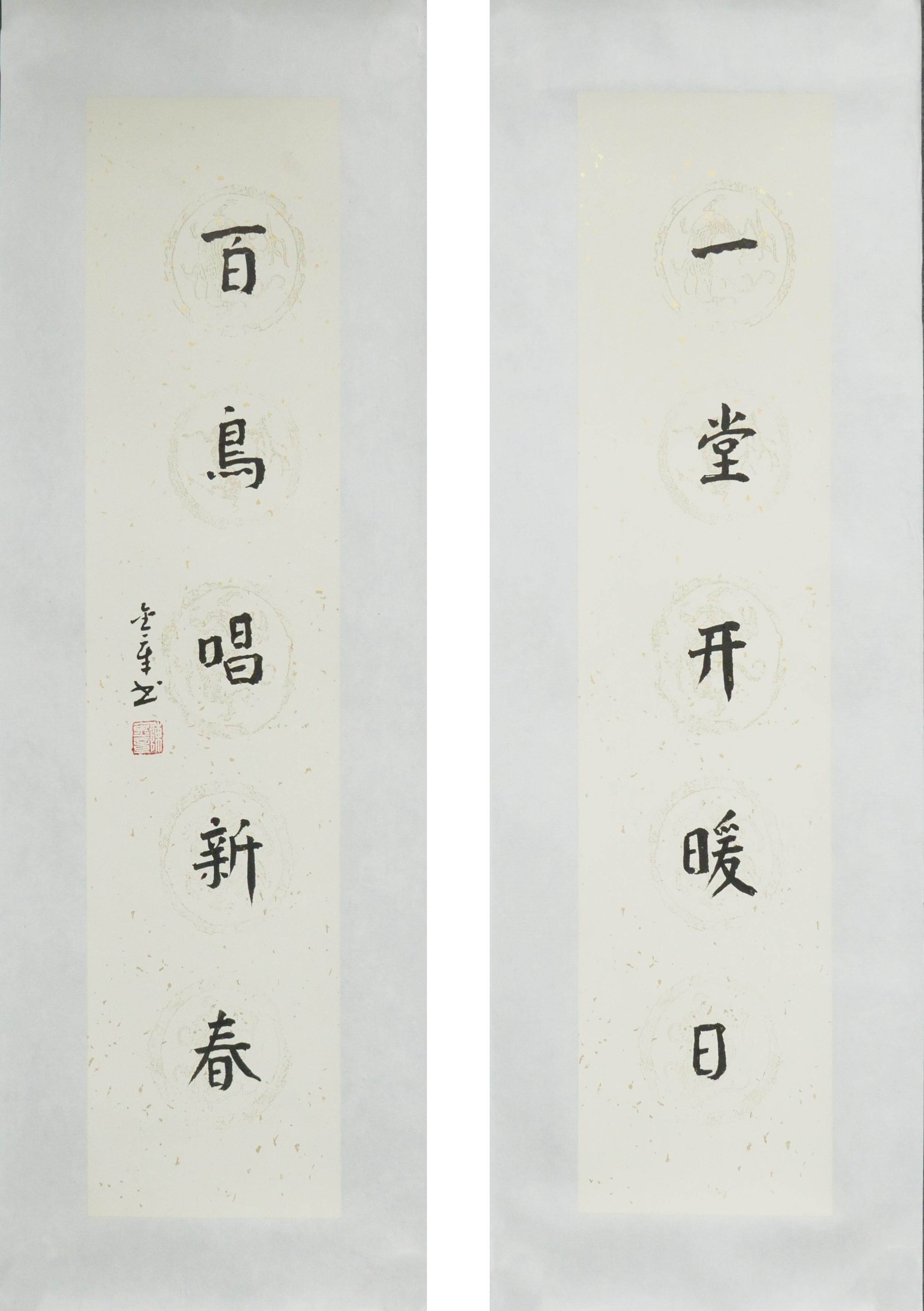 陈金章《一堂开暖日,白鸟唱新春》书法原作67CM*17CM手写宣纸对联