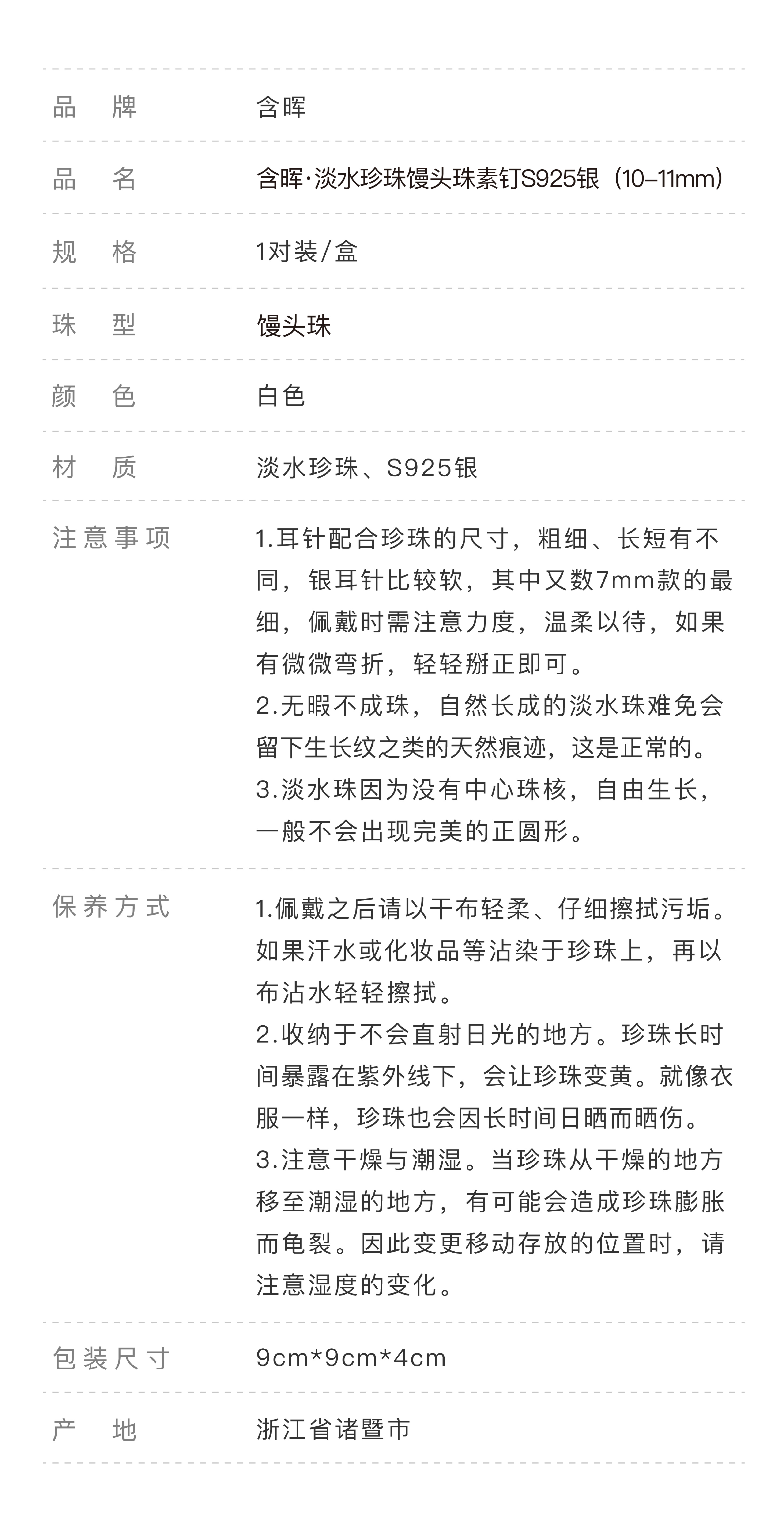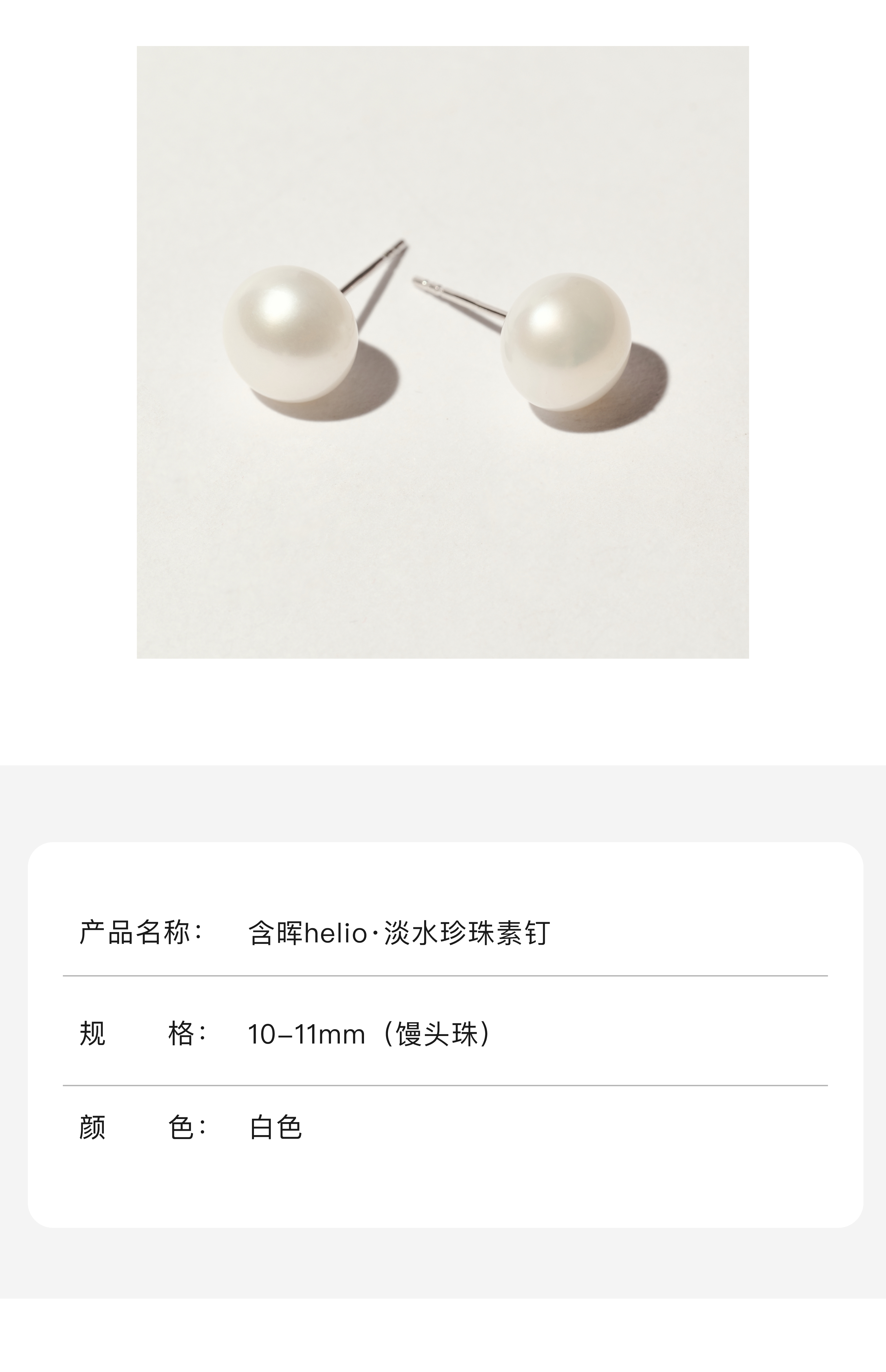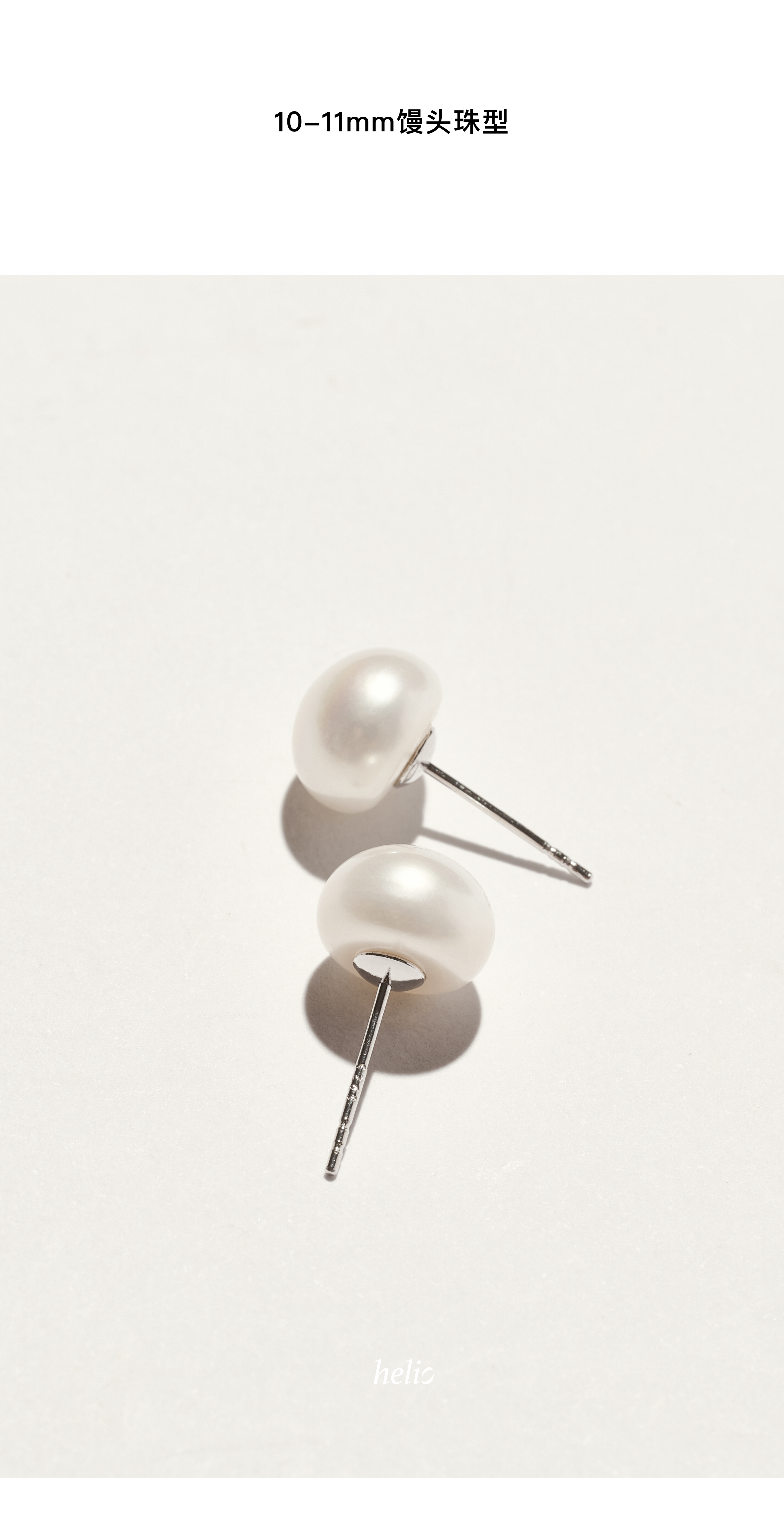 含晖·淡水珍珠素钉S925银(10-11mm)馒头珠 白