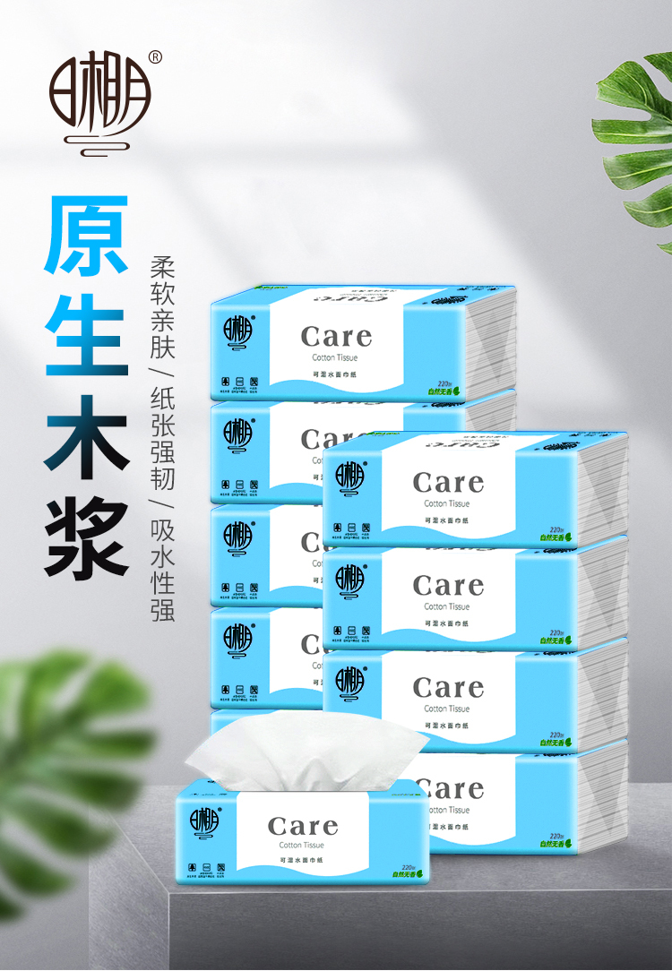 日相月原生抽纸家用可湿水面巾纸8包装