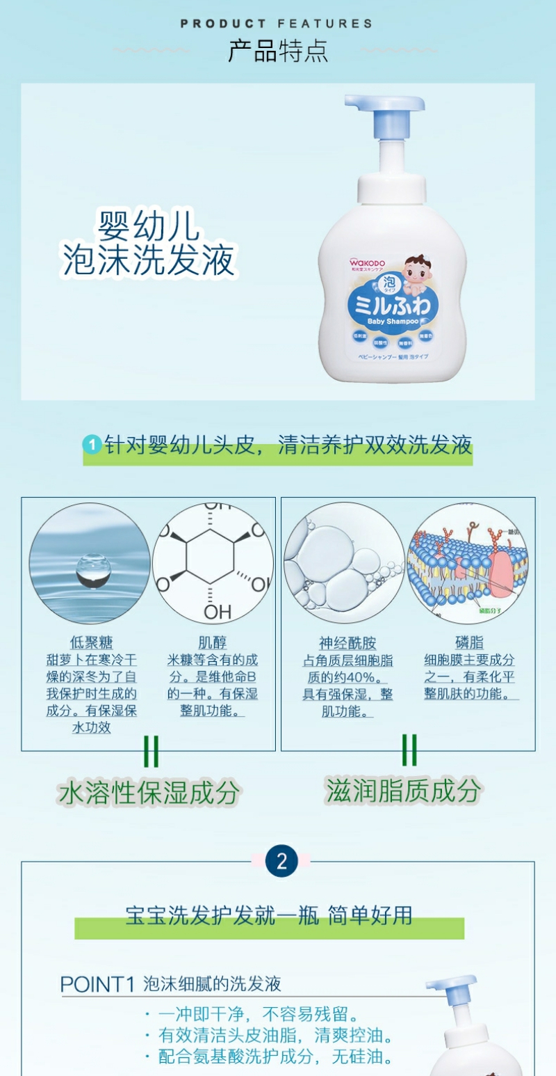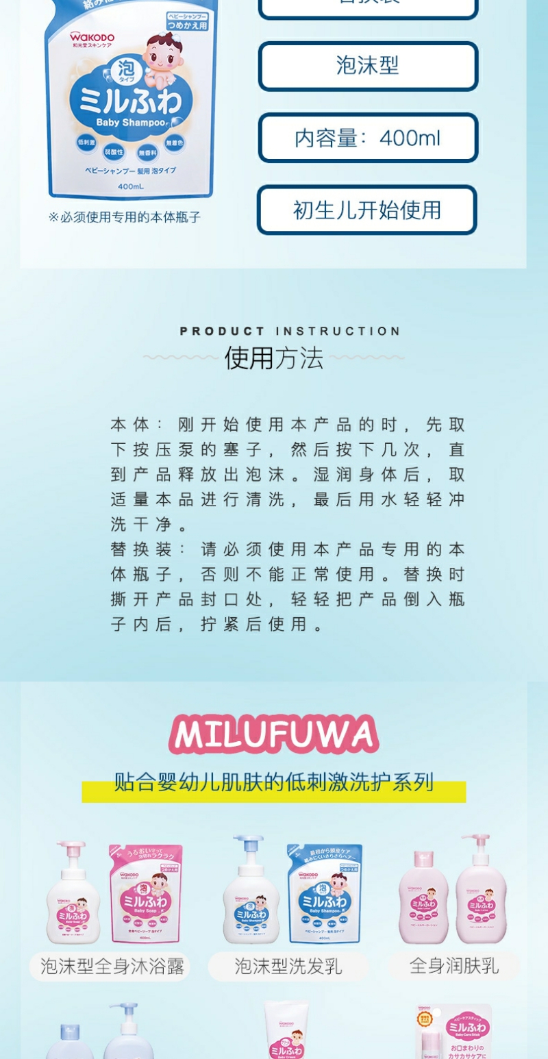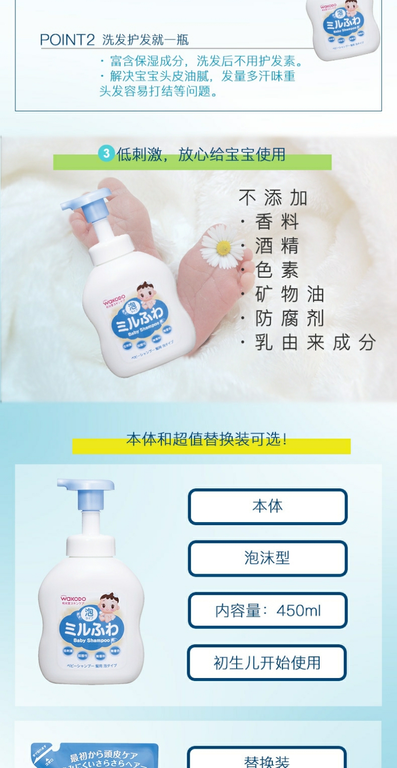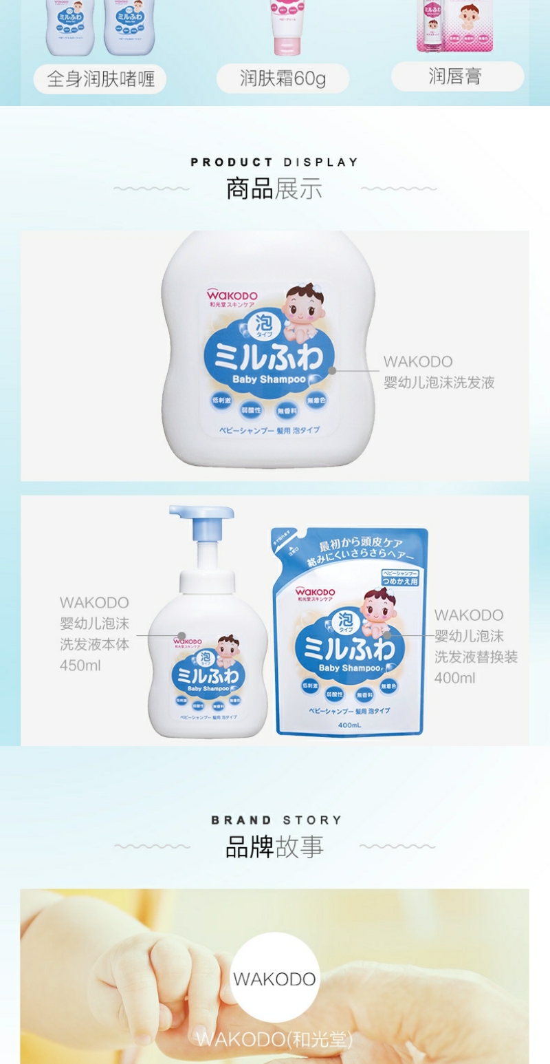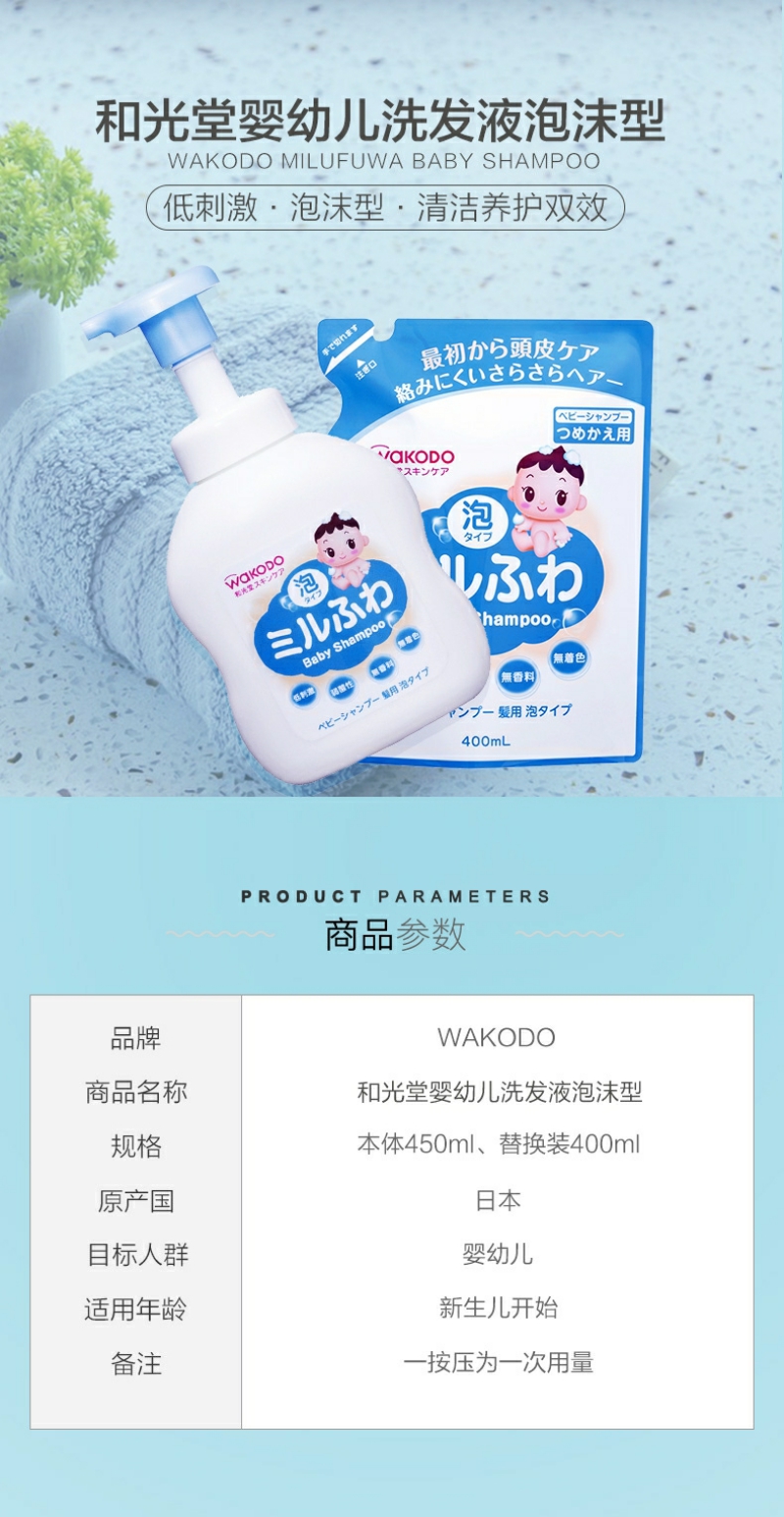 【YZ】日本直邮Wakodo和光堂婴幼儿泡沫洗发液 450ml