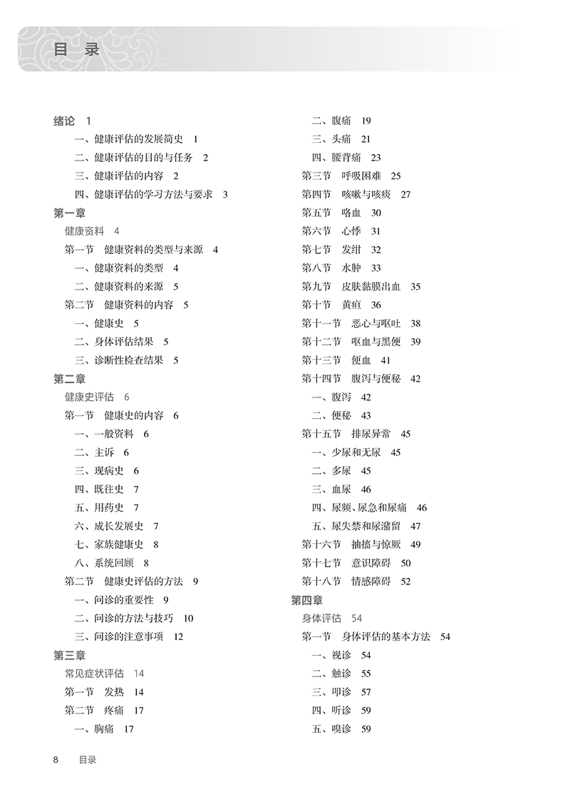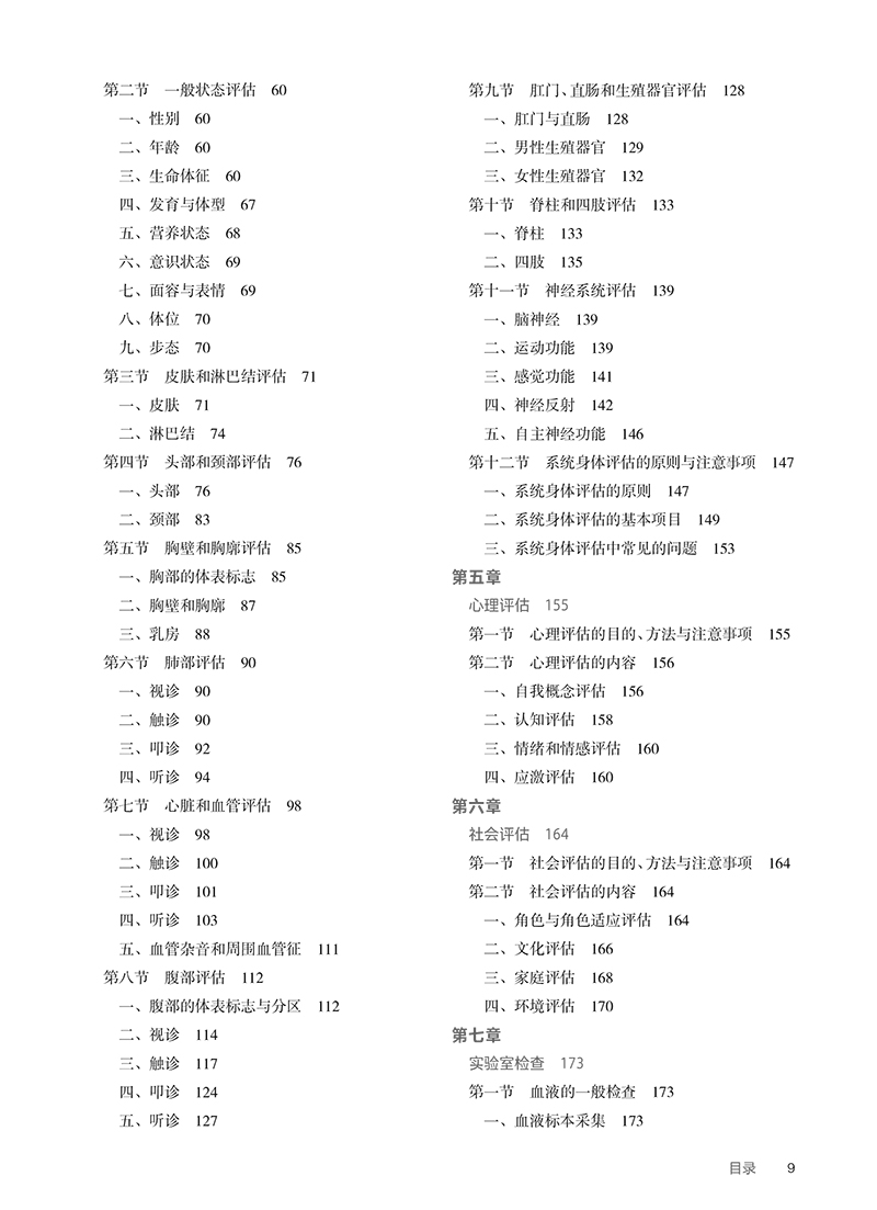 第5版共分11章,内容包括健康资料、健康史评估、常见症状评估、身体评估、心理评估、社会评估、诊断性检查(包括实验室检查、心电图检查和影像学检查)、护理诊断思维方法和健康评估记录。在本次修订过程中,每章节增加了部分数字资源,实现了“纸数融合”。对实验室检查的部分内容进行精简,并增加了对实验室检查结果评价的内容。其重点是:①健康评估方法和资料收集:树立“以人为本、以病人为中心”的护理理念,掌握有效的健康评估方法和健康资料内容,培养科学的思维方法,建立有效的护理诊断;②身体评估:以健康评估技能培养与提高为前提,培养学生整体的身体评估的观念与方法;③诊断性检查:要采用最有效、最可靠、最简便、更准确的检查方法,为临床提供高灵敏度、高特异性的检查项目和检查结果,及时满足临床诊断与治疗疾病和观察病情的需要。④坚持立德树人,践行社会主义核心价值观,全面融入思政元素,构建“知识、能力、素质”三位一体的教材内容体系。