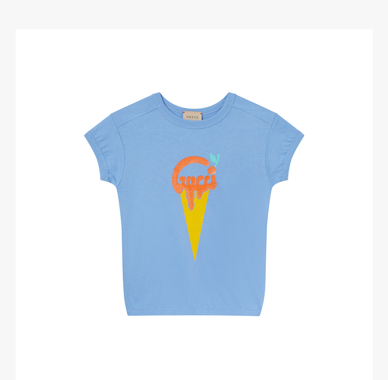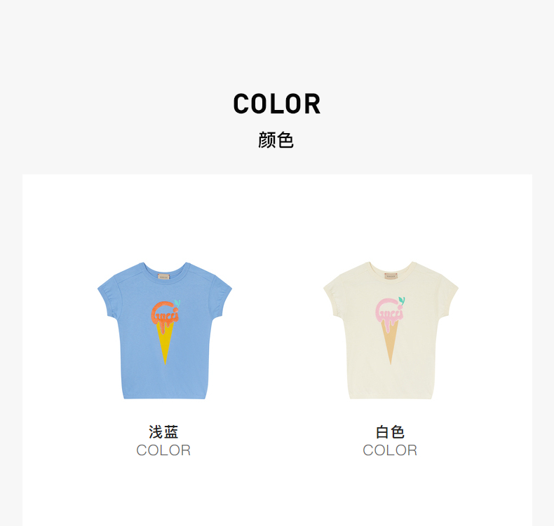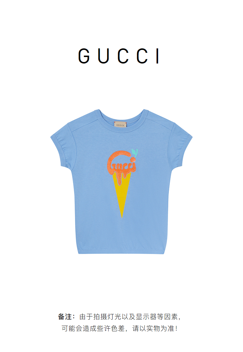 GUCCI 古驰 女童象牙白棉质GGlogo圆领短袖T恤 718008XJE39