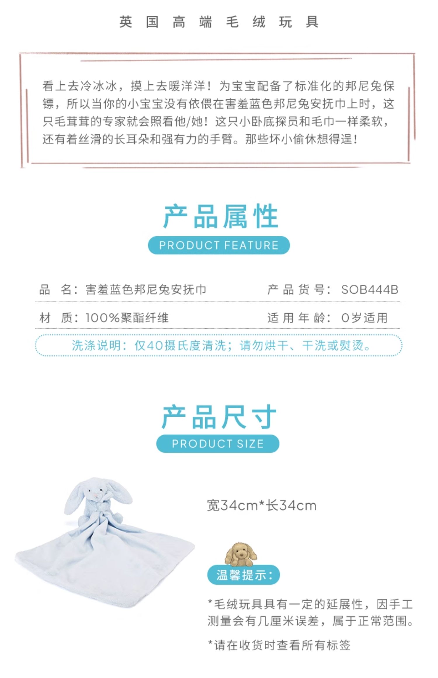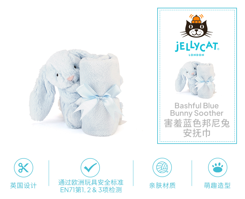 Jellycat 害羞蓝色邦尼兔安抚巾