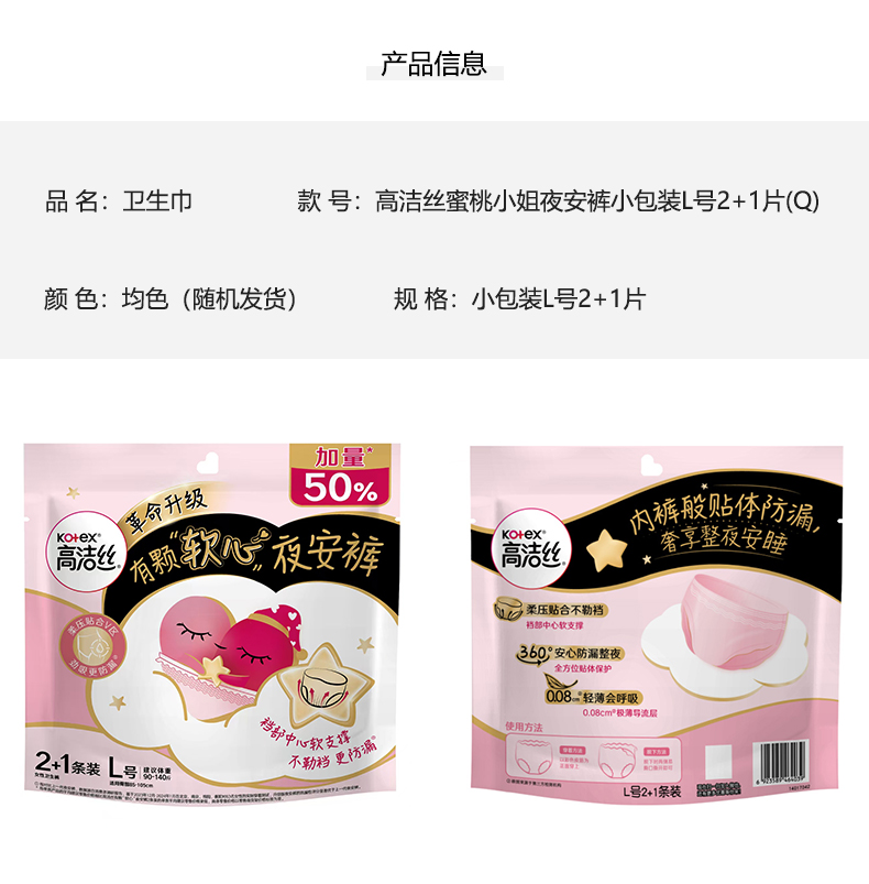 蜜境高洁丝蜜桃小姐夜安裤小包装L号2+1片卫生巾155511420