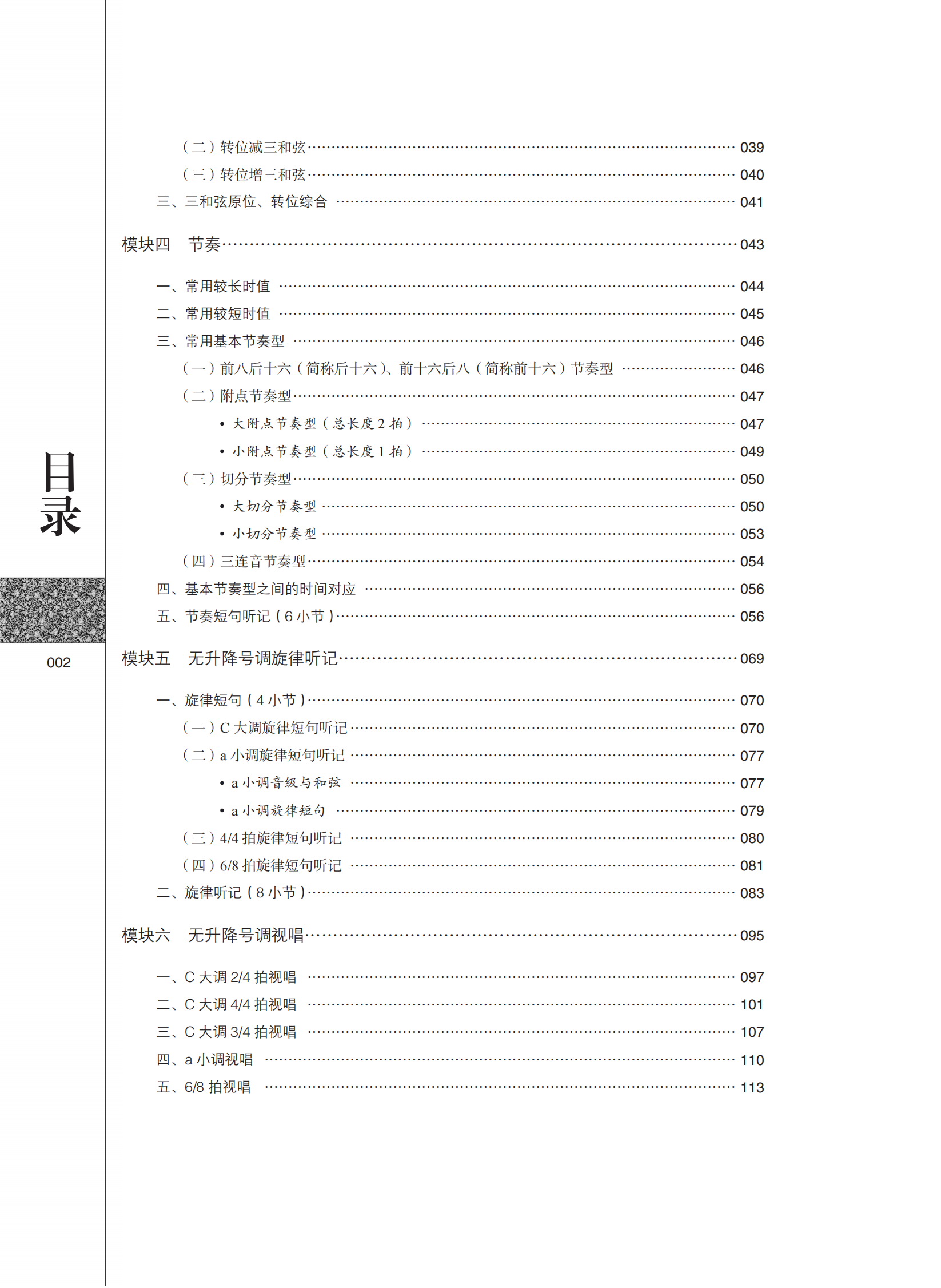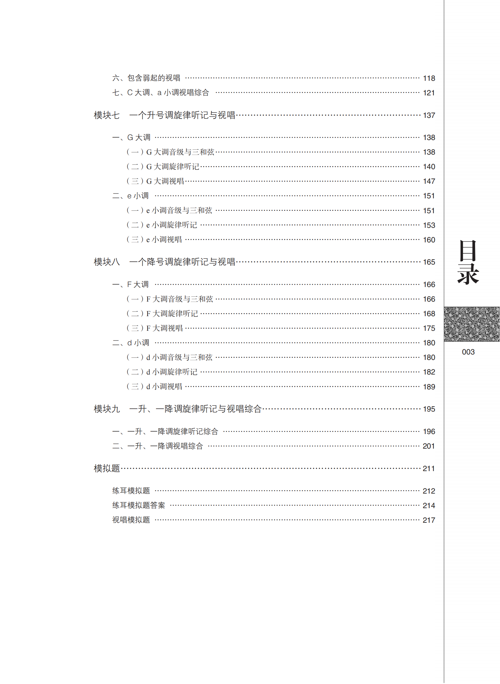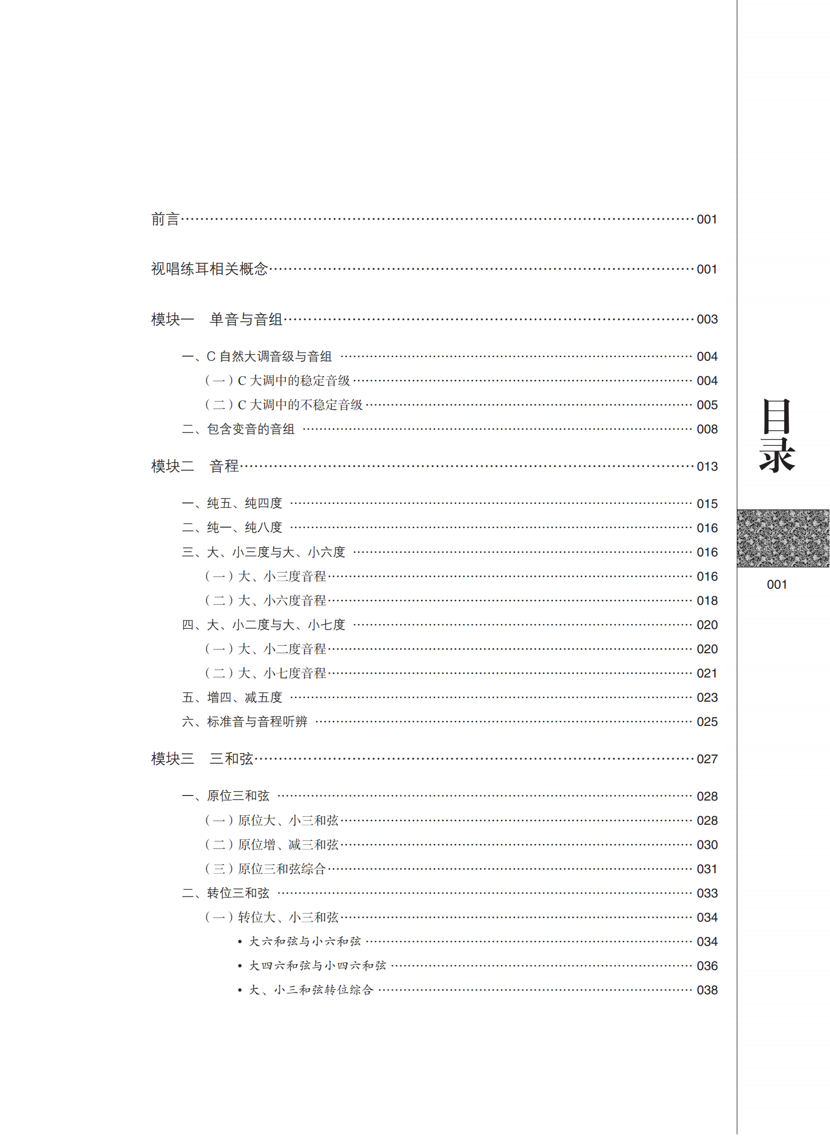 本教材以视唱练耳的分类训练为主体,共分九大模块,每个模块除了设计梯级训练内容外,均以文字形式提供了相应的教学和练习方法,对练习过程做了细致的拆分,并对一些练习误区做了分析与提示。听写材料及短小视唱曲,并尽可能地去兼顾技术训练与音乐性的统一。