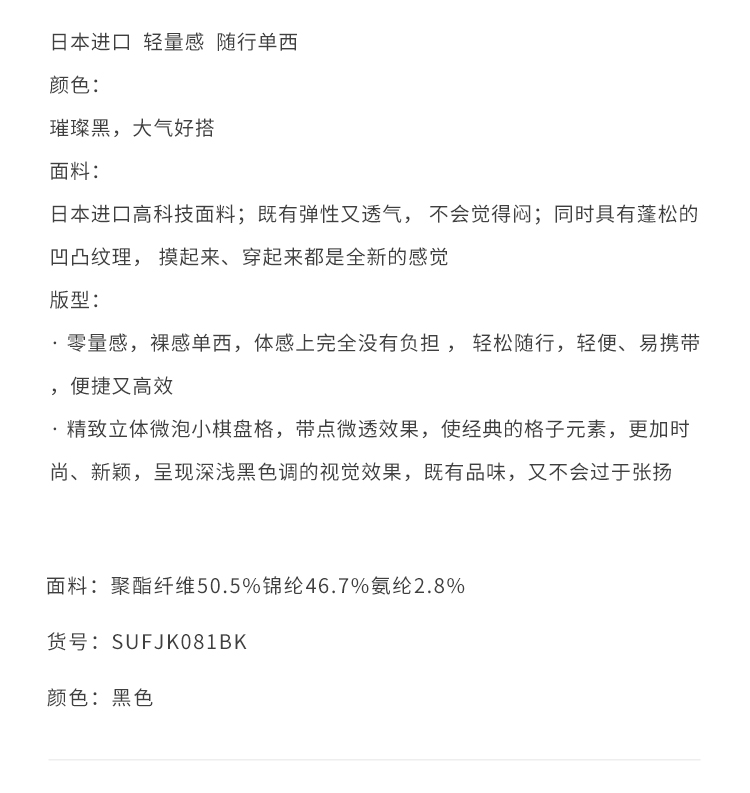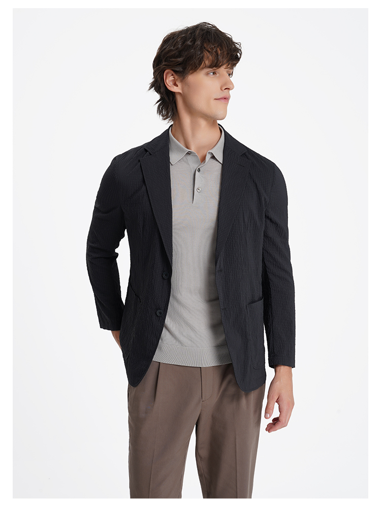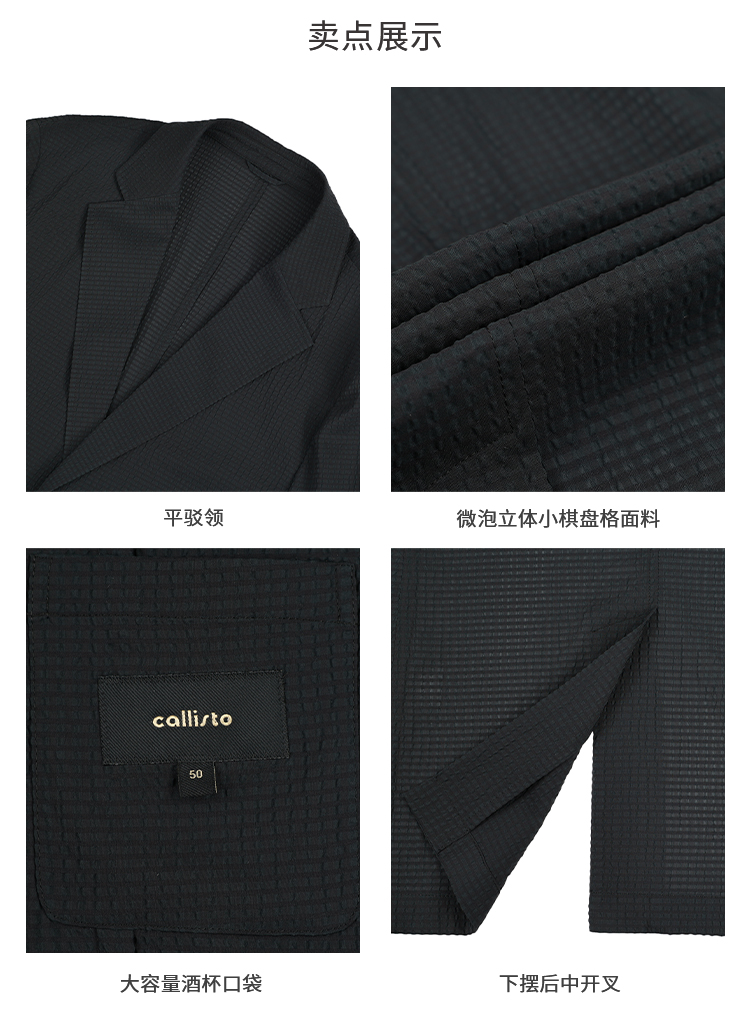 callisto璀璨黑立体微泡小棋盘格进口面料休闲西服