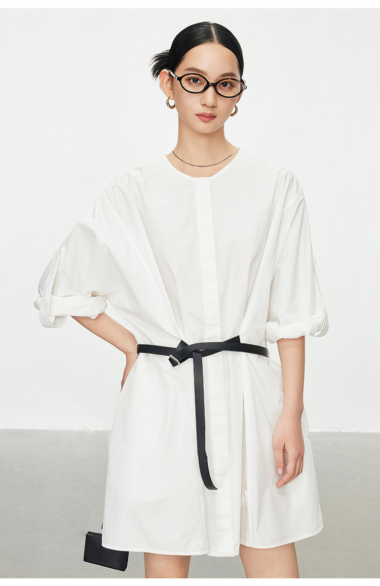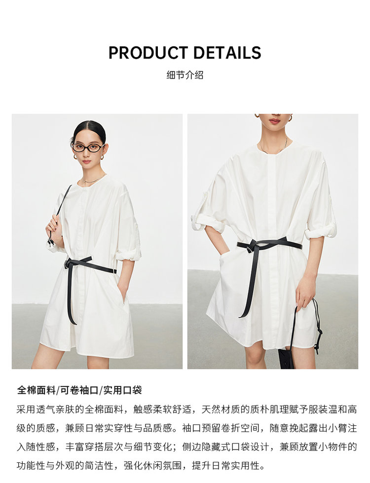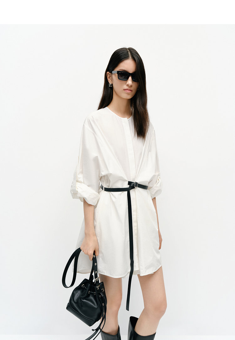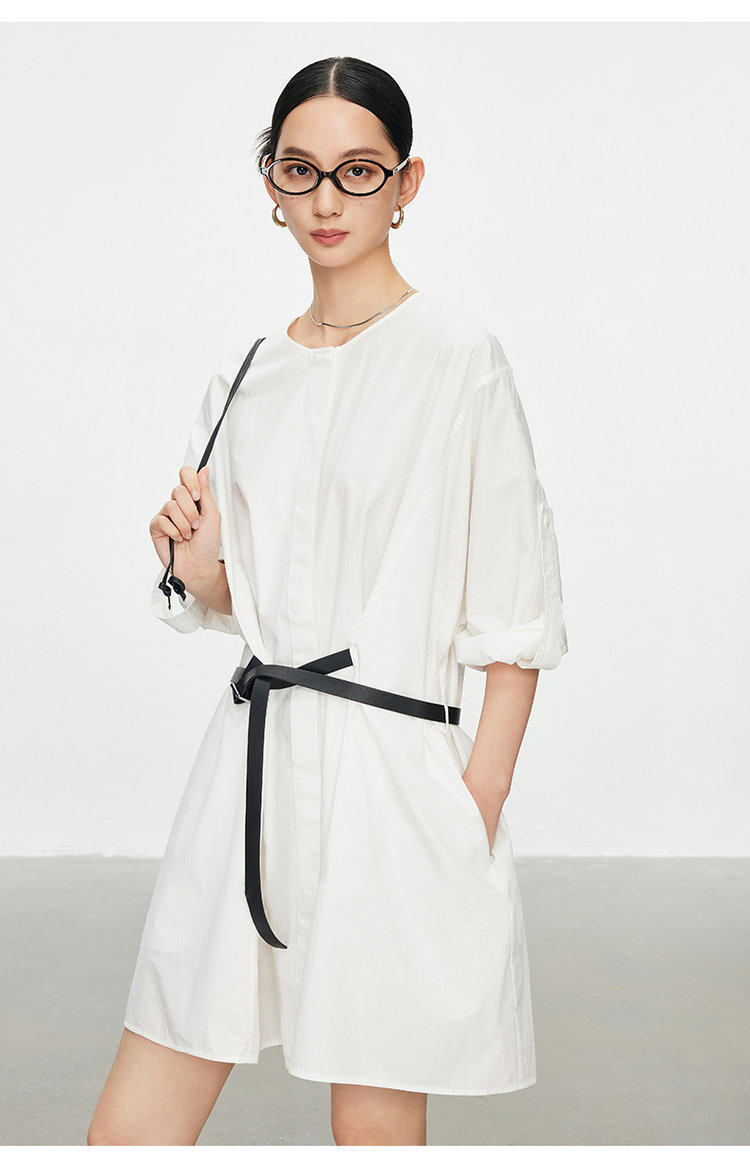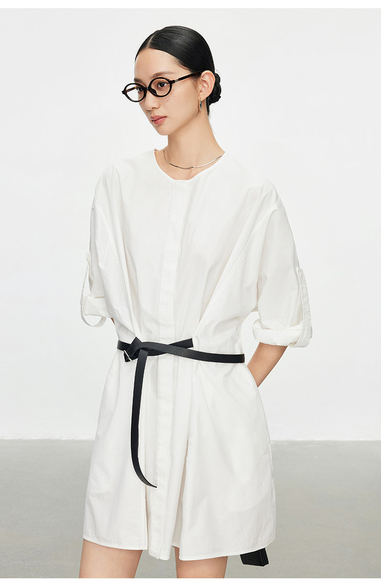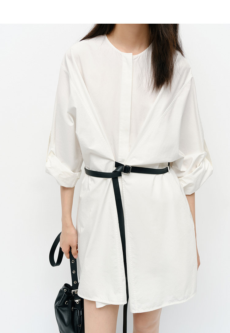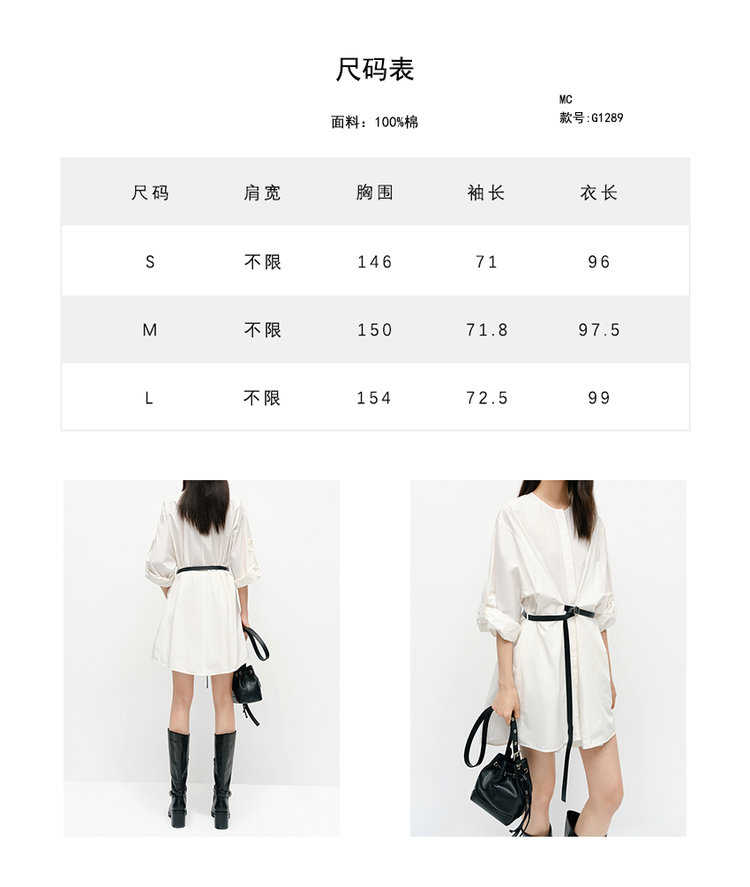 【高品质私服】【MC简白棉卷袖廓形腰带衬衫连衣裙】兼顾日常实穿性与品质感G1289-CC【无标出货 介意慎拍】