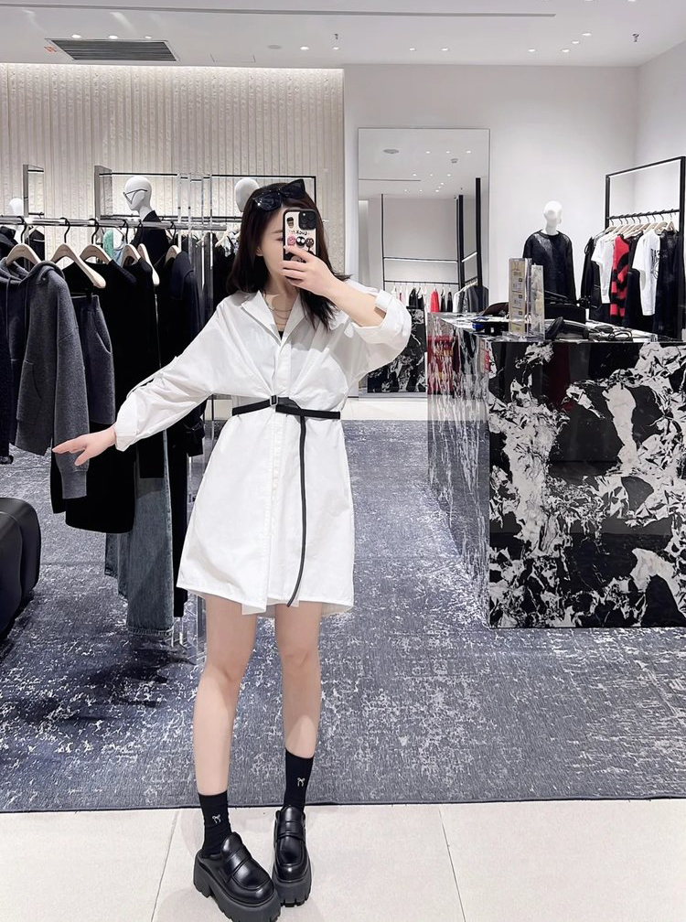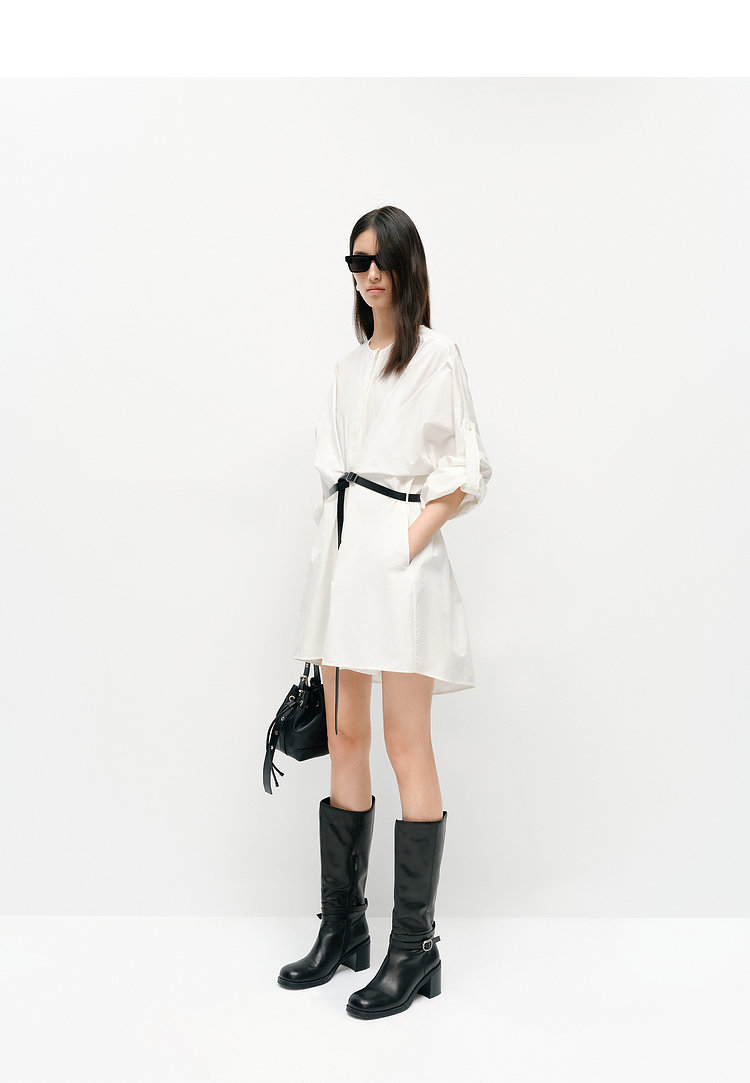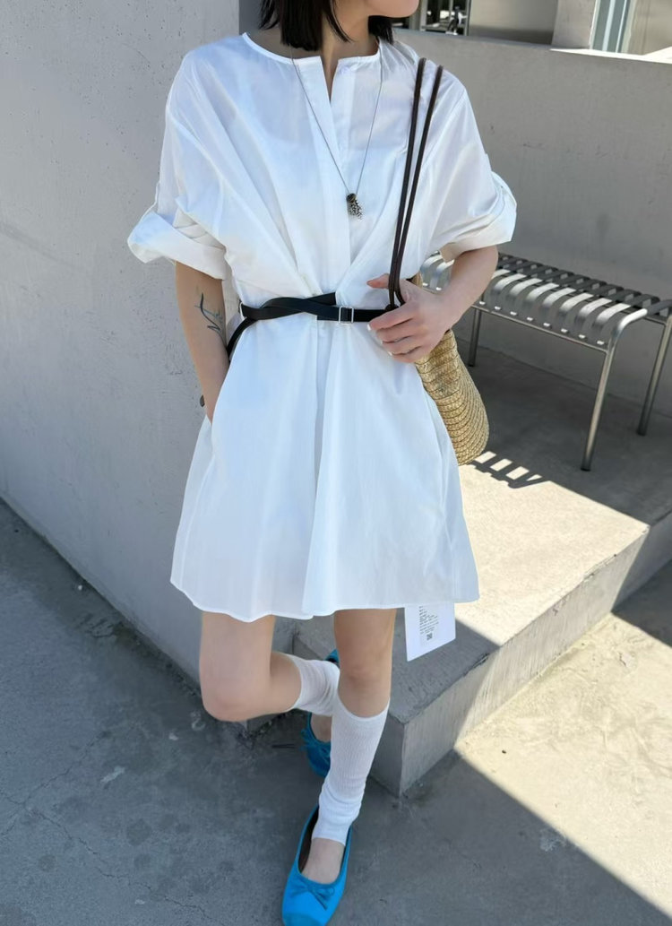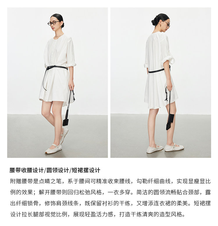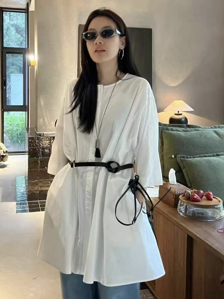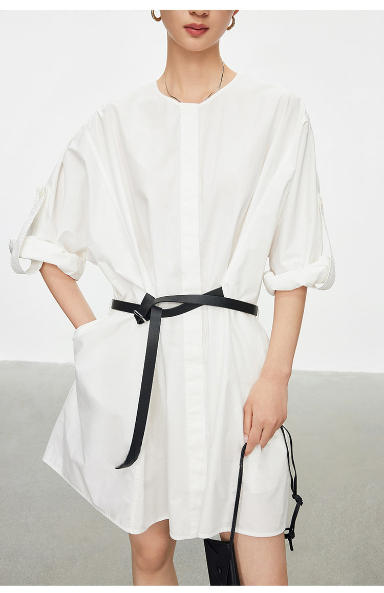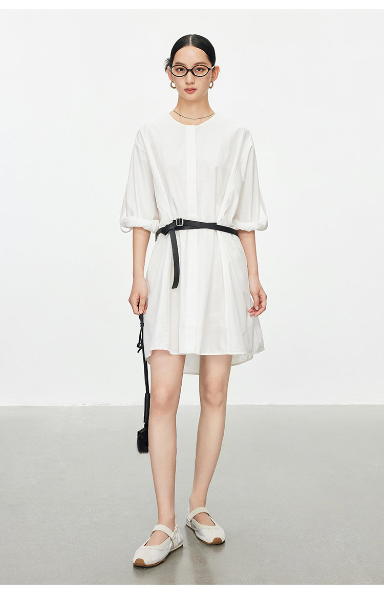 【高品质私服】【MC简白棉卷袖廓形腰带衬衫连衣裙】兼顾日常实穿性与品质感G1289-CC【无标出货 介意慎拍】