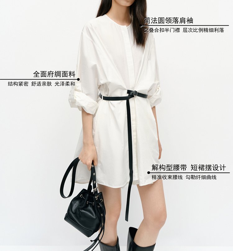 修饰肩颈线条,既保留衬衫的干练,又增添连衣裙的柔美。