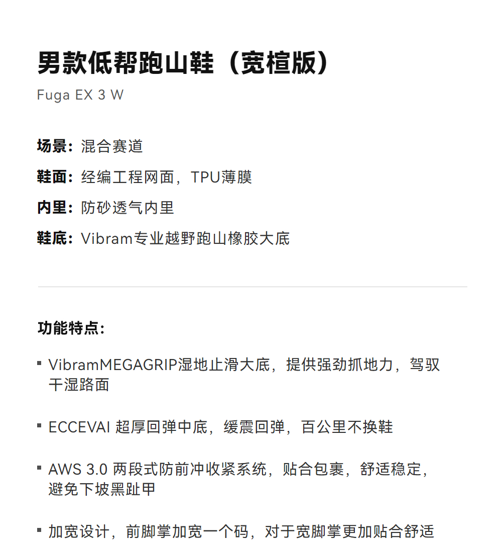 KAILAS凯乐石 男款低帮跑山鞋(Fuga EX 3 W ) KS2613139