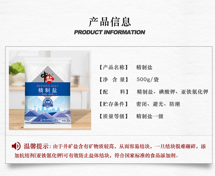 中盐 盐 加碘精制盐 食盐 500g 中盐出品