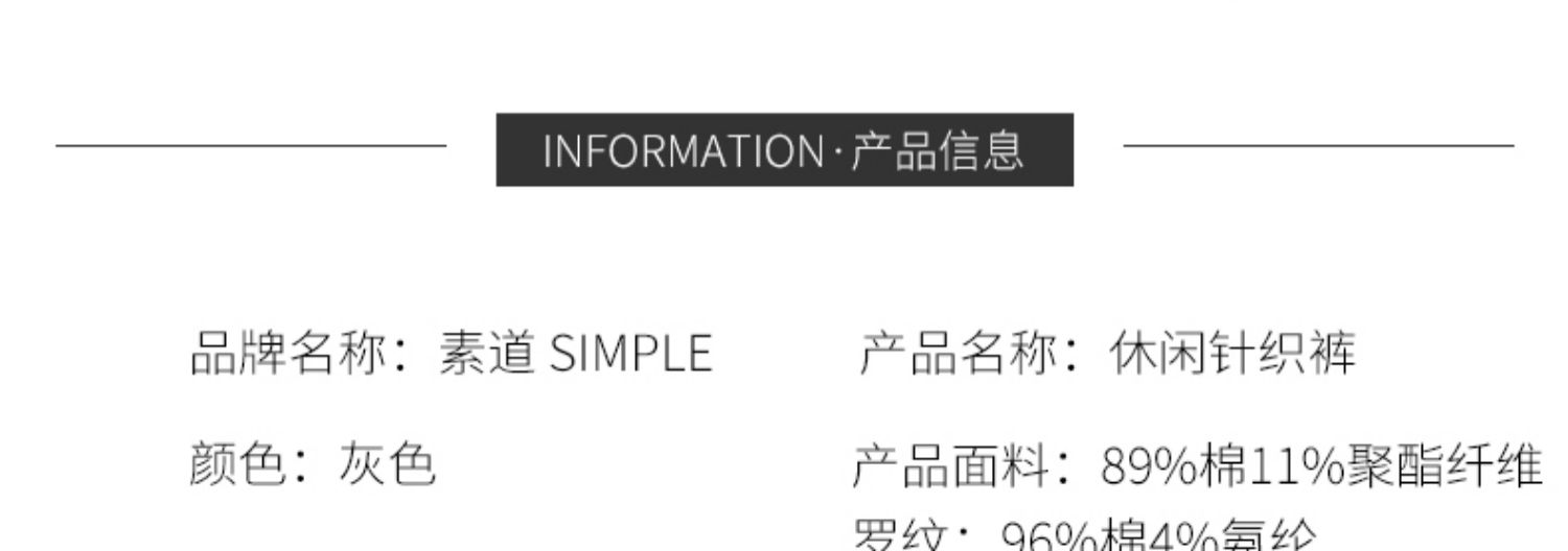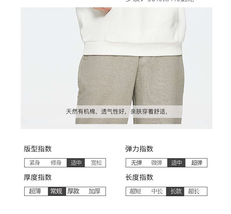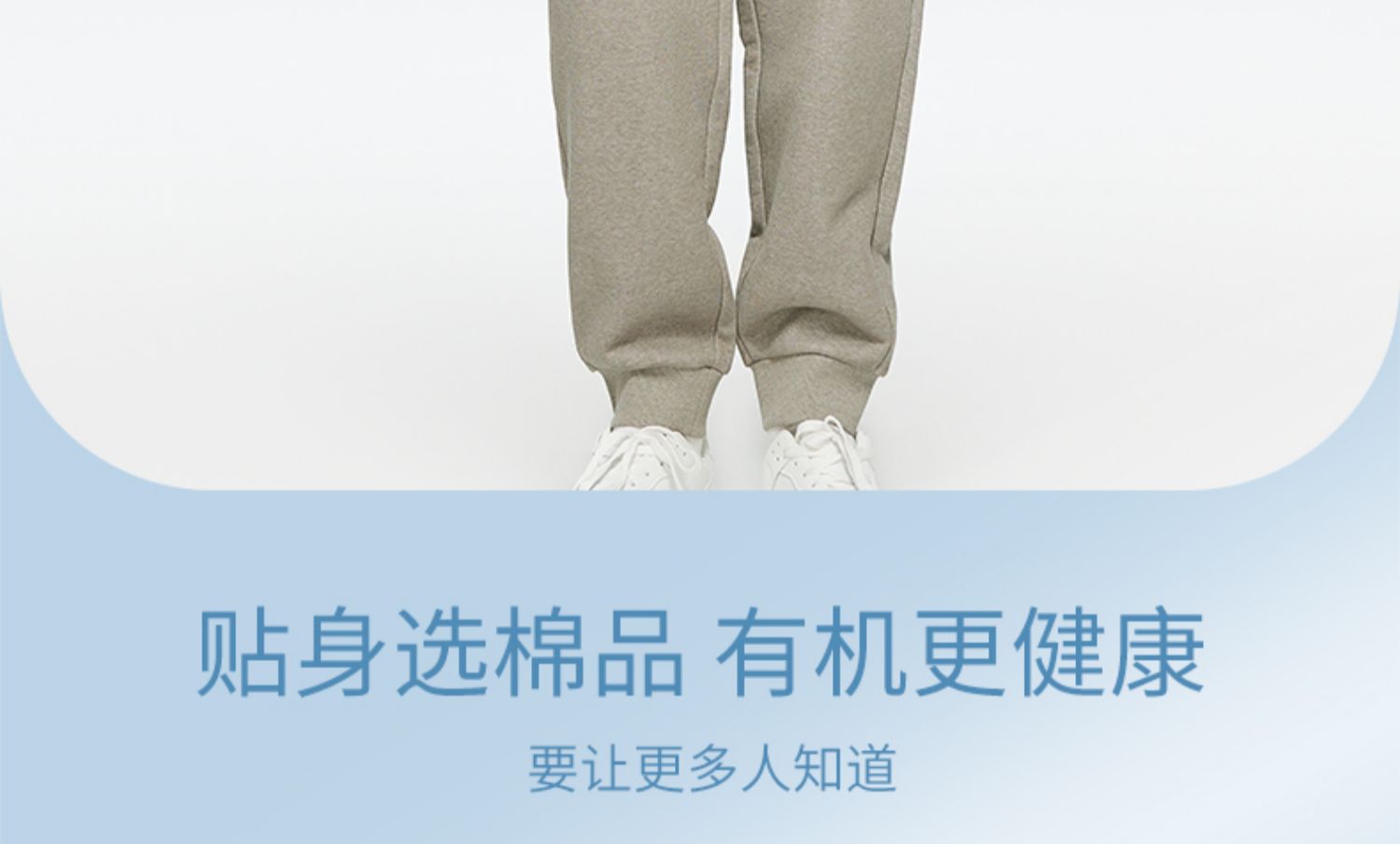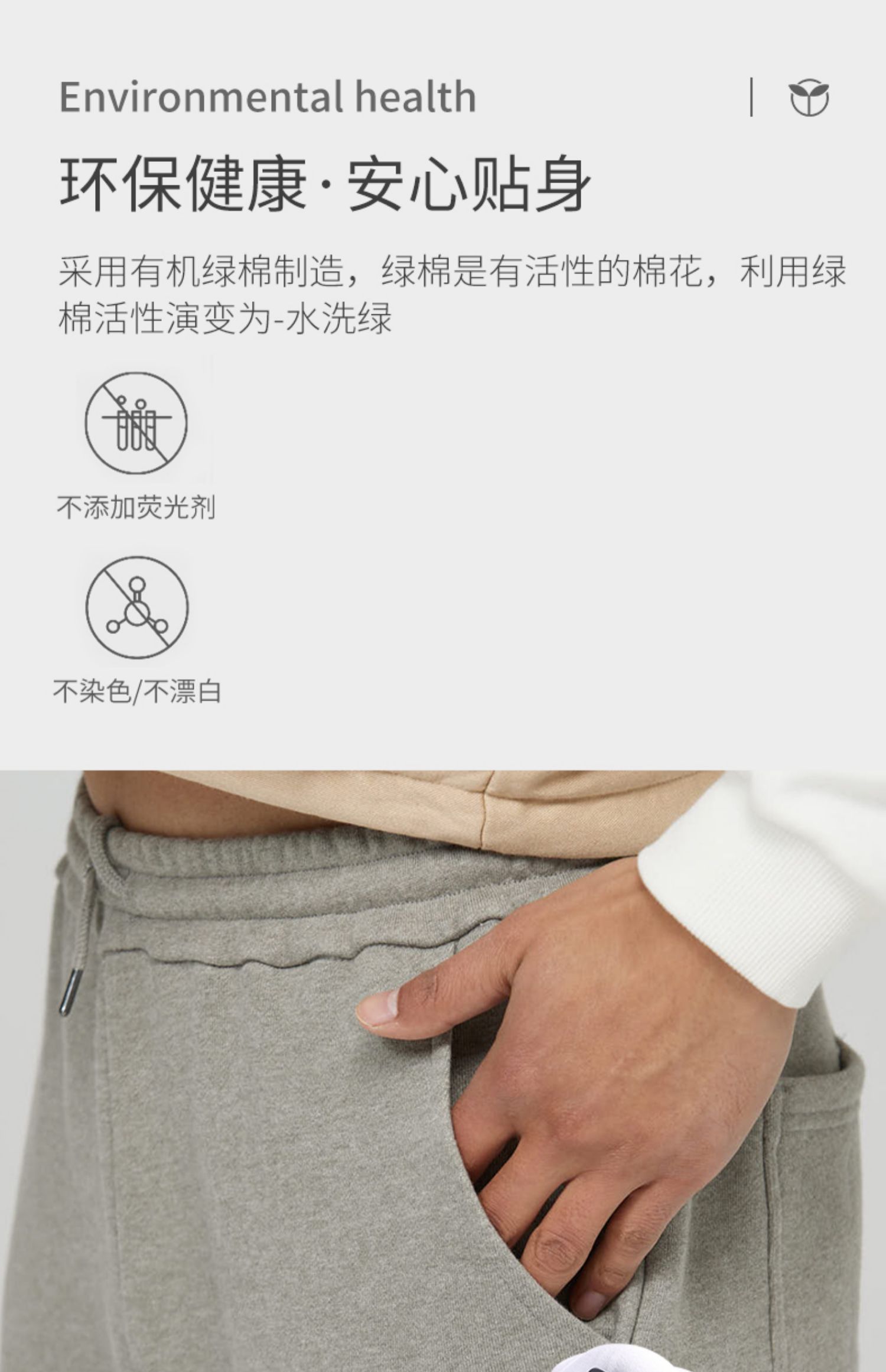 素道有机彩棉情侣针织裤 灰色结绳运动裤 常规厚度束口长款卫裤