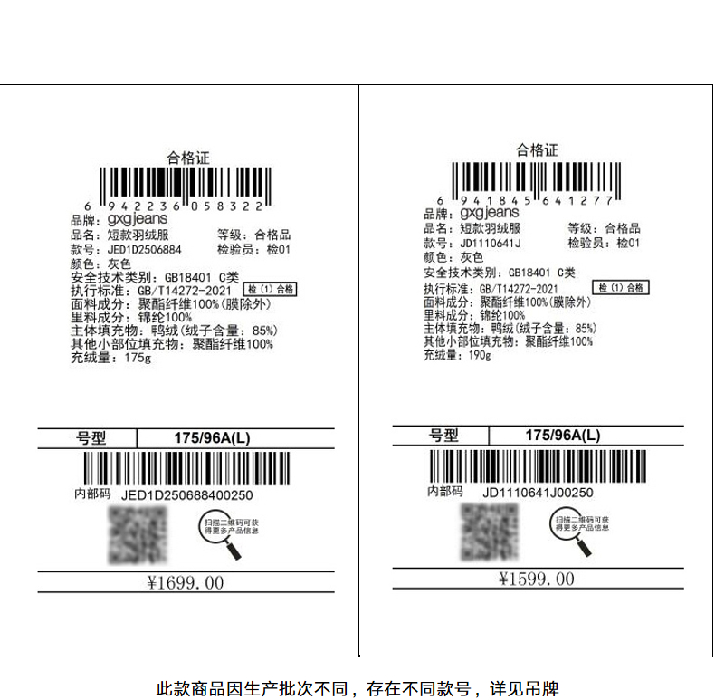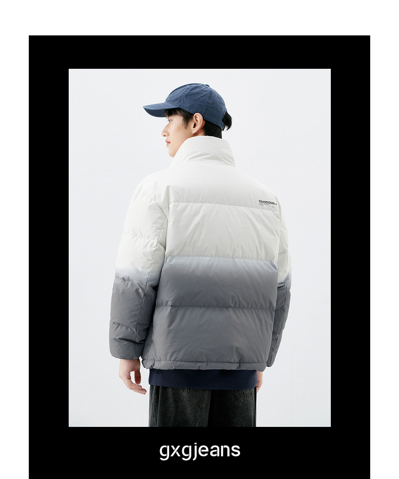 gxgjeans男装冬季羽绒服渐变晕染短款羽绒服男
