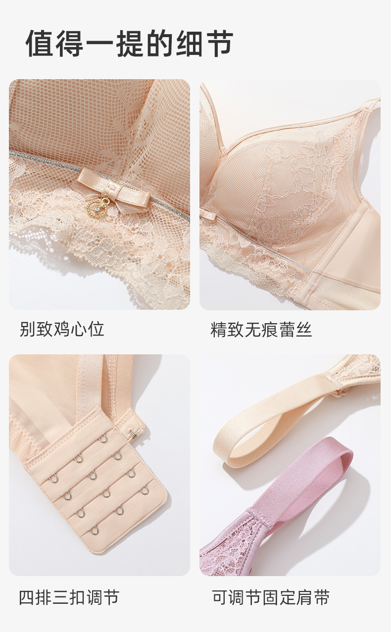 【商场同款】熳洁儿 柔心杯小胸聚拢无钢圈内衣性感蕾丝收副乳23201506