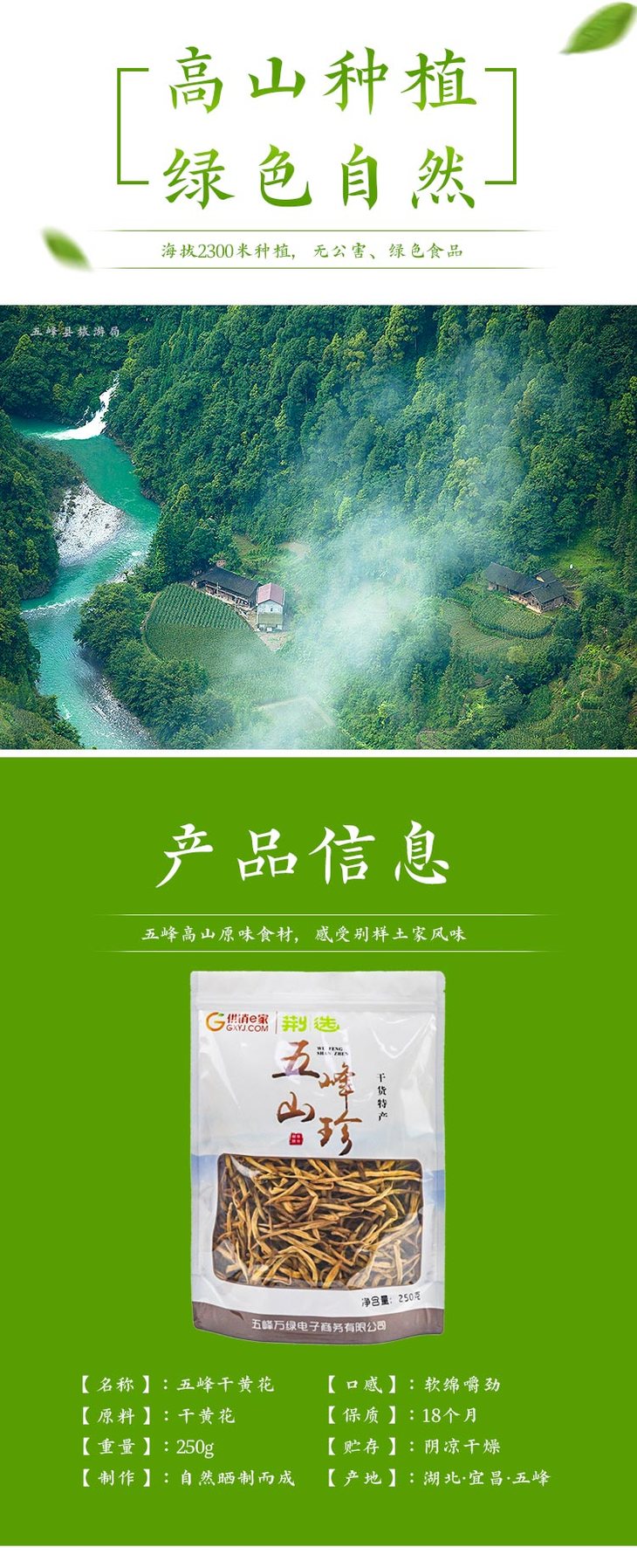 荆选 五峰万绿篮高山黄花菜250g/袋 宜昌
