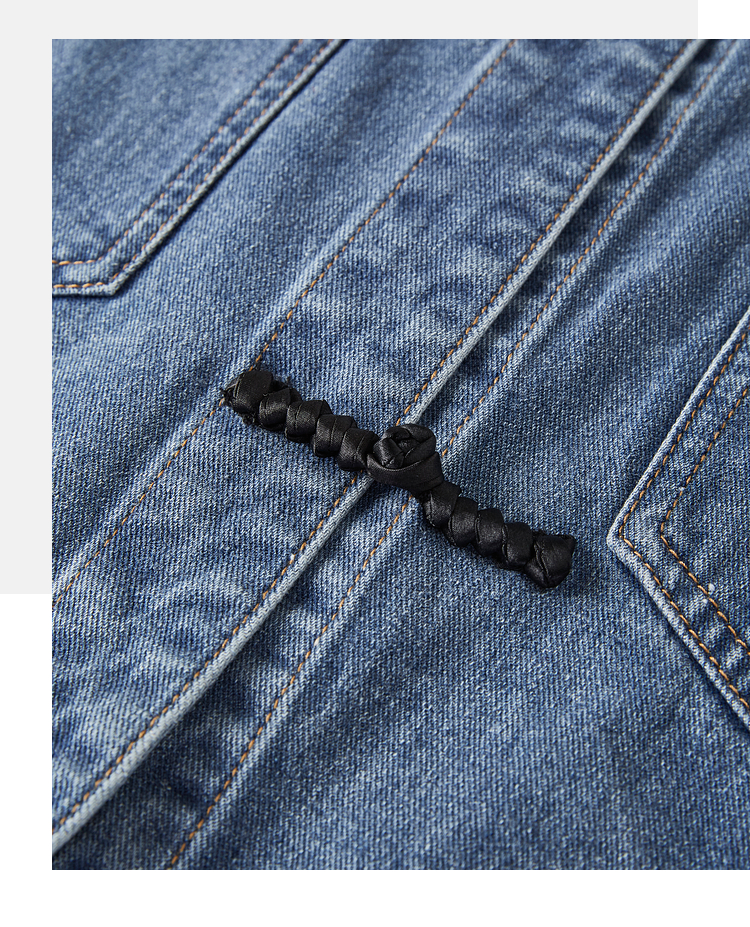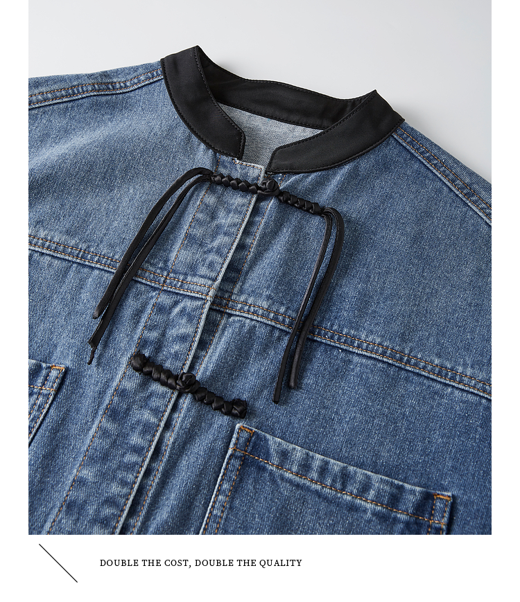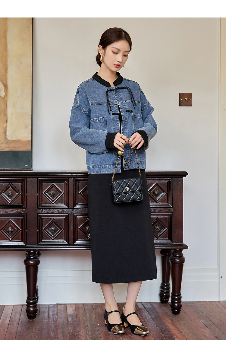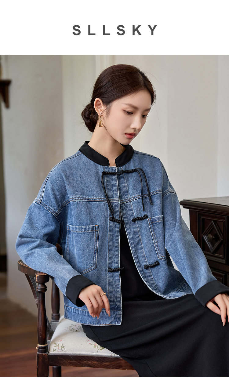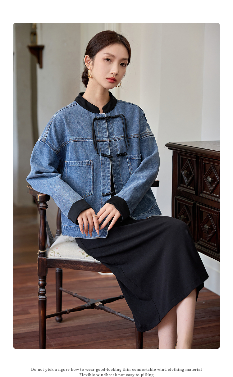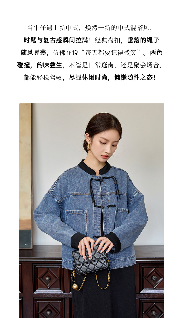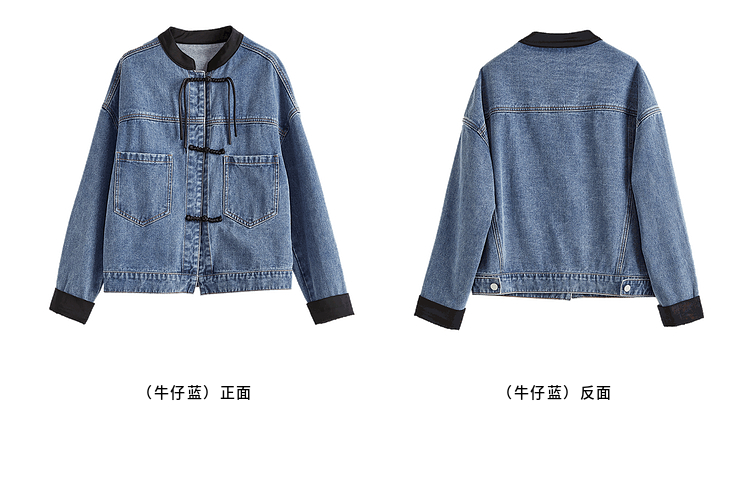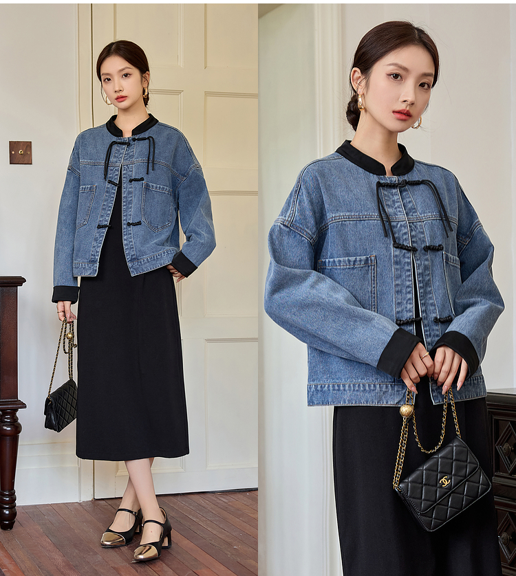 【年货节】熙世界新中式牛仔外套短款2025秋新款宽松立领盘扣国风夹克上衣