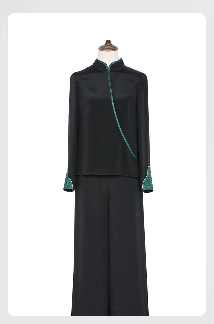 吉祥衣家新中式国风夏新款高端气质显瘦修身女装下衣翠萝西风裤子