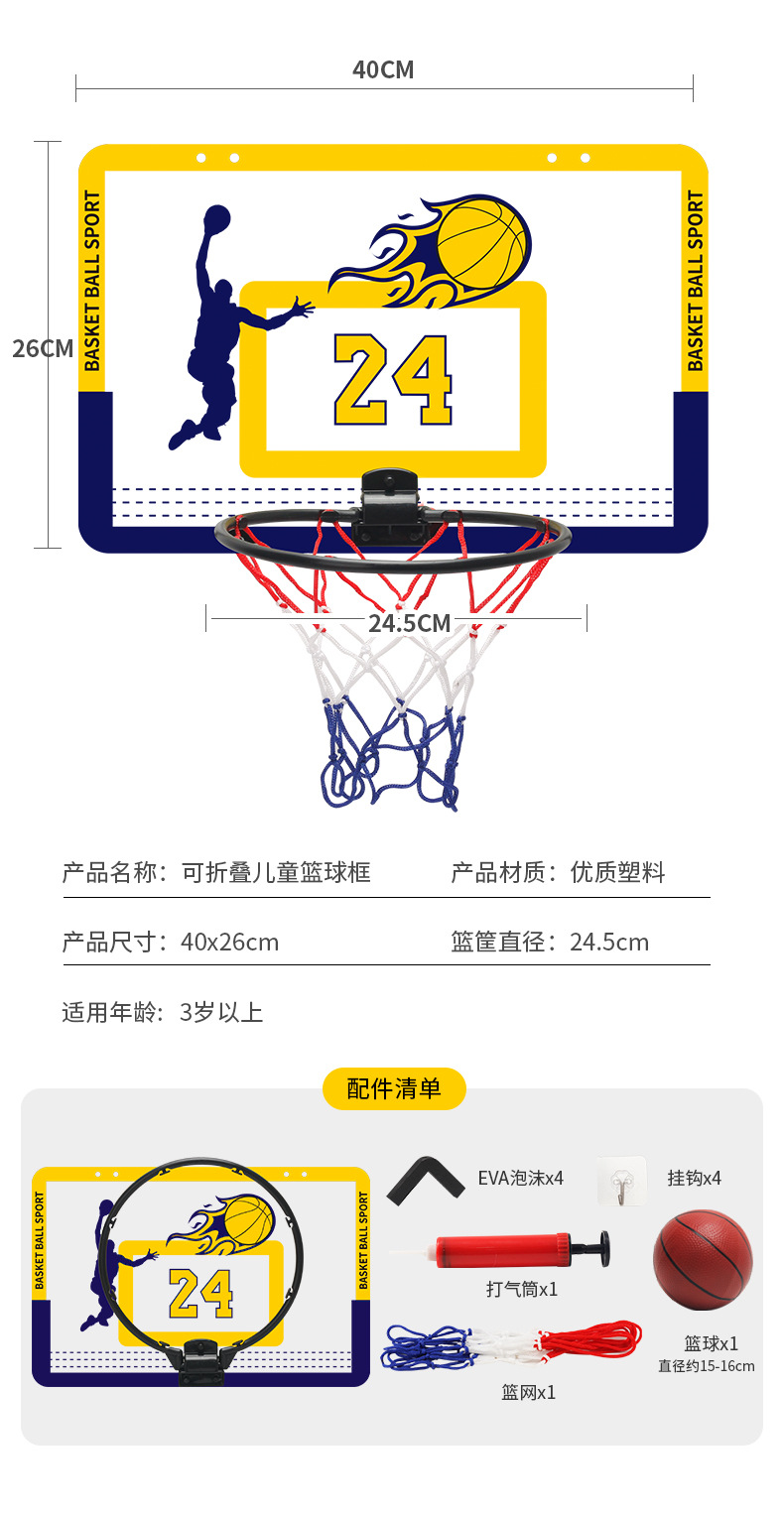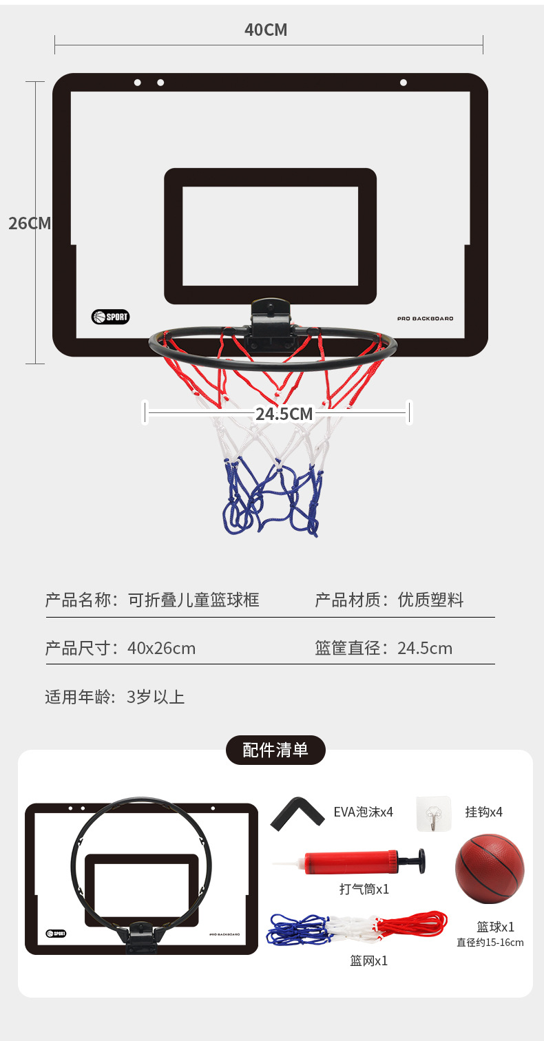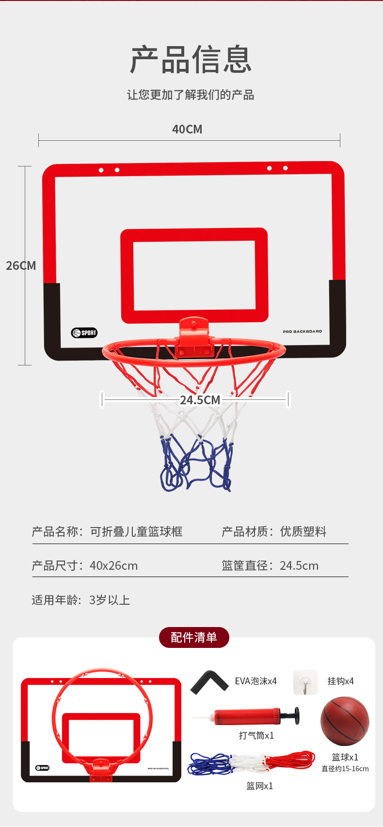 免打孔【挂墙篮球板】儿童篮球架 透明篮球板 室内投篮 折叠易收纳