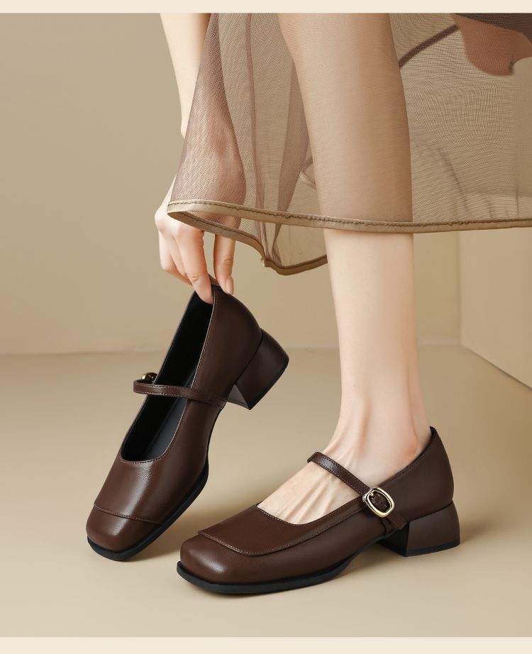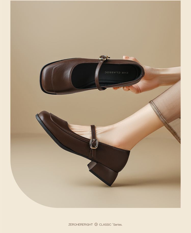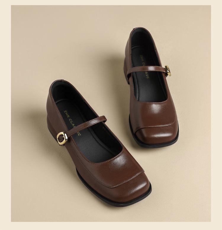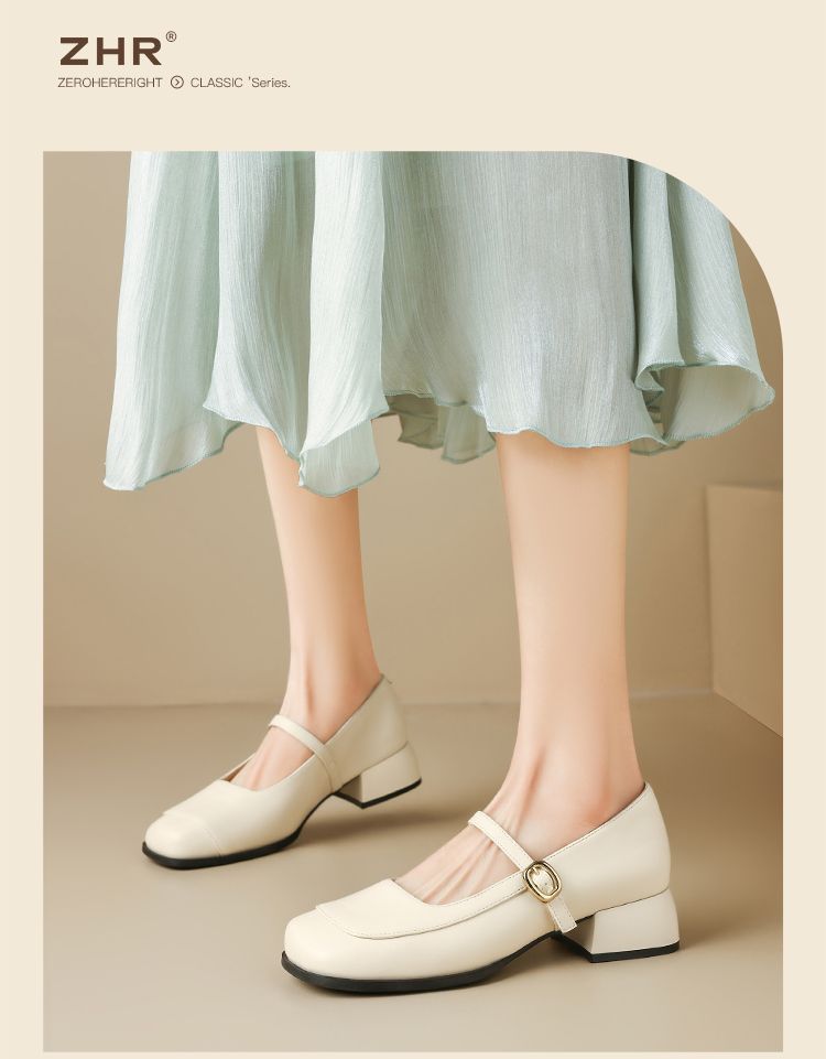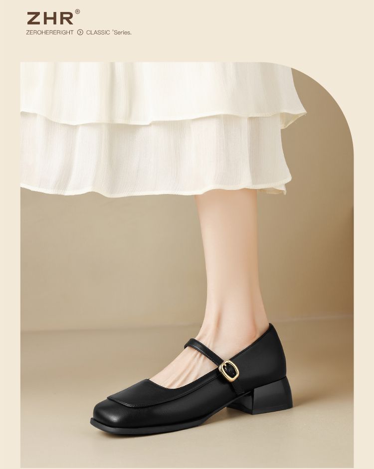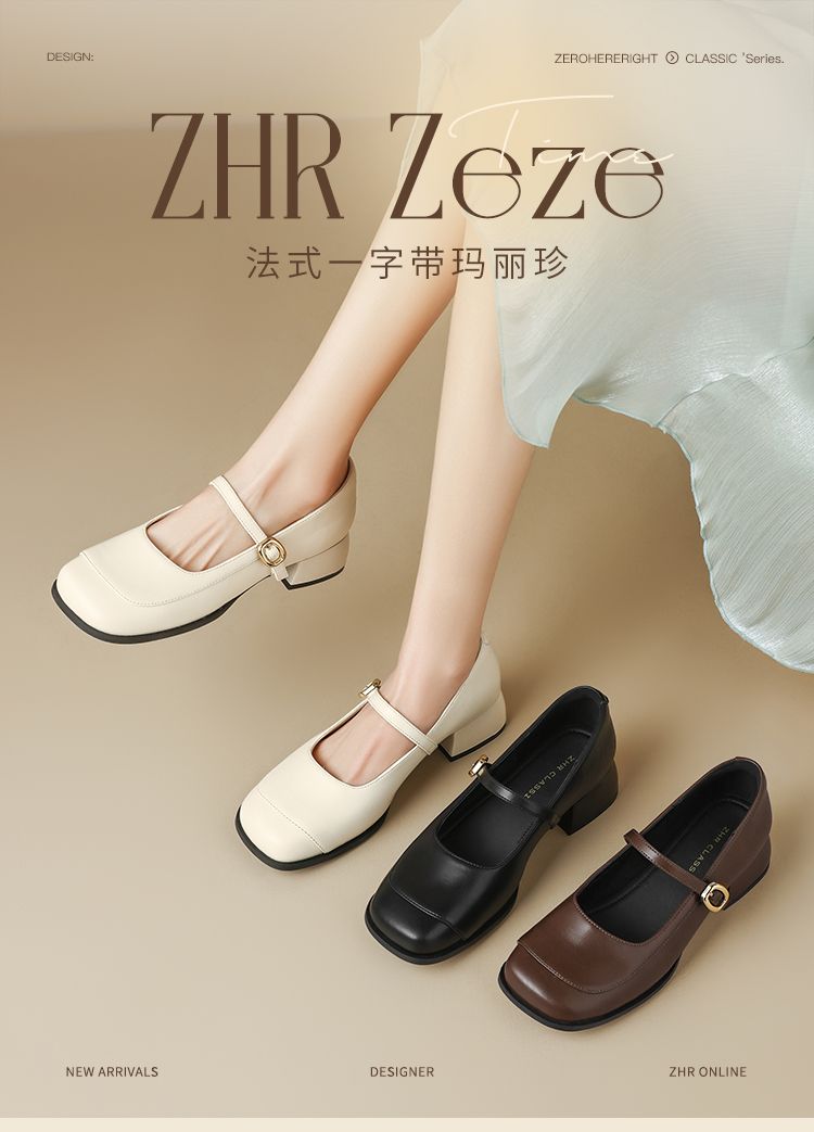 ZHR则则方头玛丽珍鞋女2025新款法式温柔单鞋复古小皮鞋浅口女鞋