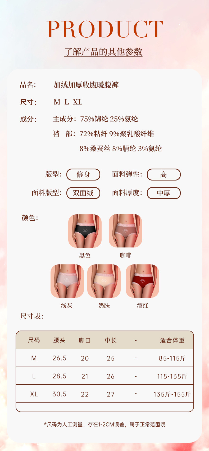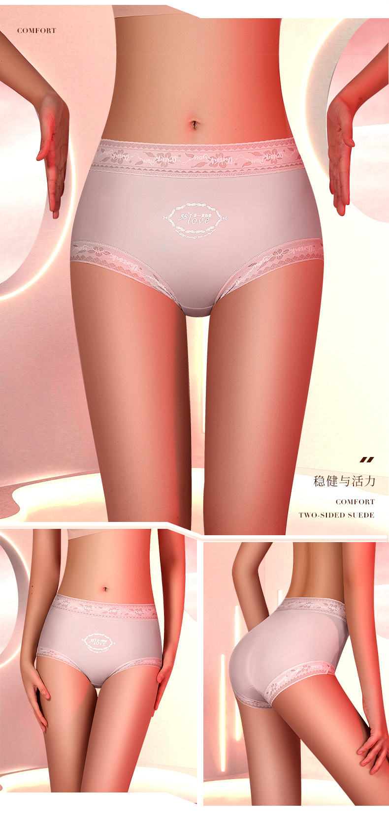 7A双面磨毛【中腰无痕女士内裤】加绒加厚保暖 桑蚕丝抑jun裆三角短裤头