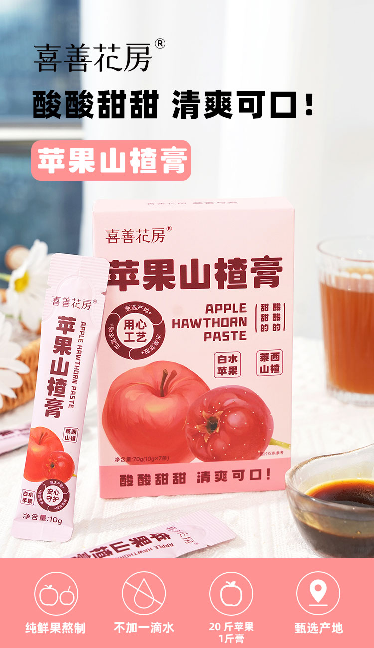 【鱼圈双旦福利1月19日发货 】喜善花房 苹果山楂膏 儿童可喝(10g*7条)/盒