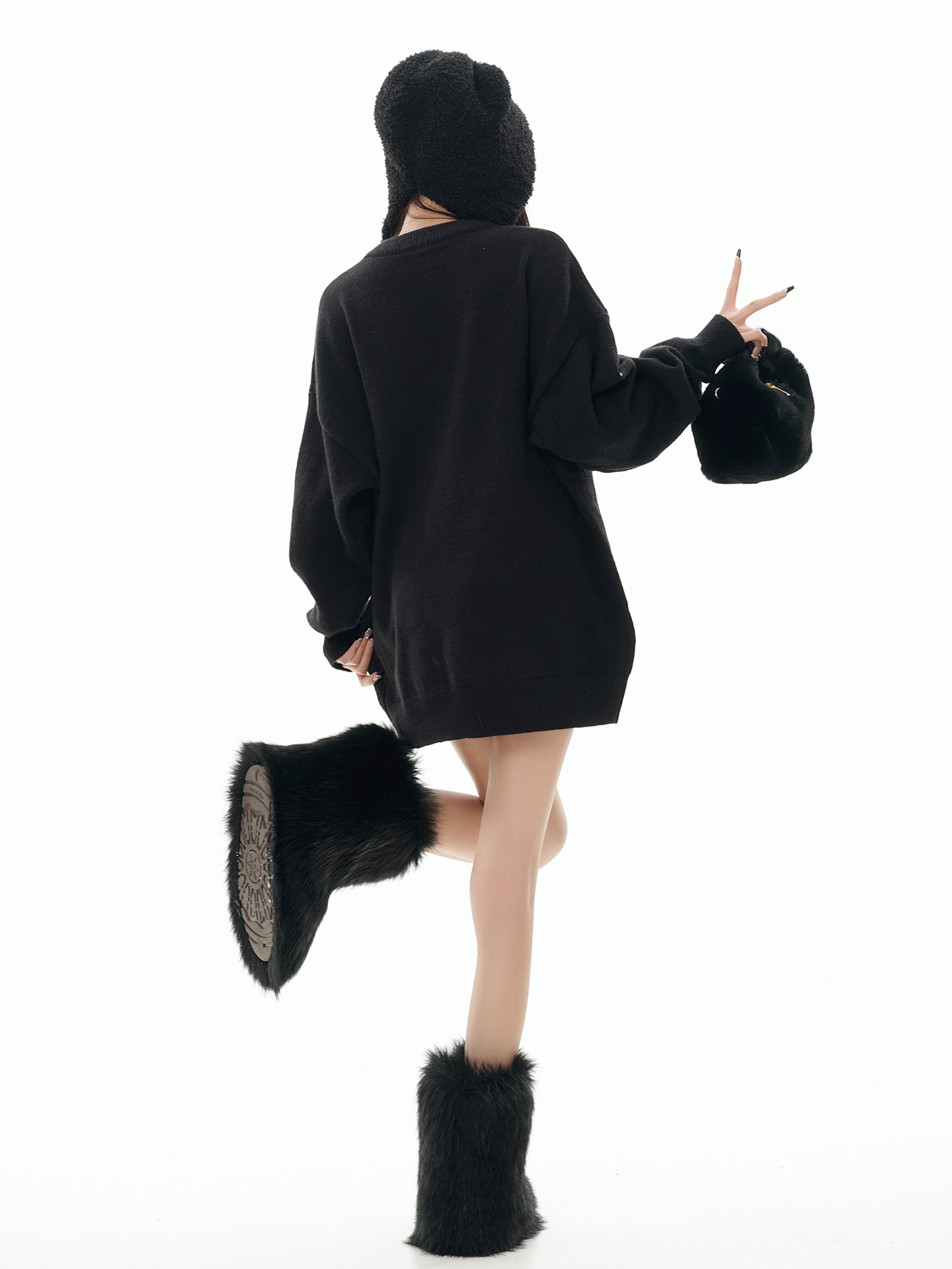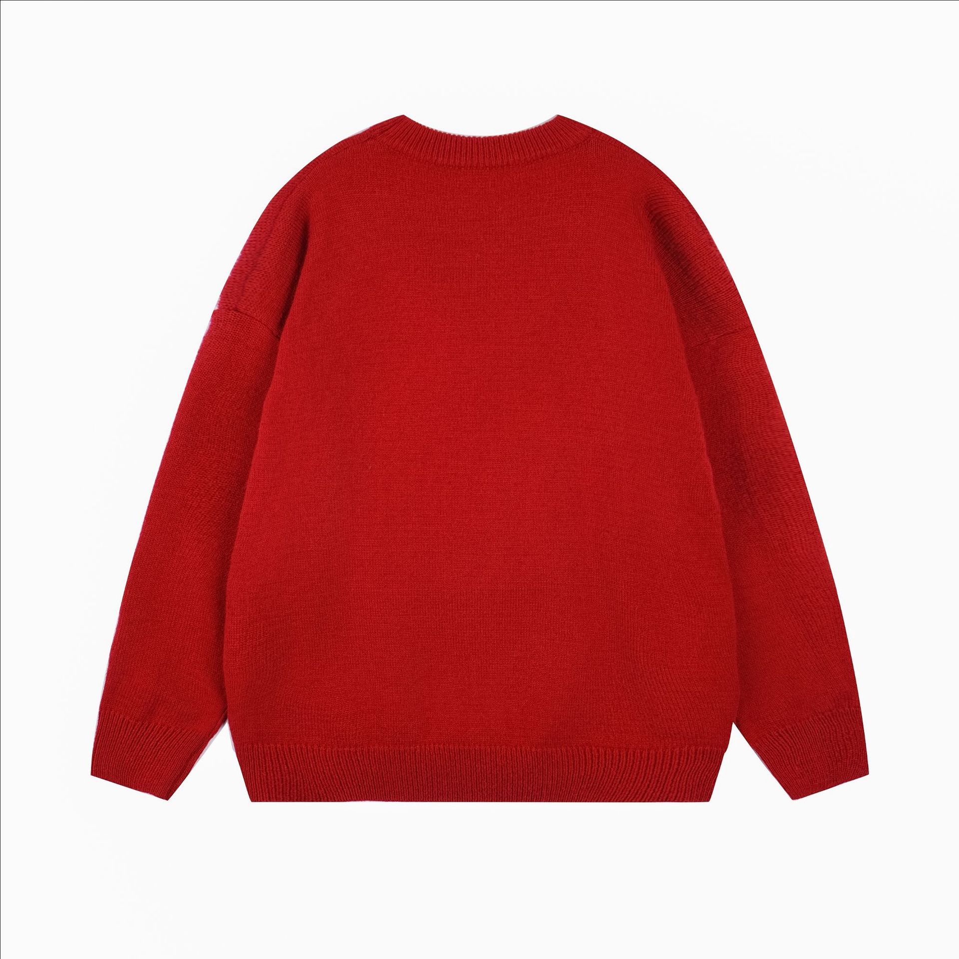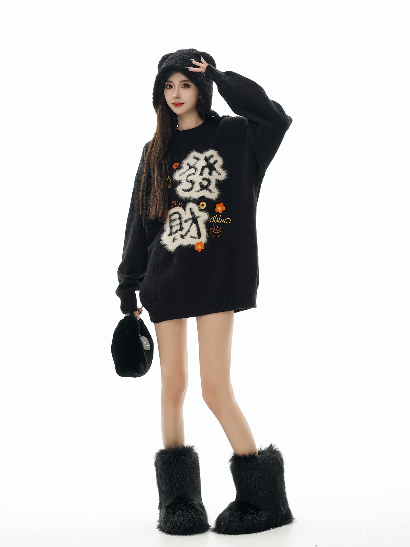 【服饰专场】秋冬新款实拍宽松美式国潮发财提花圆领针织毛衣
