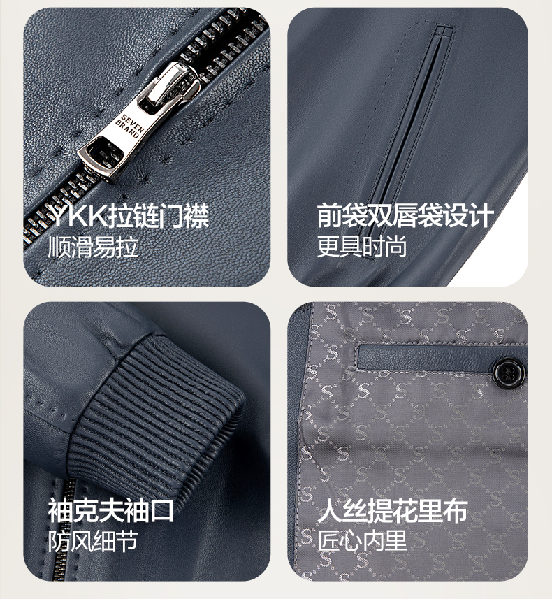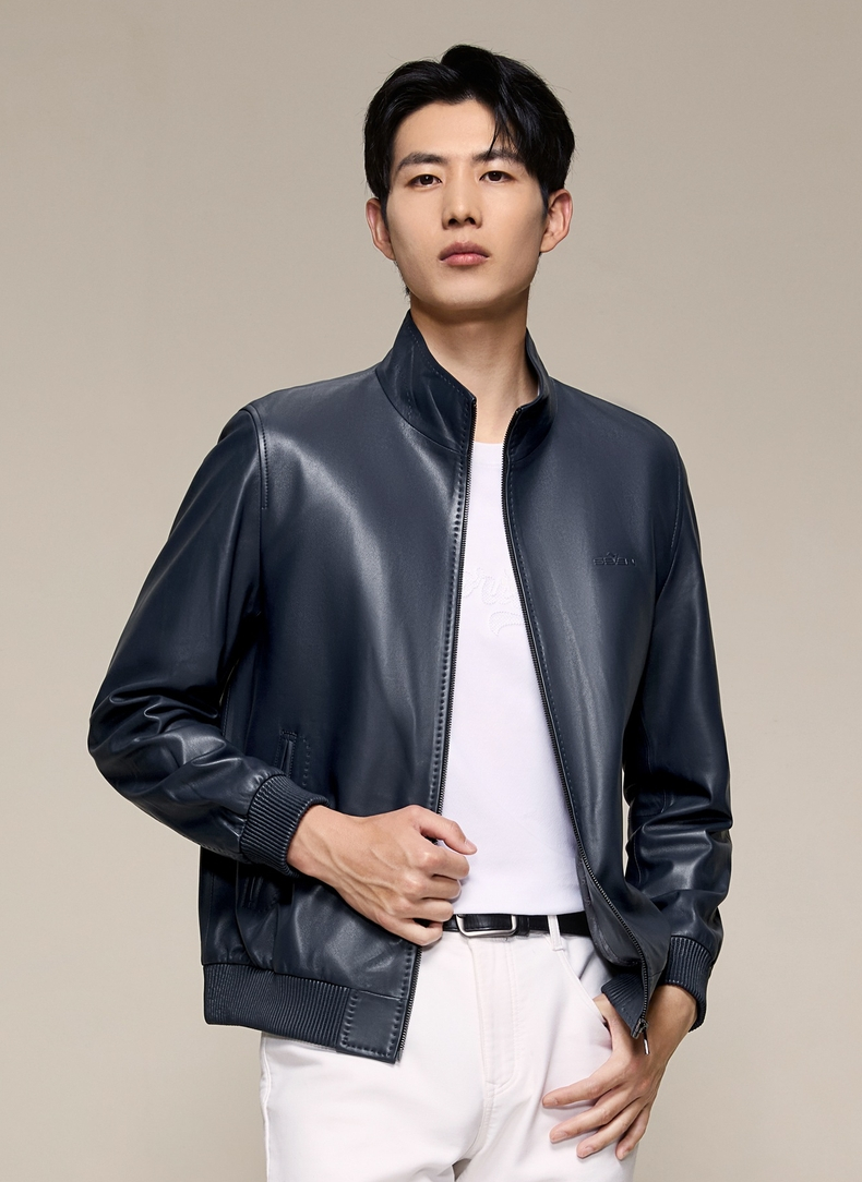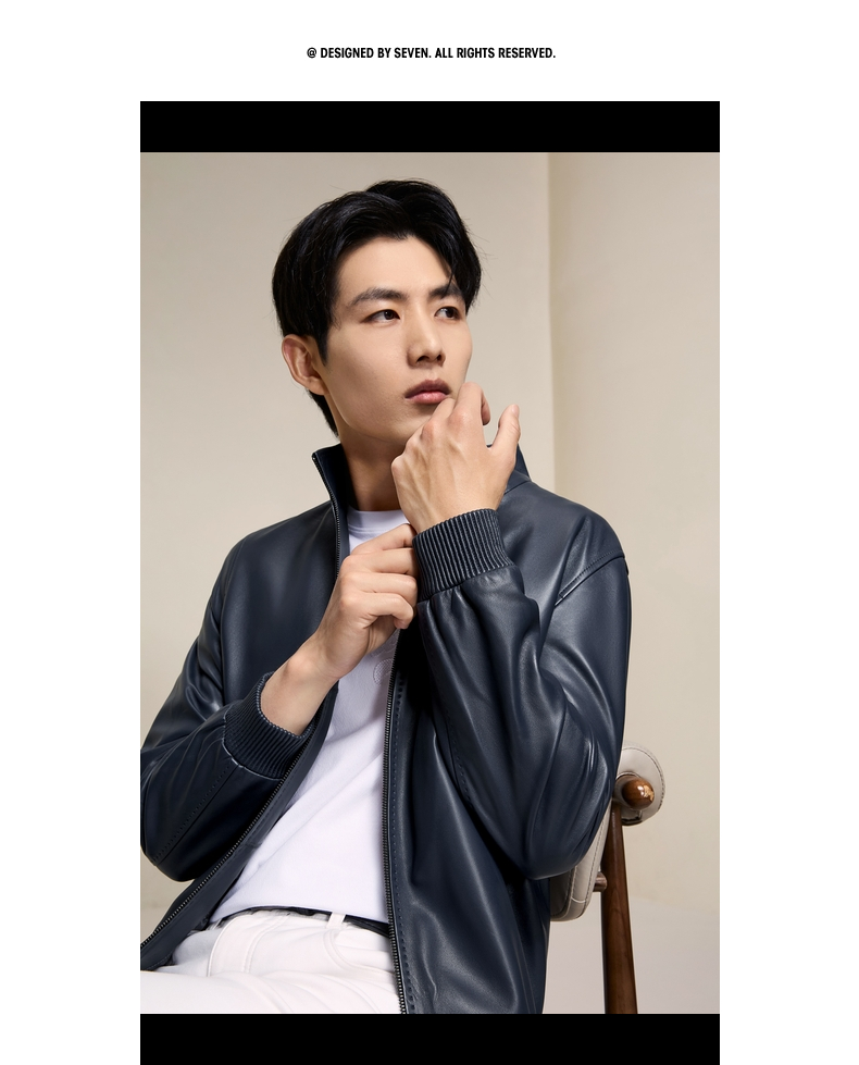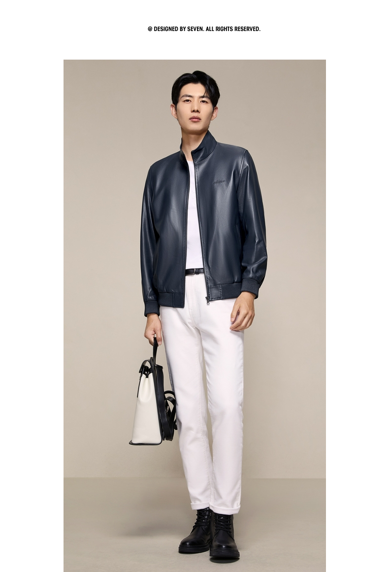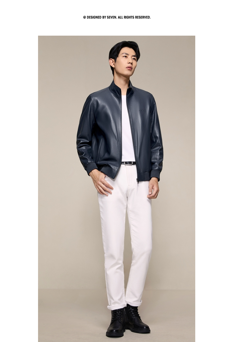 【明星同款】柒牌男装绵羊皮真皮皮衣2025秋季新品立领皮夹克潮流工装外套129J70470