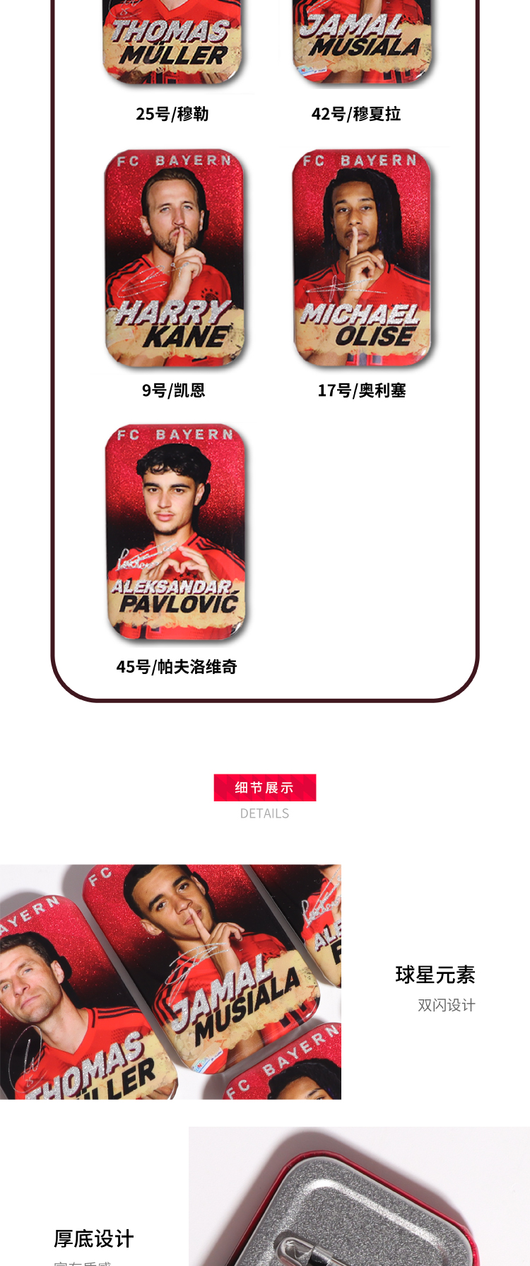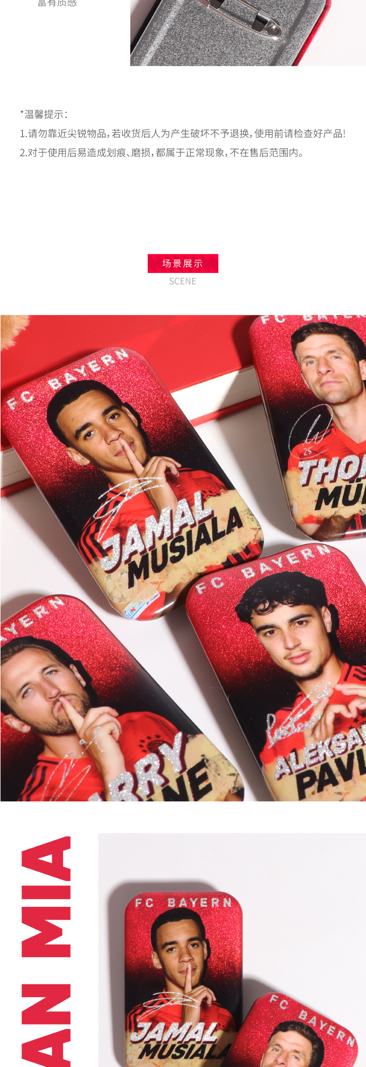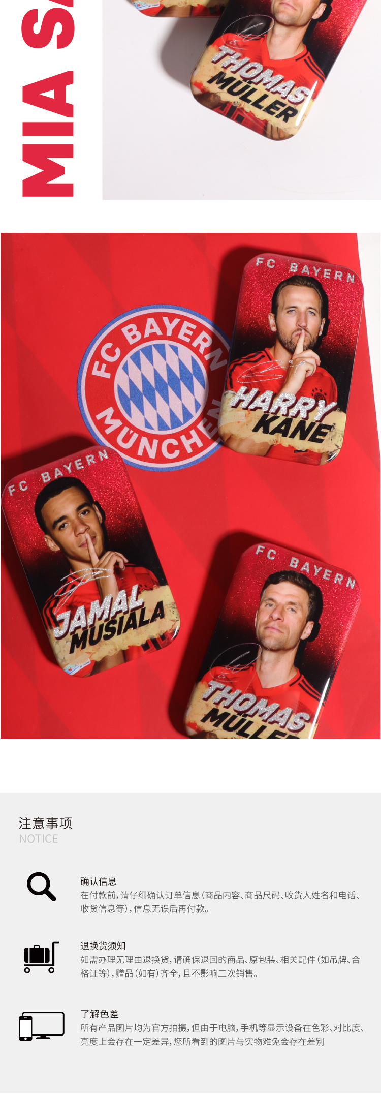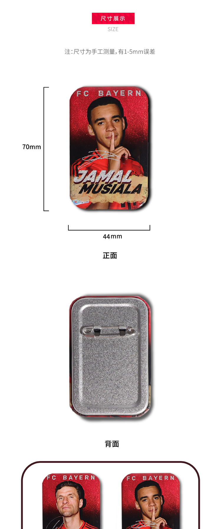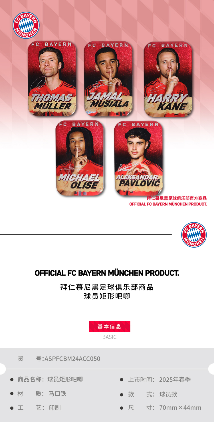 【官方正版】拜仁慕尼黑足球俱乐部 | 方形球员徽章足球迷吧唧