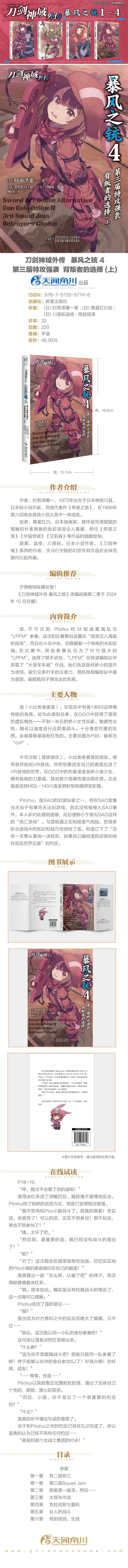 刀剑神域外传:暴风之铳.4 第三届特攻强袭:背叛者的选择(上)随书赠封面同款纸卡一张