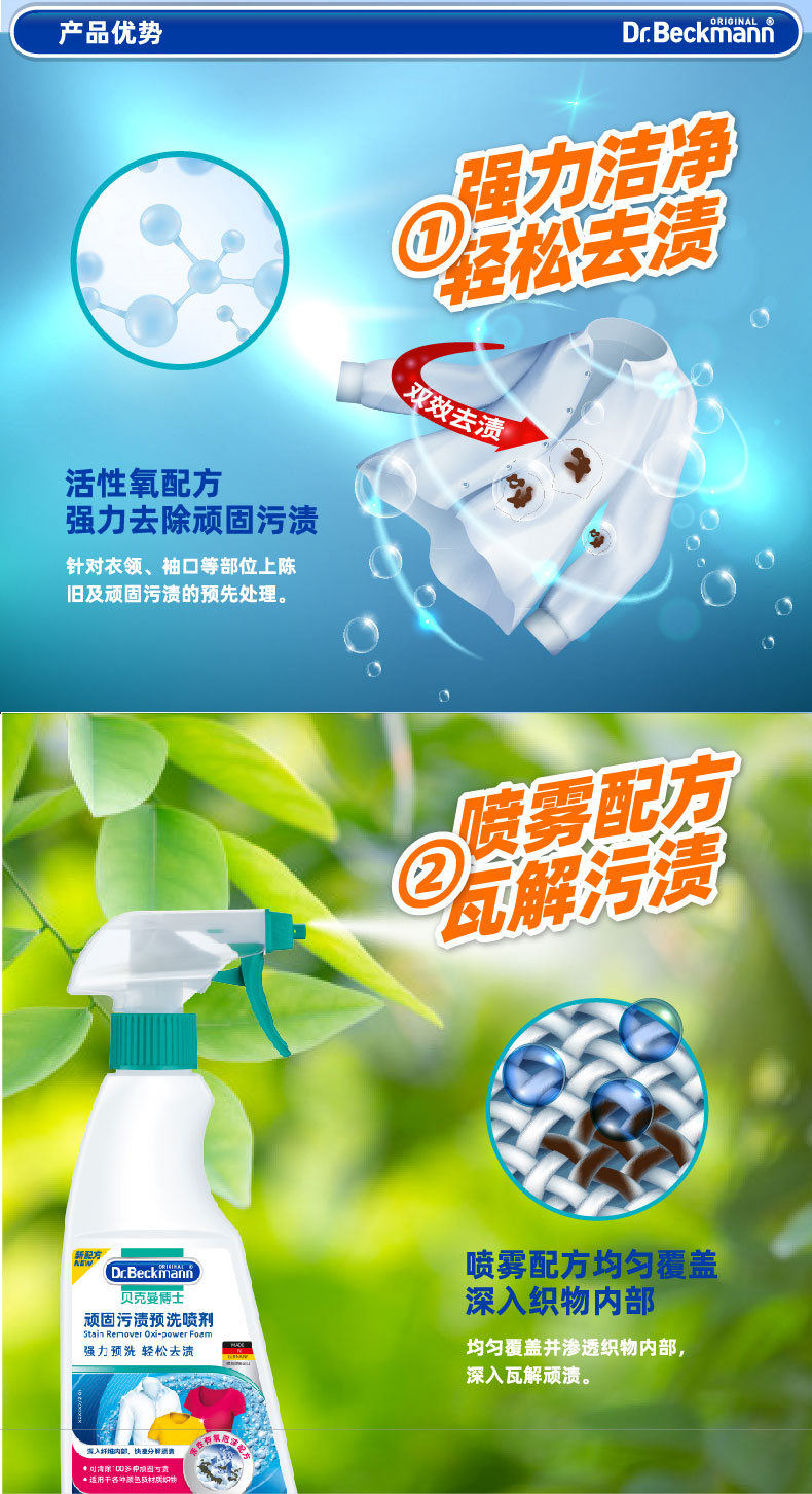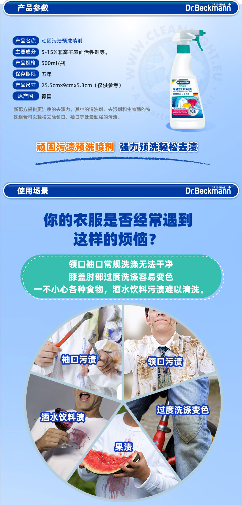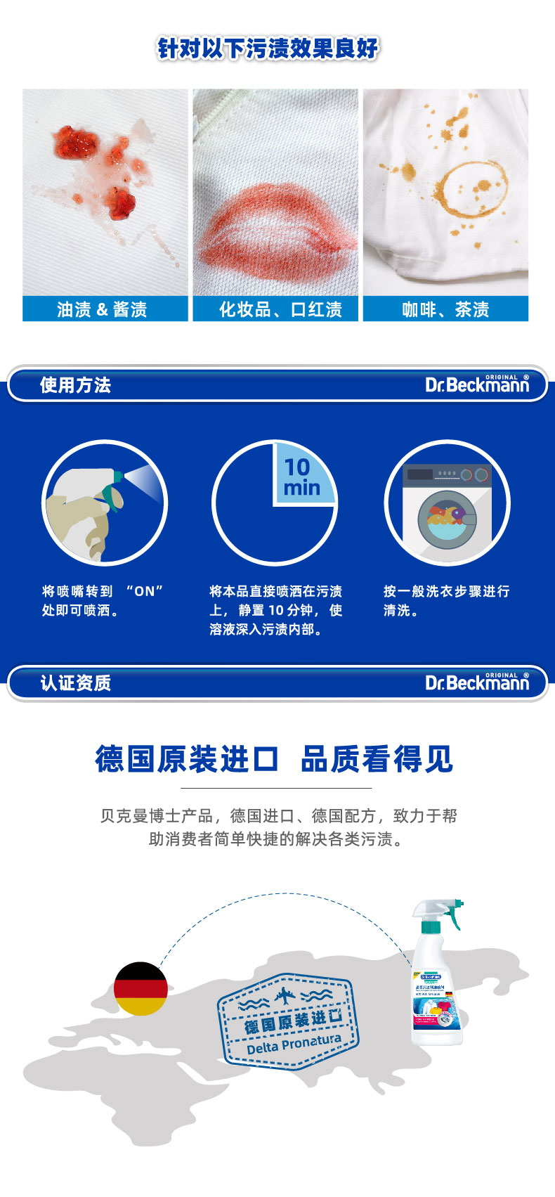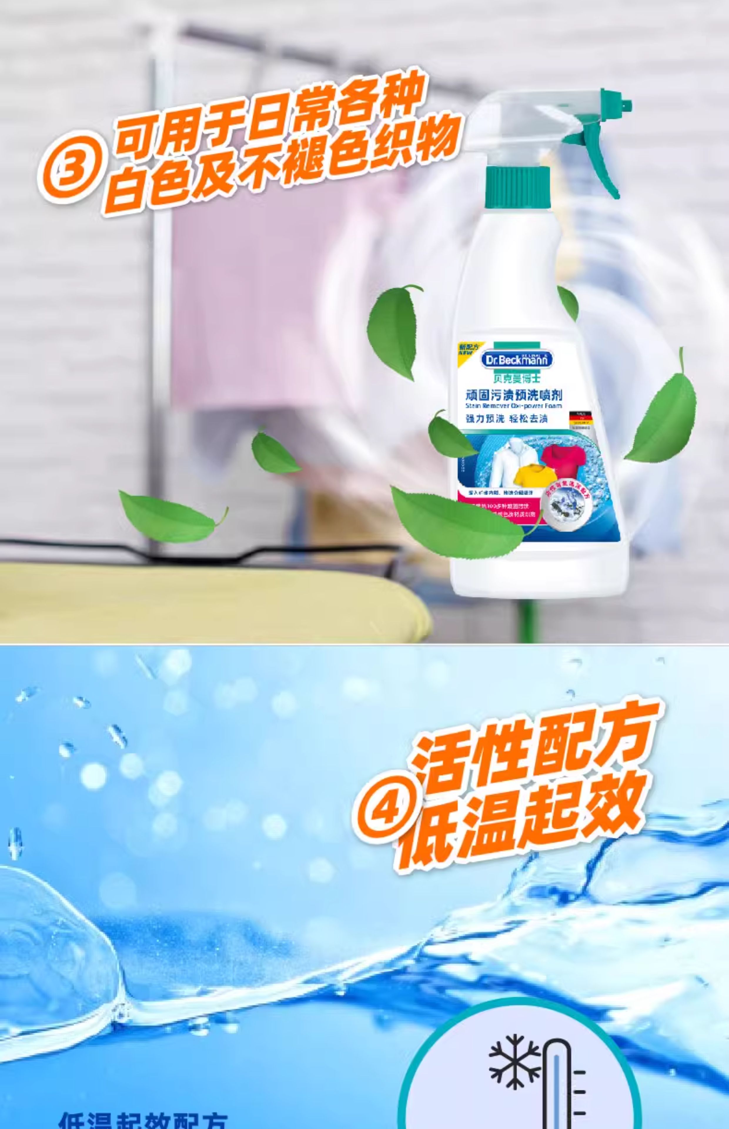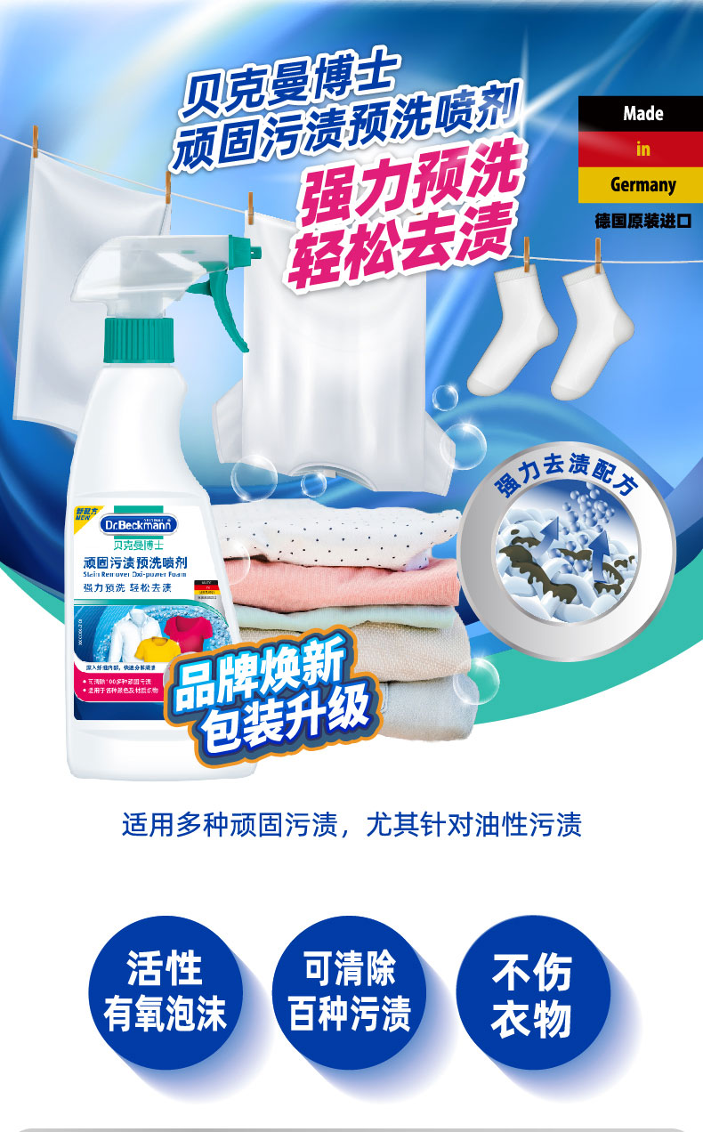 贝克曼博士顽固污渍预洗喷剂500ml/111660 活性有氧泡沫深入分解污渍